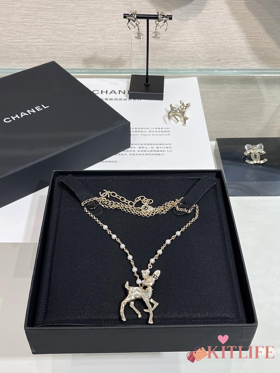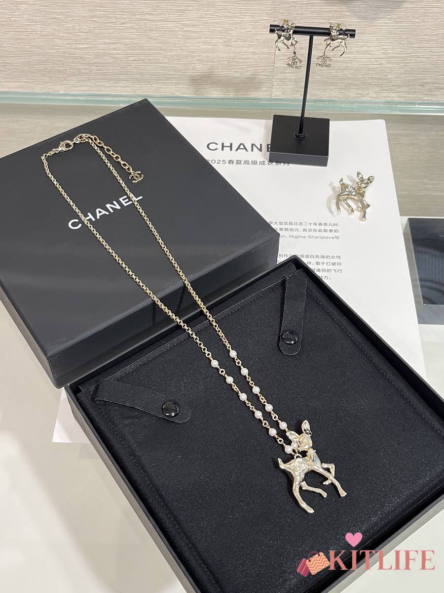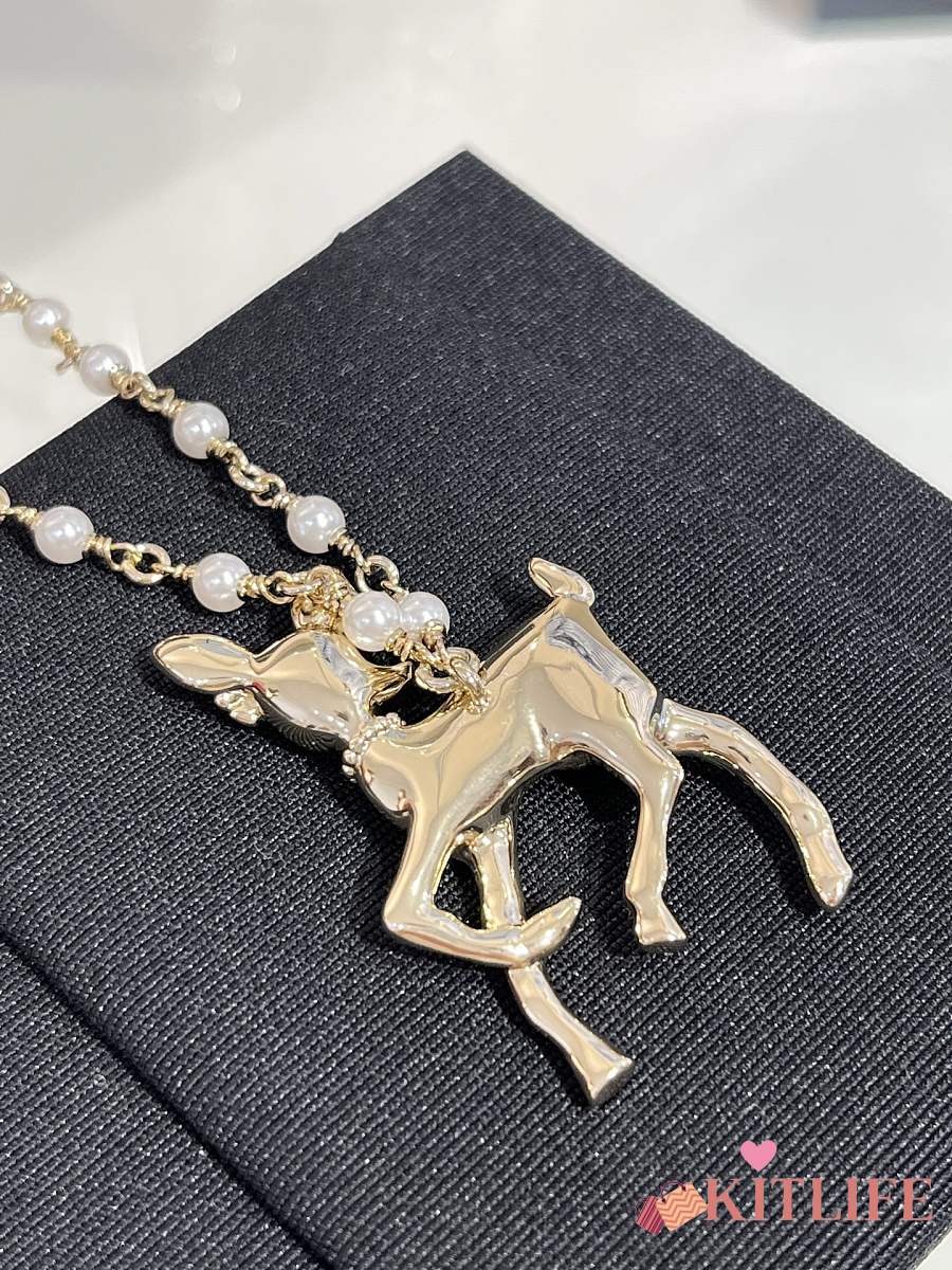Kitlife Chanel 25P Gold Deer Full Diamond Double C Pearl Necklace