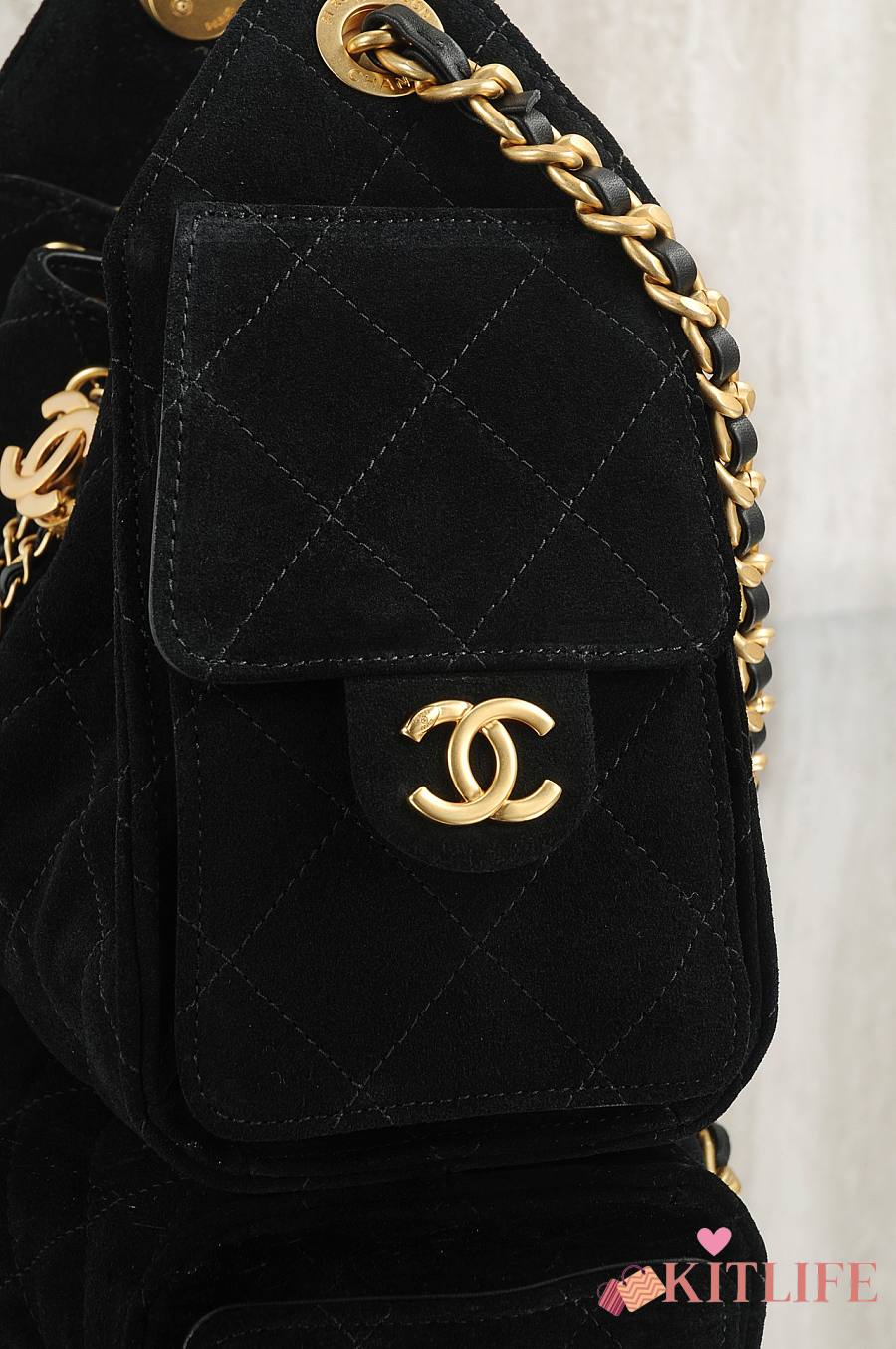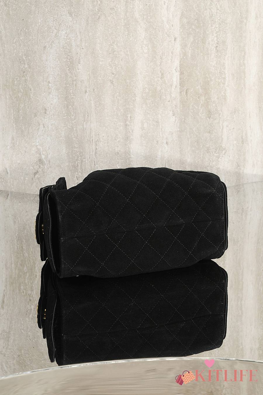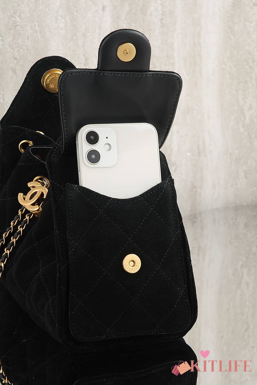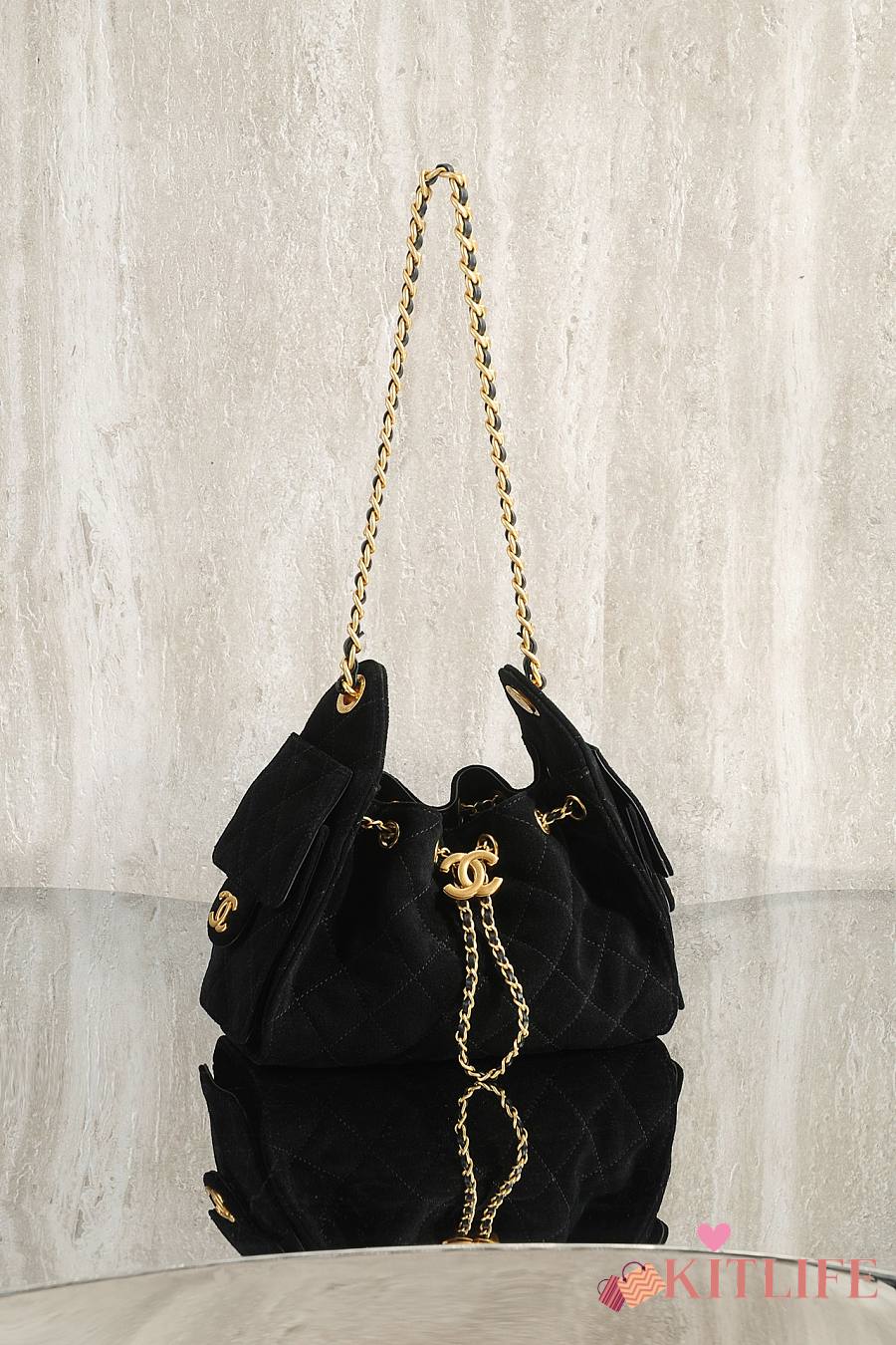 Kitlife Chanel 25s Drawstring Bucket Hobo Bag Black Suede Leather 20x22x12.5cm