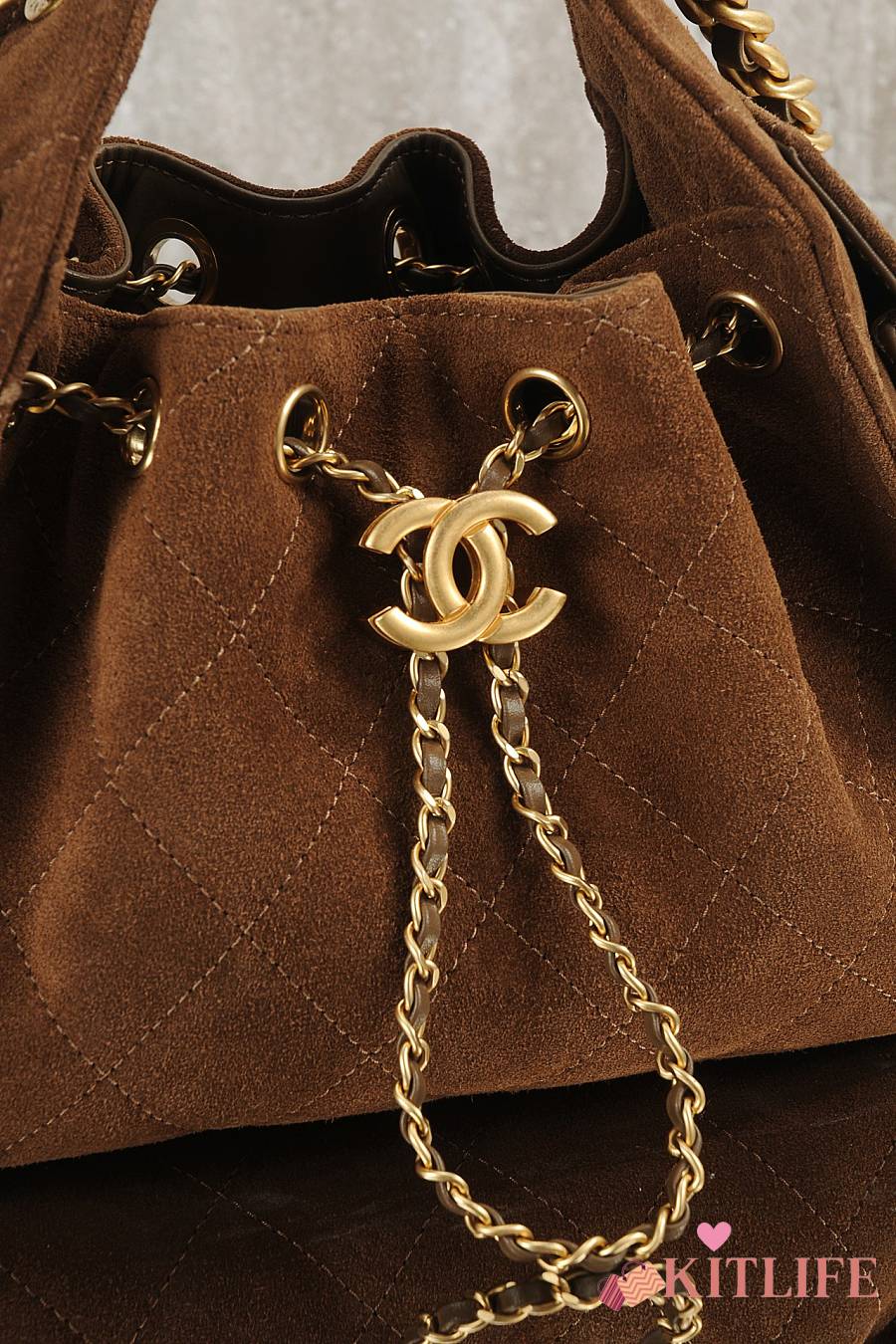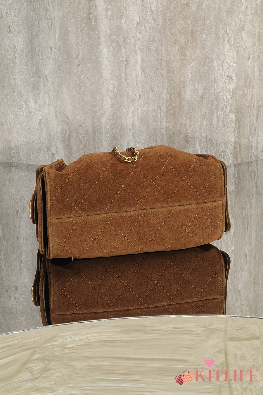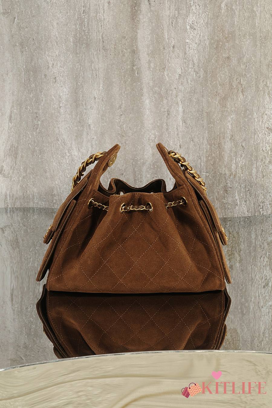 Kitlife Chanel 25s Drawstring Bucket Hobo Bag Brown Suede Leather 20x22x12.5cm