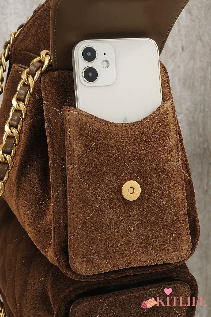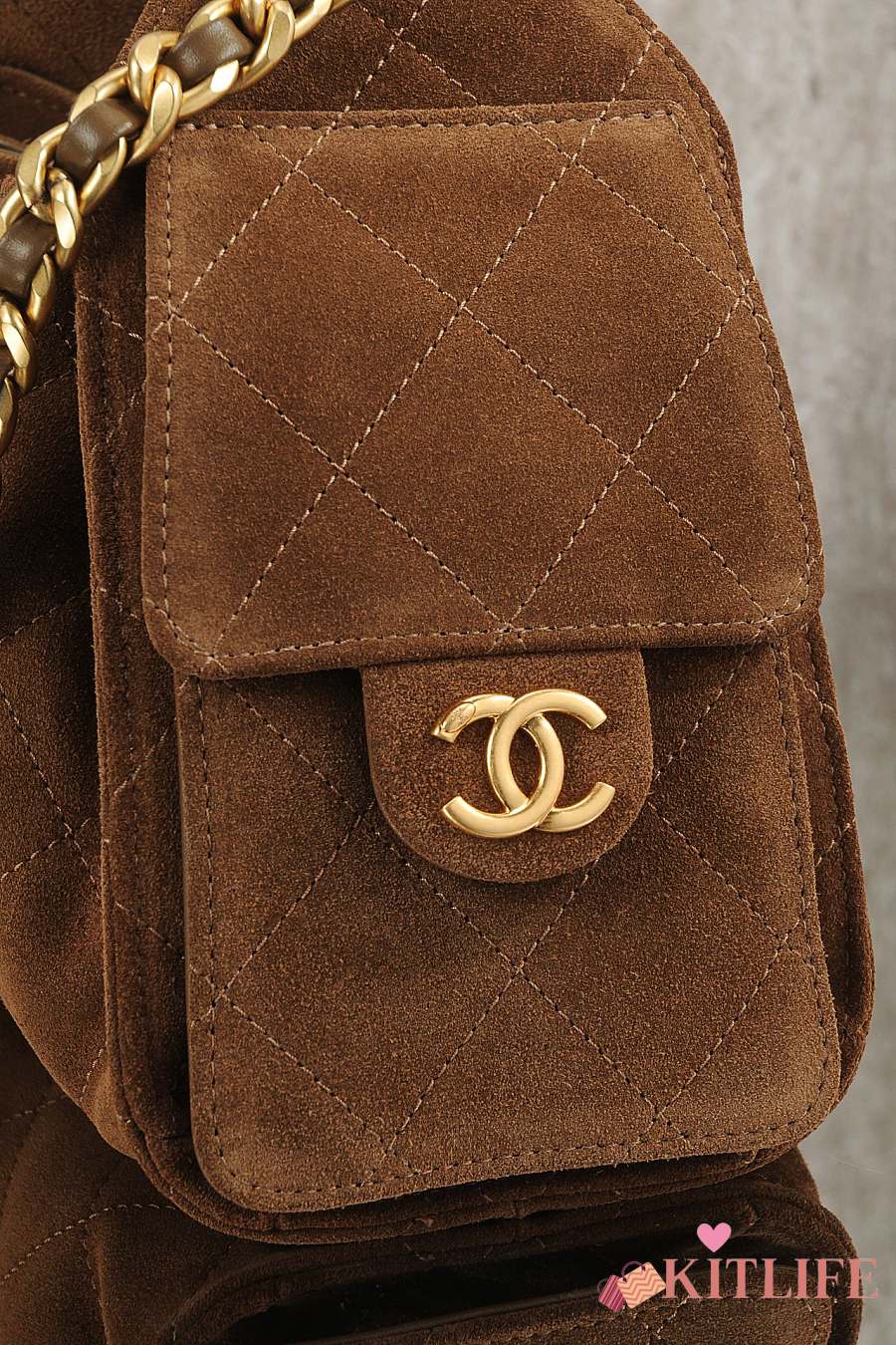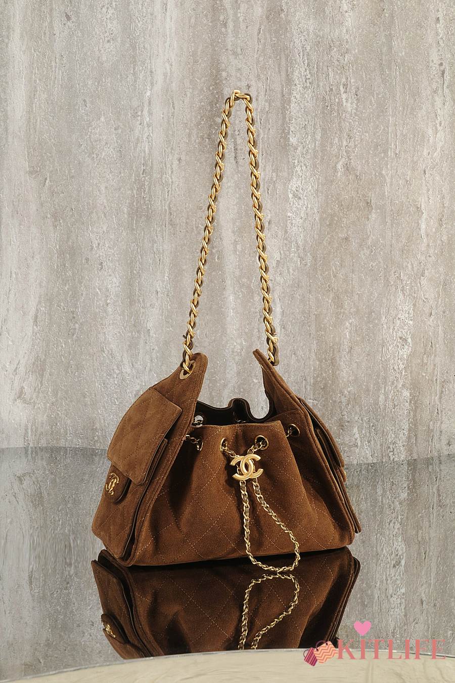 Kitlife Chanel 25s Drawstring Bucket Hobo Bag Brown Suede Leather 20x22x12.5cm