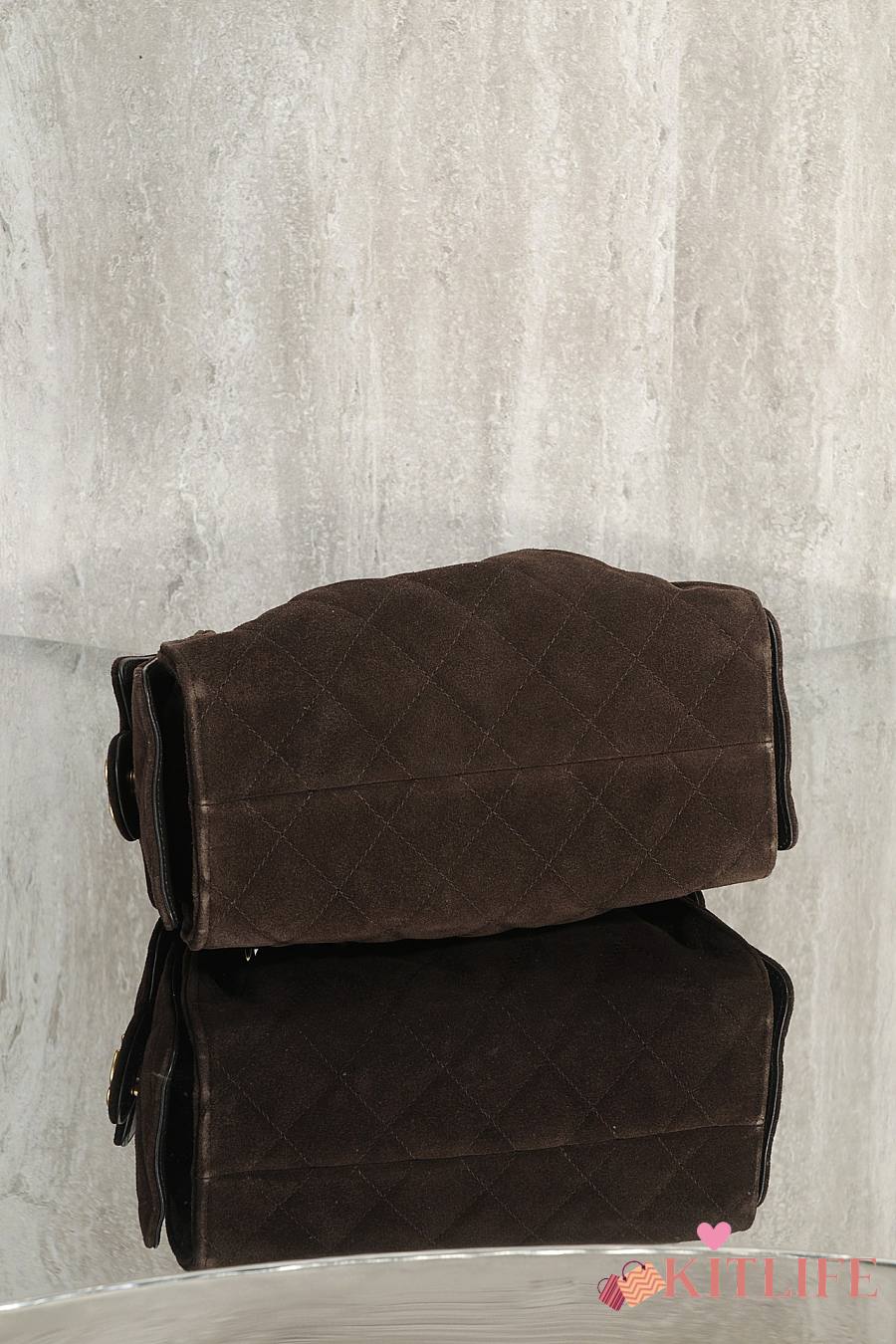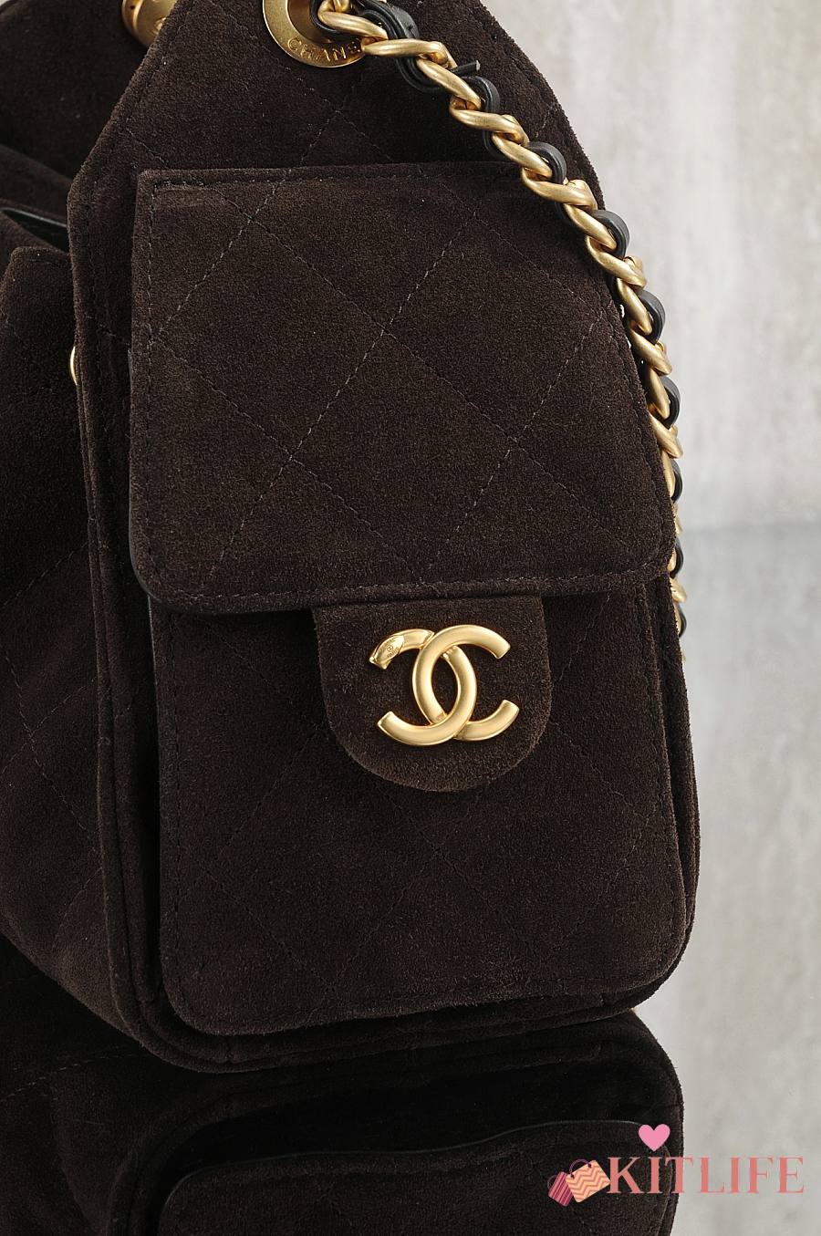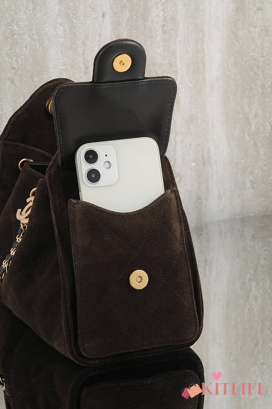 Kitlife Chanel 25s Drawstring Bucket Hobo Bag Dark Brown Suede Leather 20x22x12.5cm