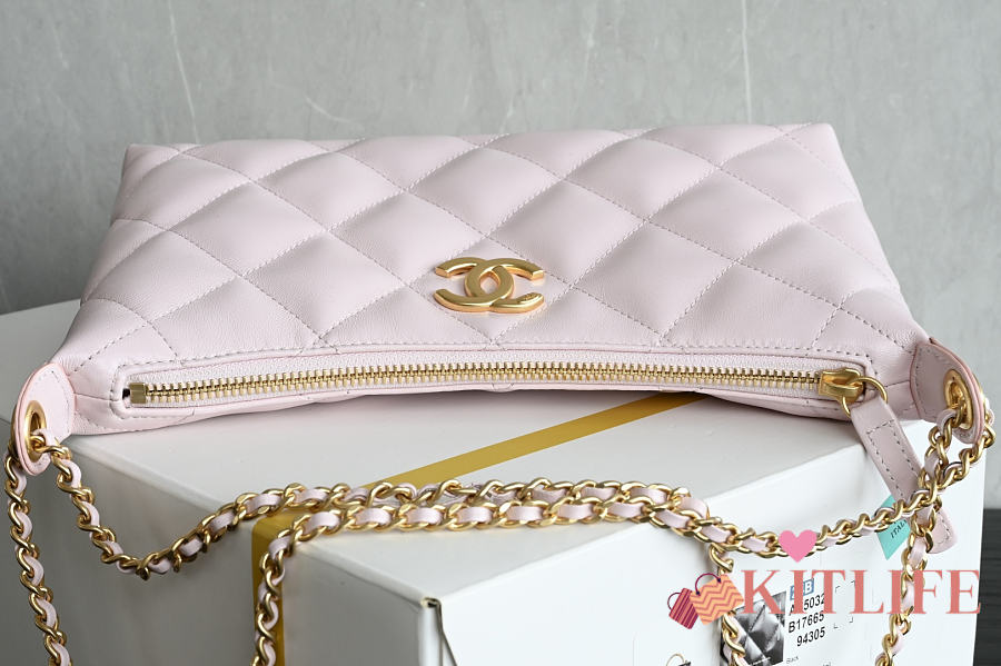 Kitlife Chanel 25s Hobo Bag Pink Lambskin AS5528 17x26x8.5cm