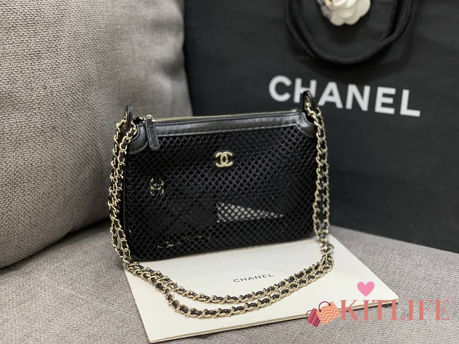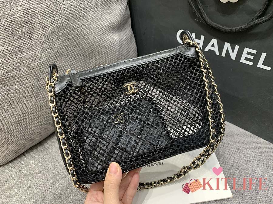 Kitlife Chanel 25ss Hollowed-out mesh Crescent Moon Bag Black 15x21.5cm