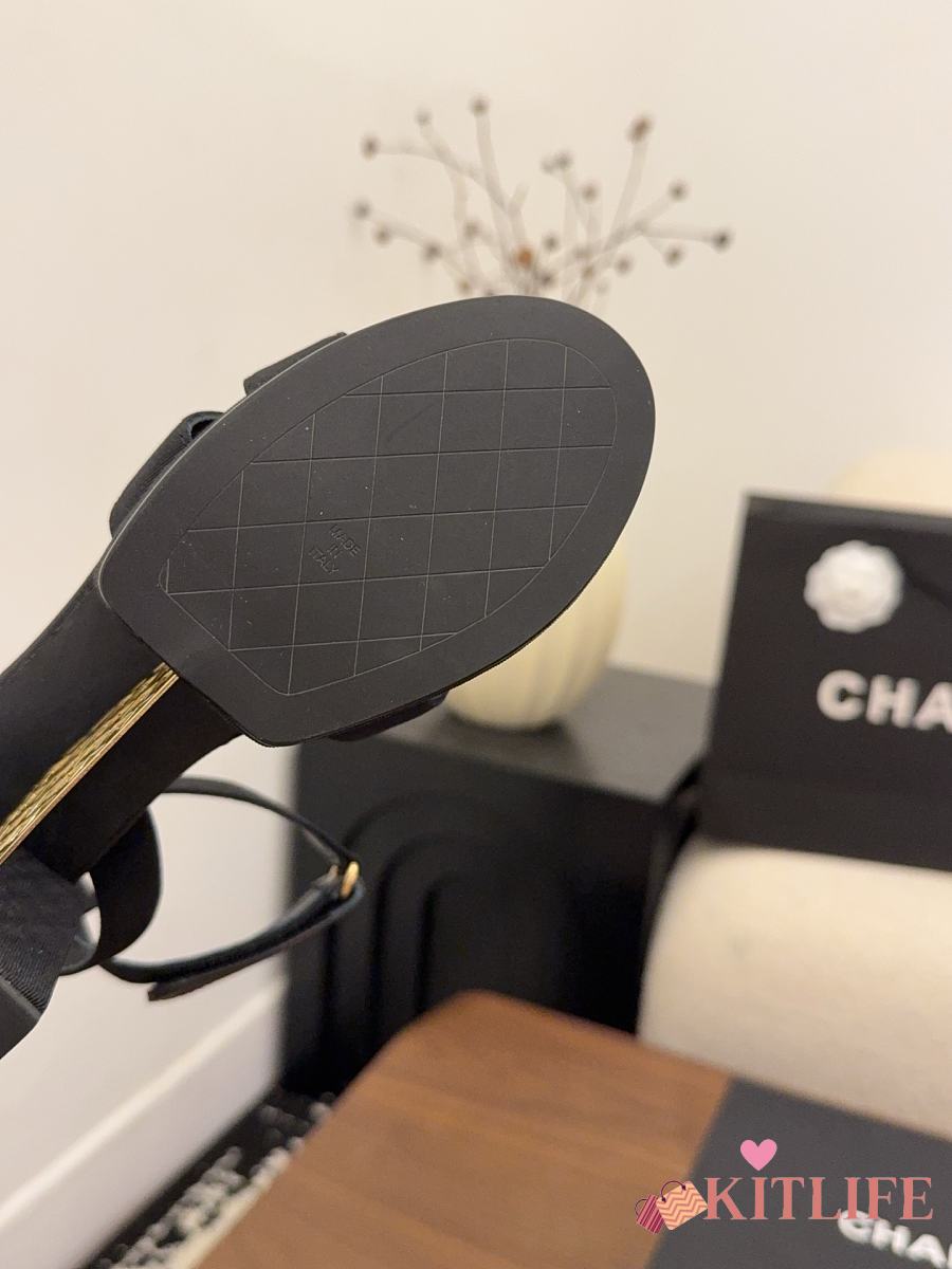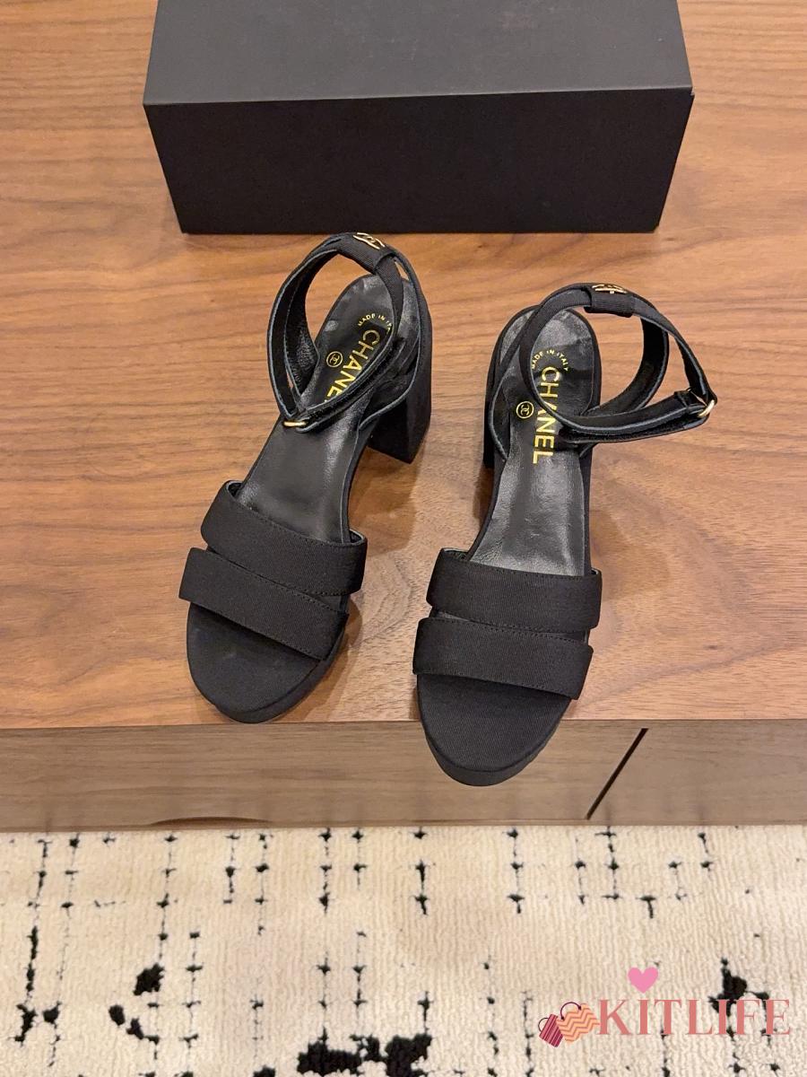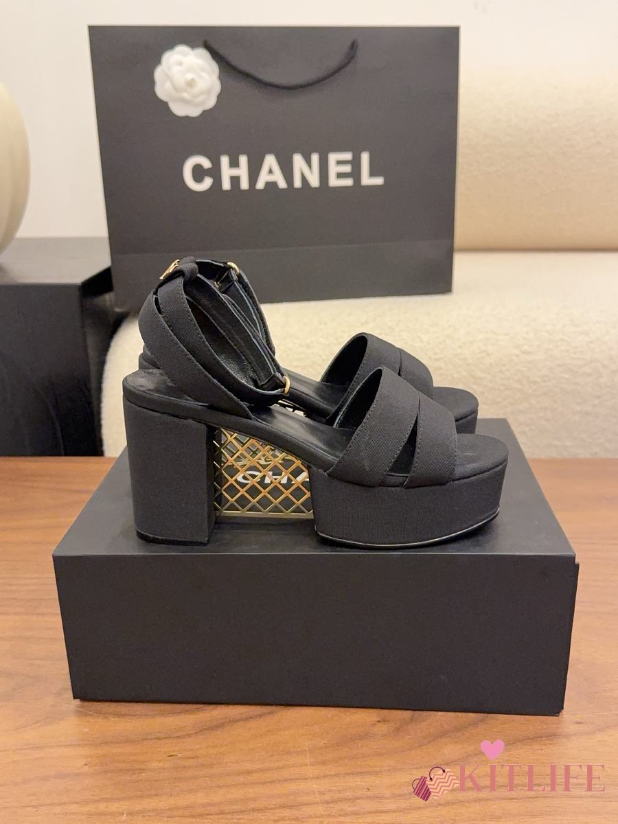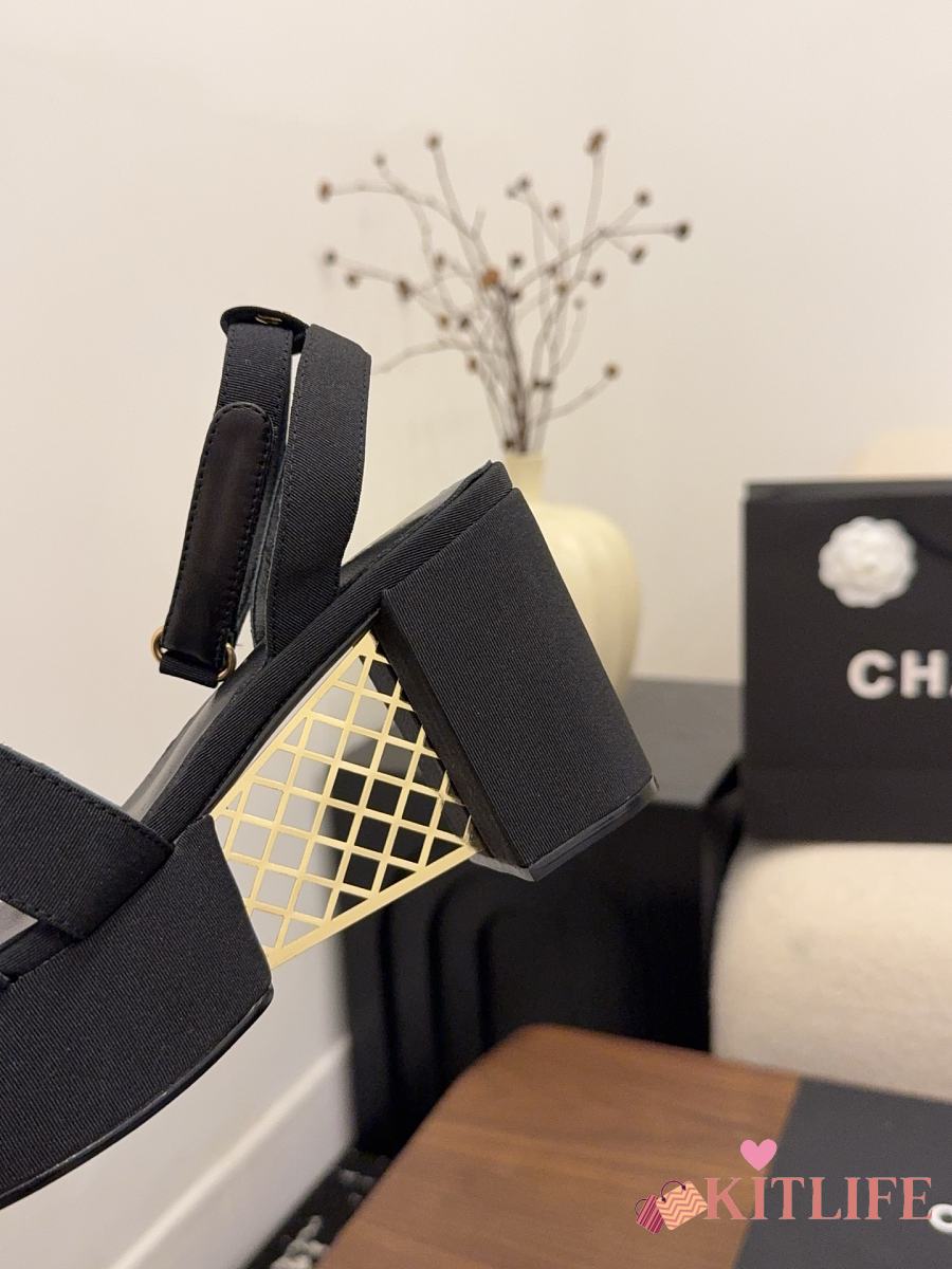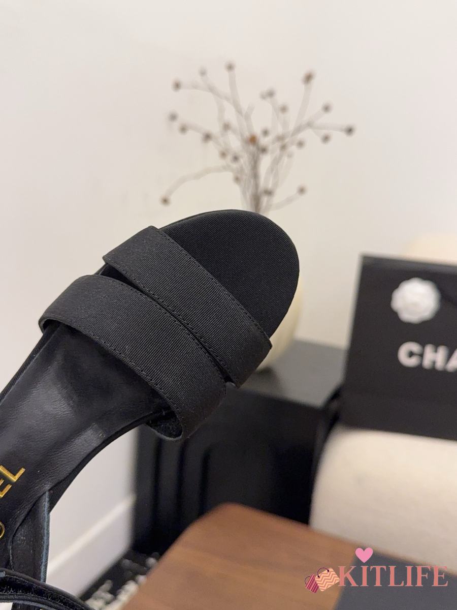 Kitlife Chanel 26 Classic Double C High-Heeled Platform Sandals Black Denim
