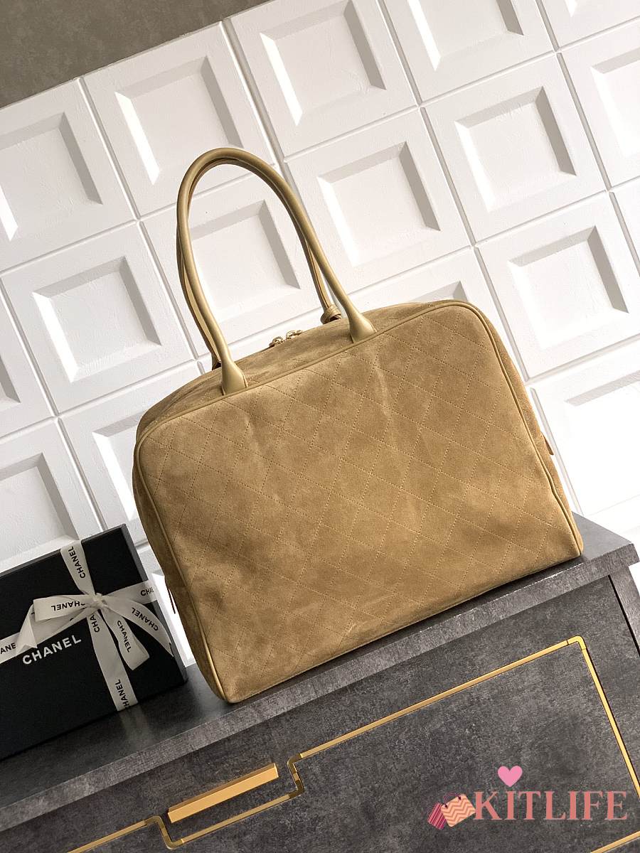 Kitlife Chanel 26C Boston Bag Brown Suede 41x31x23cm