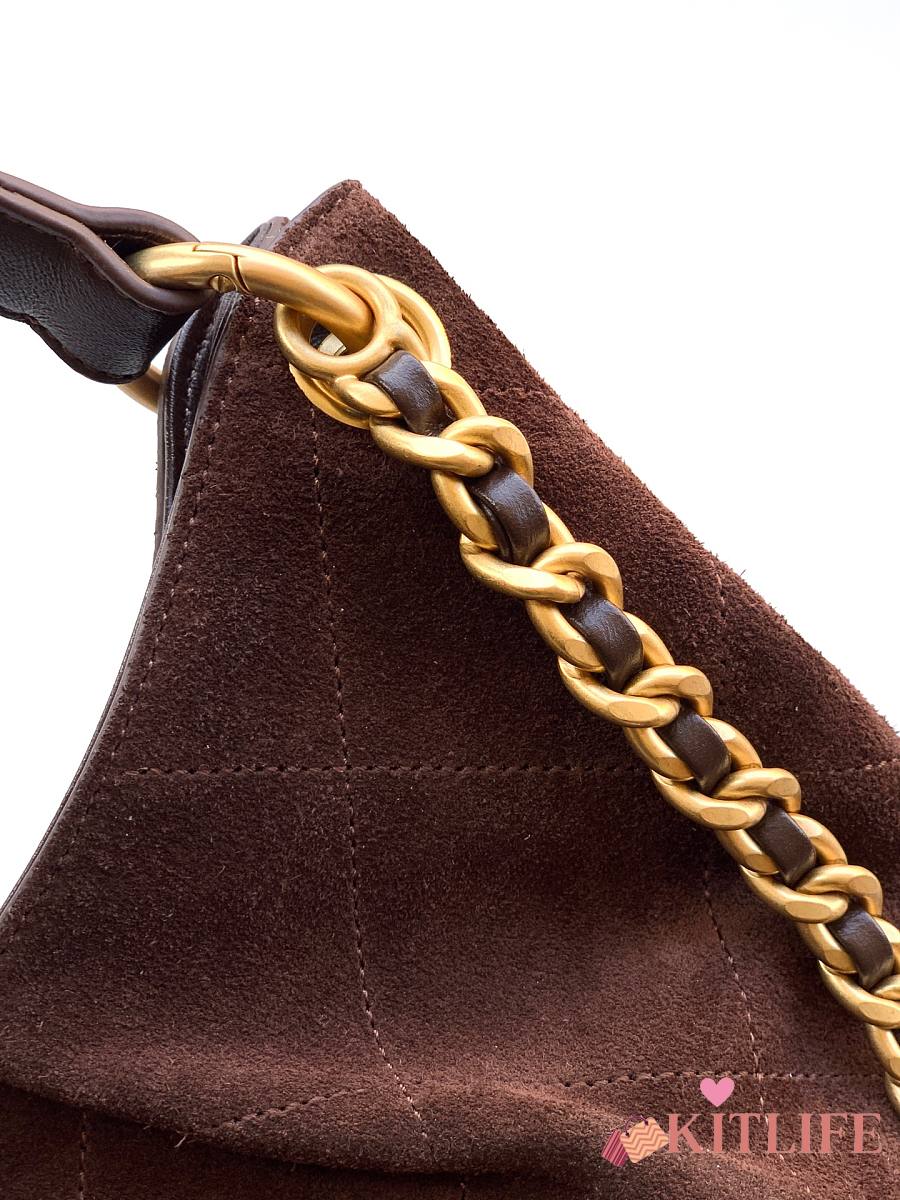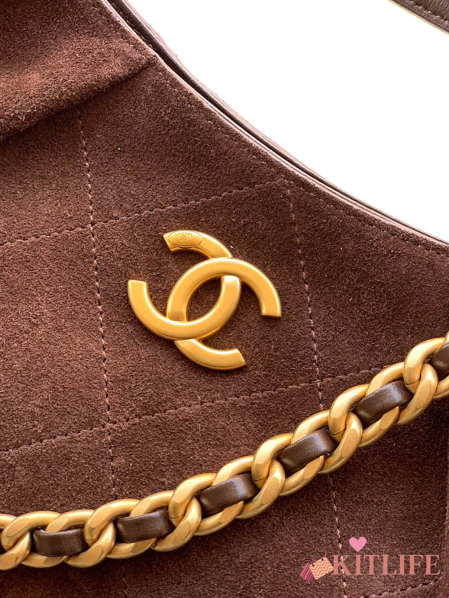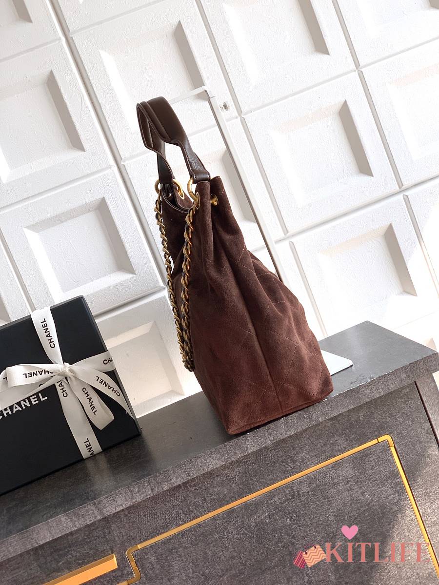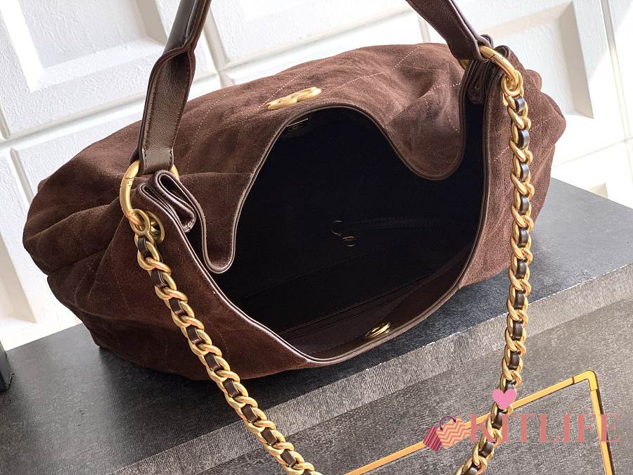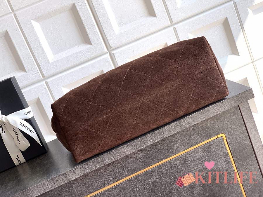 Kitlife Chanel 26C Hobo Bag Dark Brown Suede Calfskin 29x35x13cm