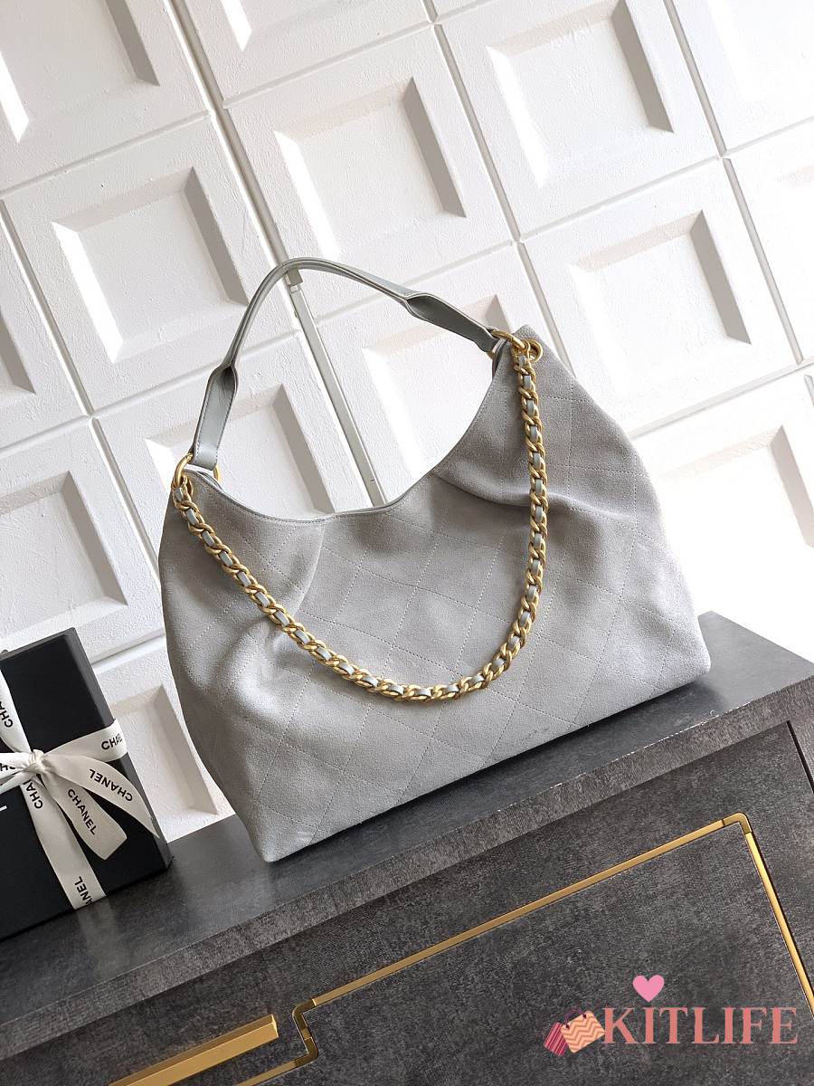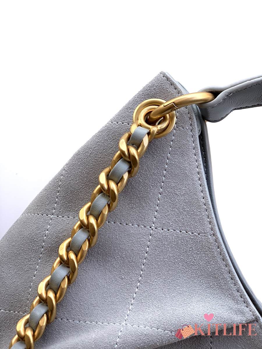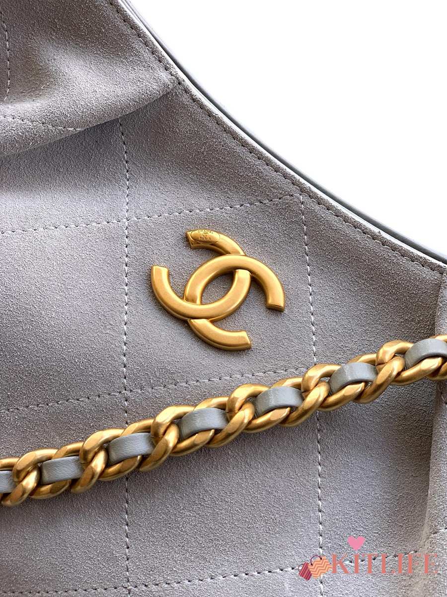 Kitlife Chanel 26C Hobo Bag Grey Suede Calfskin 29x35x13cm