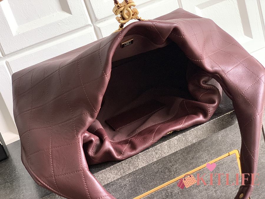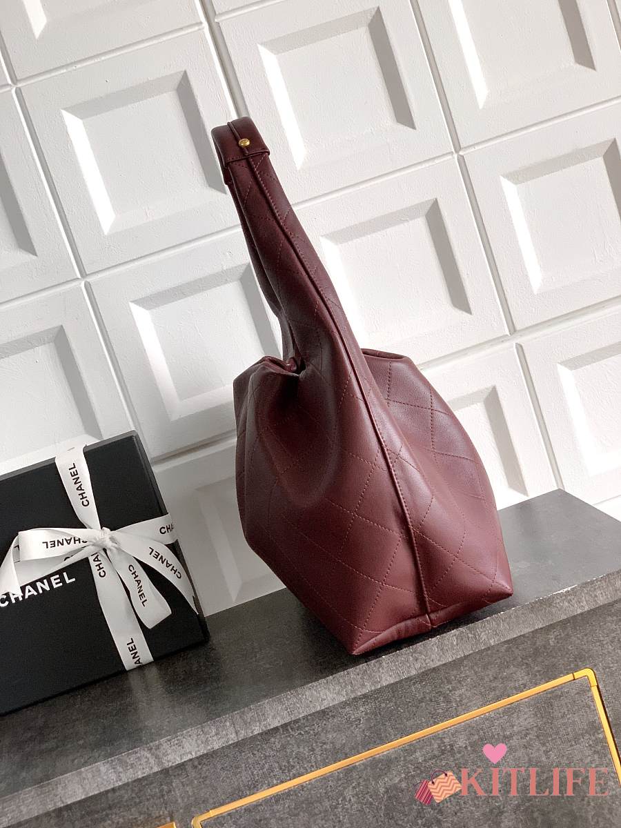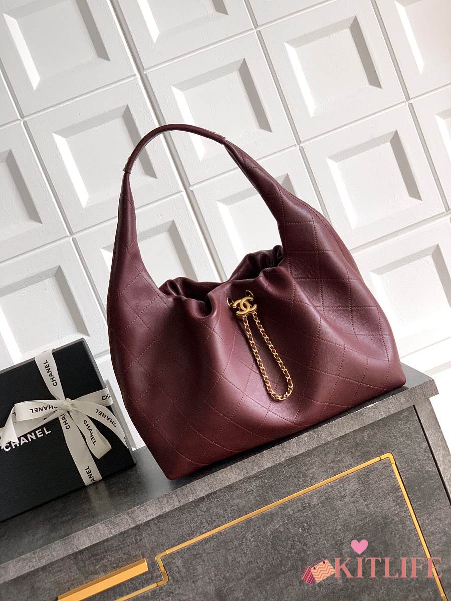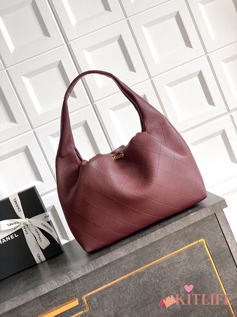 Kitlife Chanel 26C Hobo Bag in Burgundy Leather 35x12x45cm