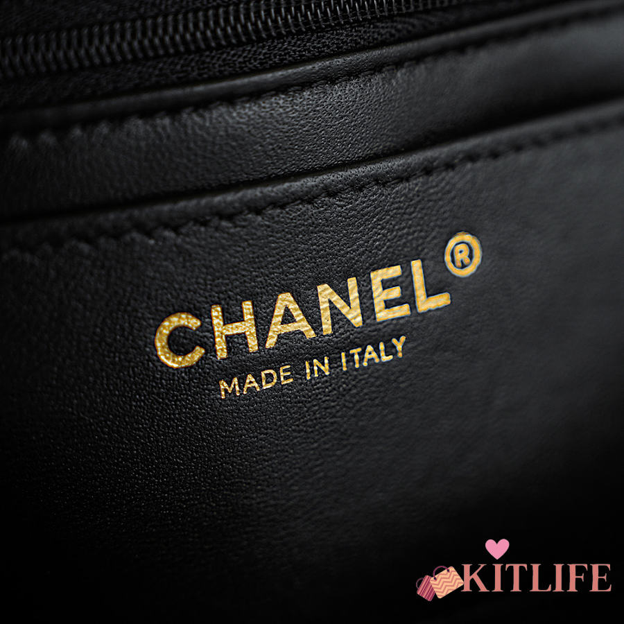 Kitlife Chanel Pouch Lambskin & Gold-Tone Metal Black - 16 × 16 × 5.5 cm