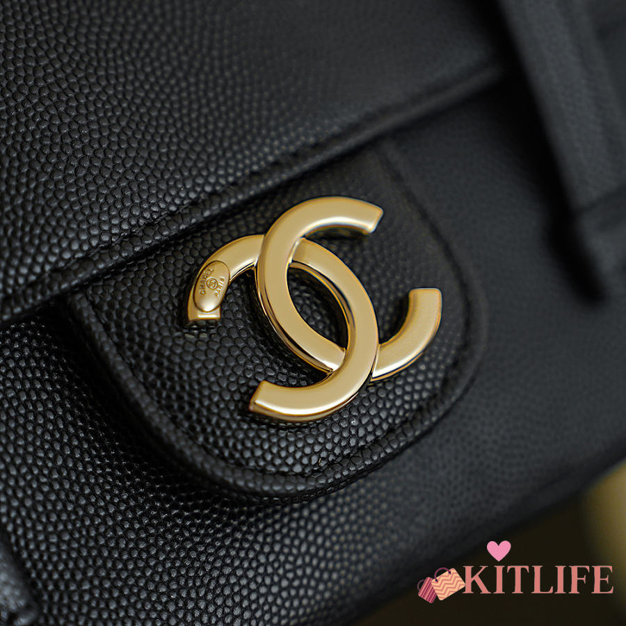 Kitlife Chanel Flap Bag Double Chain Black Grained Leather - 92233 - 33x11x23cm