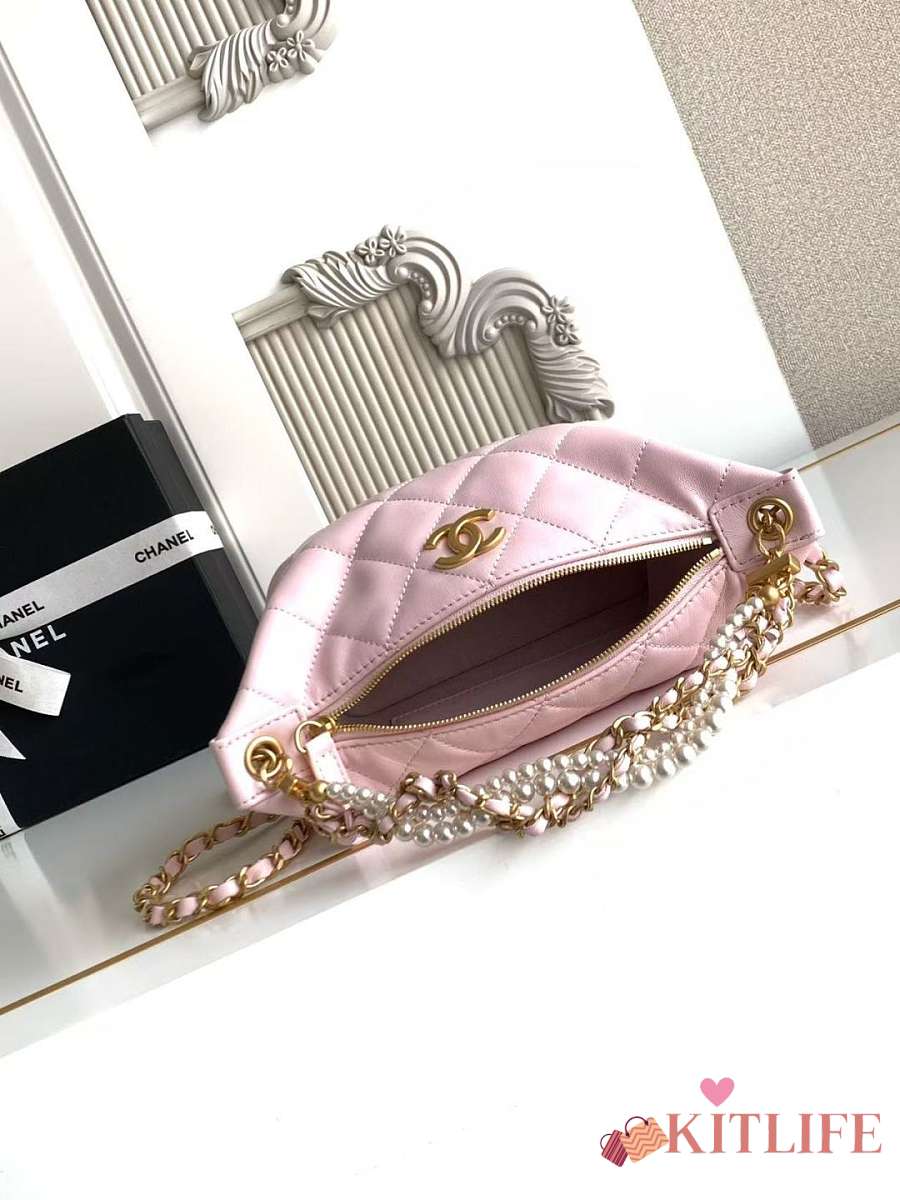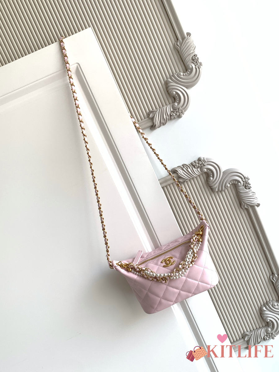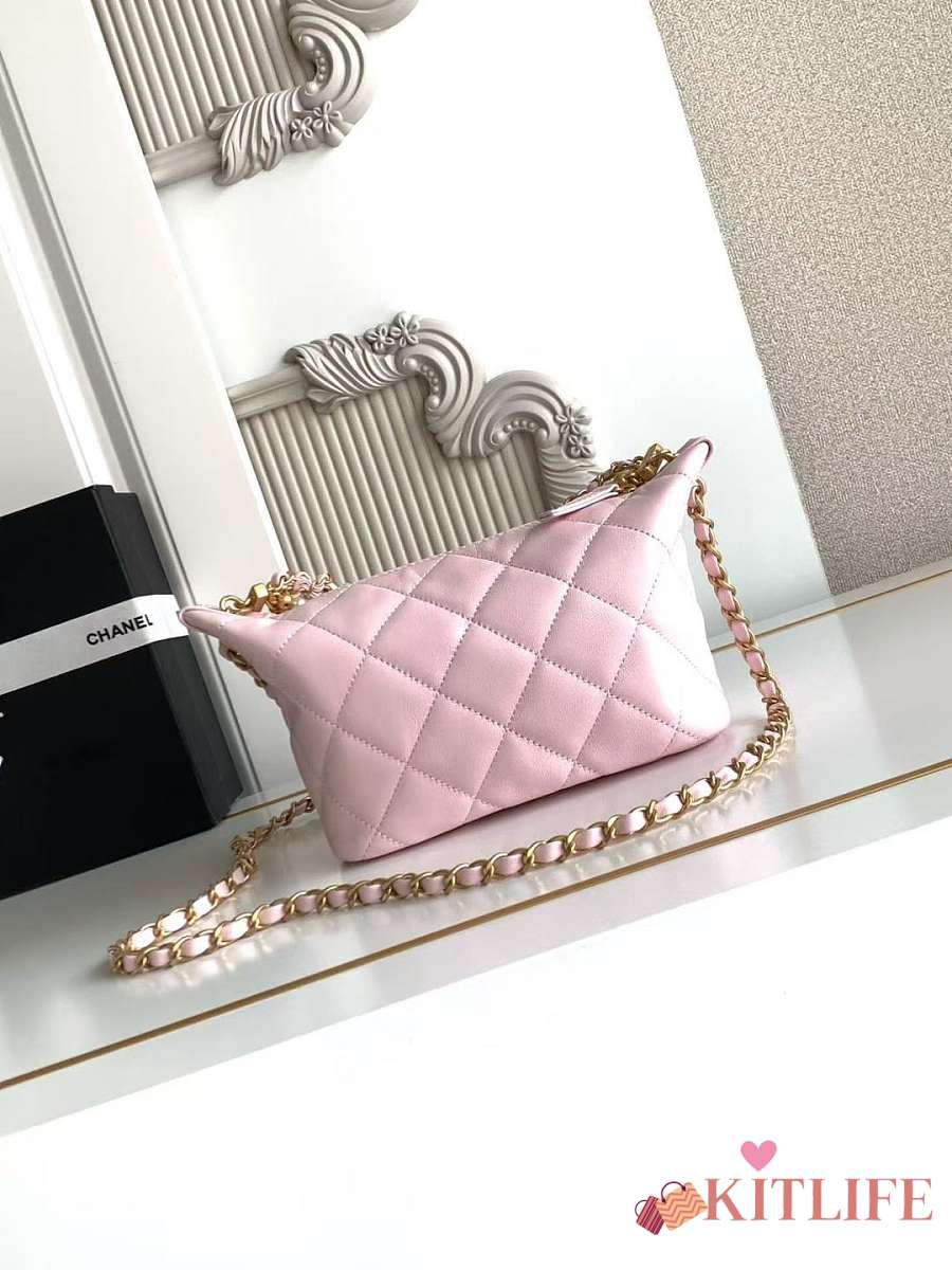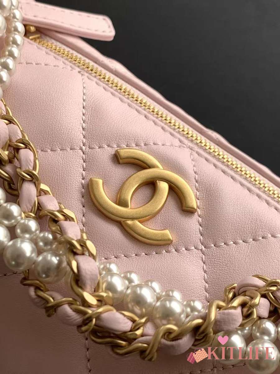 Kitlife Chanel 26C Pearl Chain Lunch Bag Pink AS5898 13x23.5x7.5cm