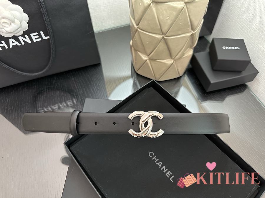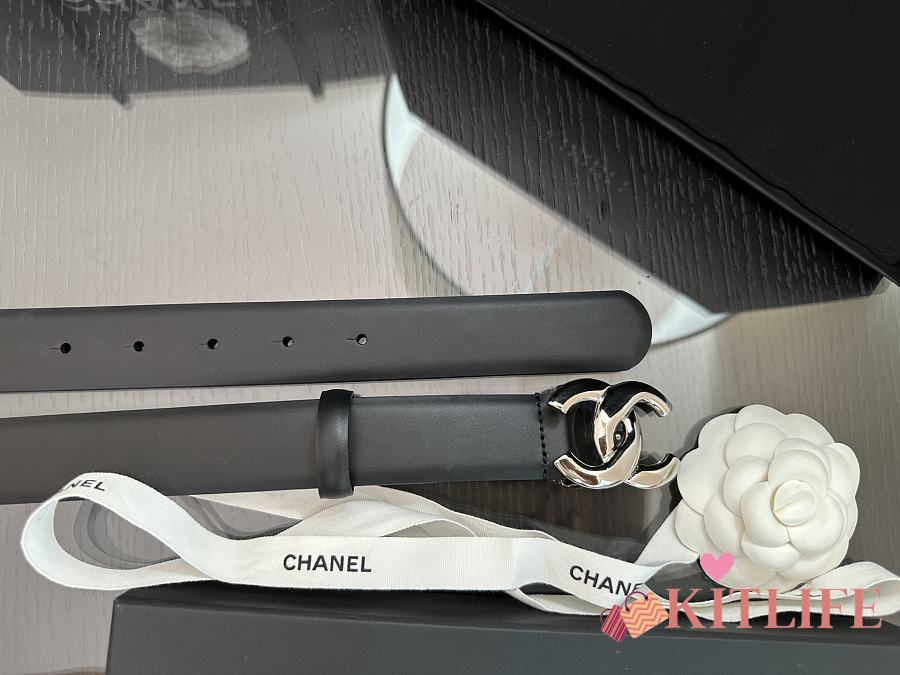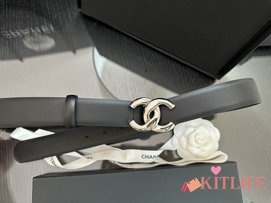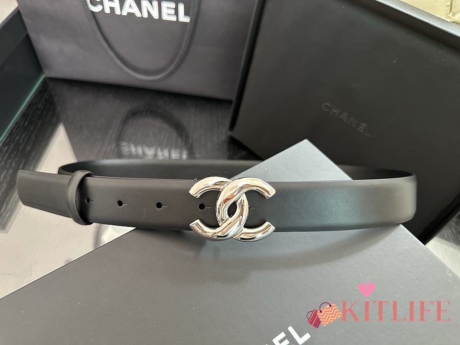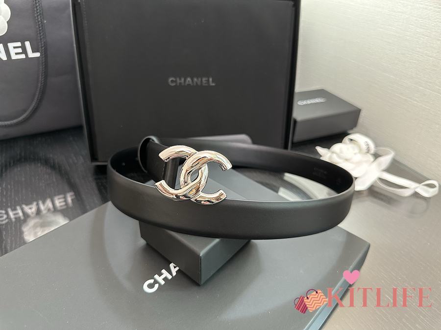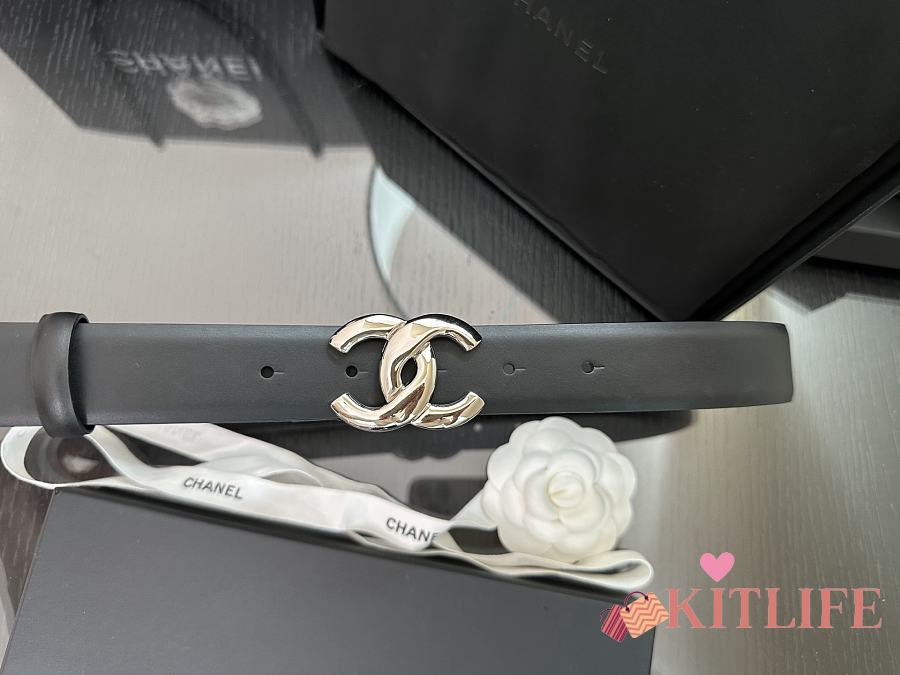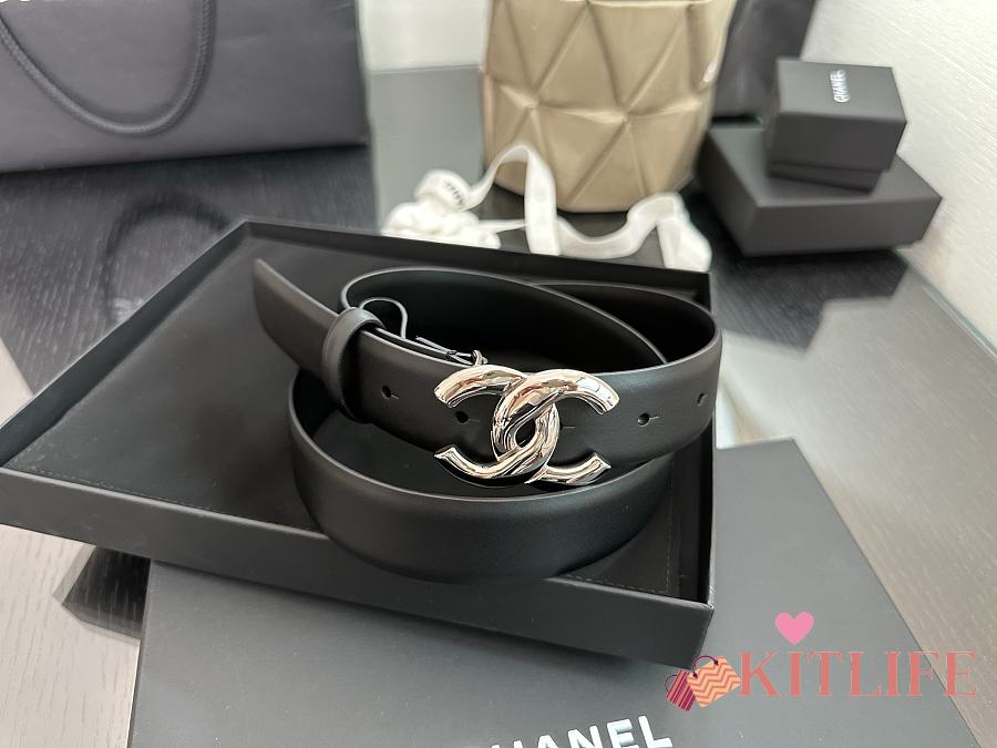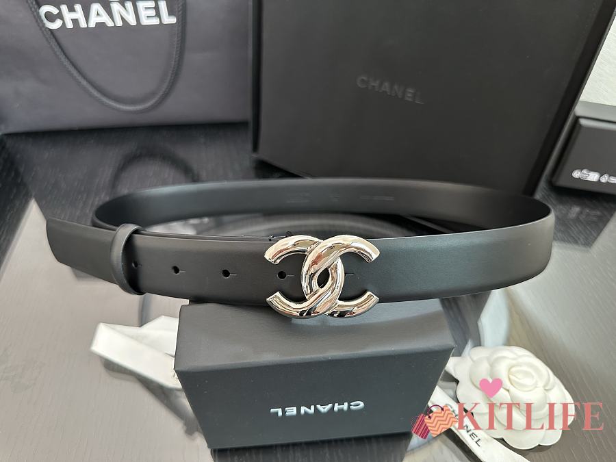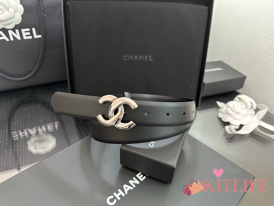 Kitlife Chanel Belt Double C 30mm In Black Calfskin With Shiny Silver Buckle