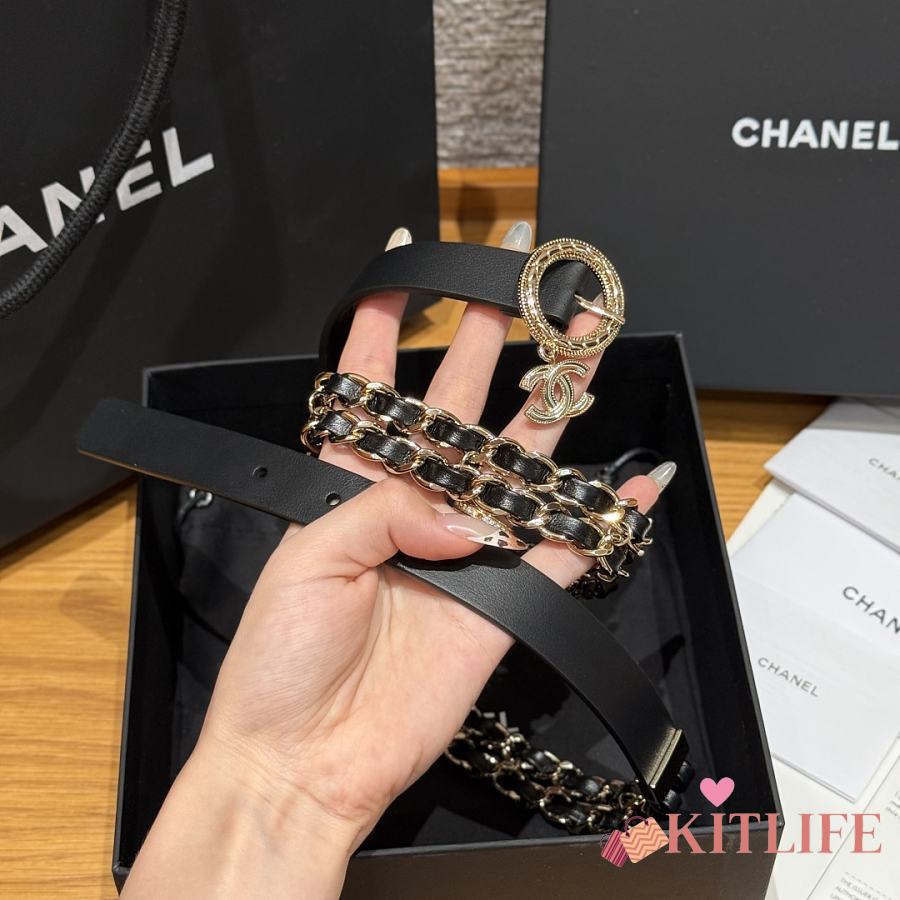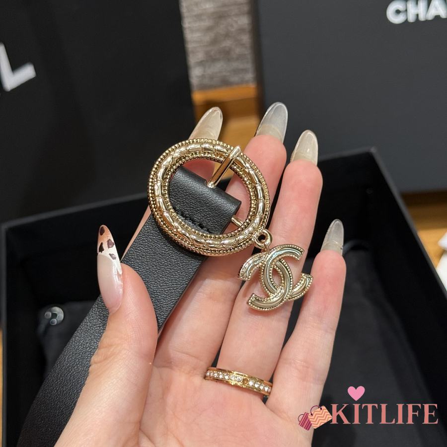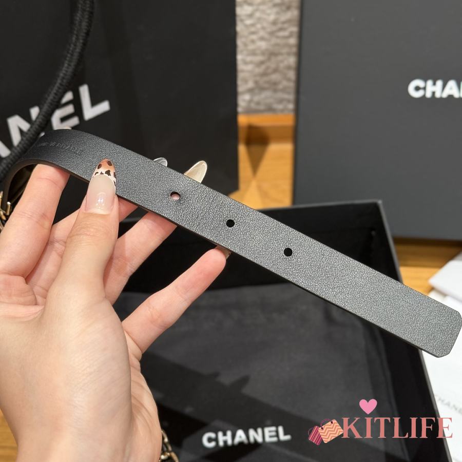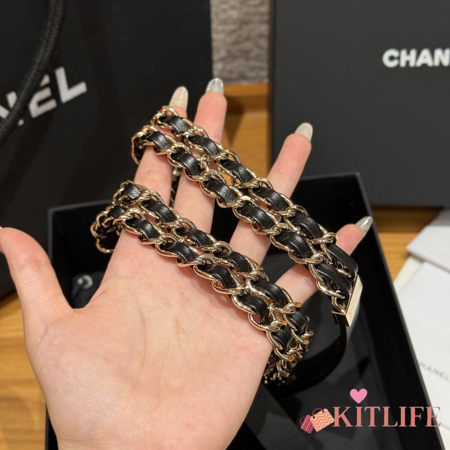 Kitlife Chanel Black Leather With Gold & Silver Metal And Rhinestones 20mm