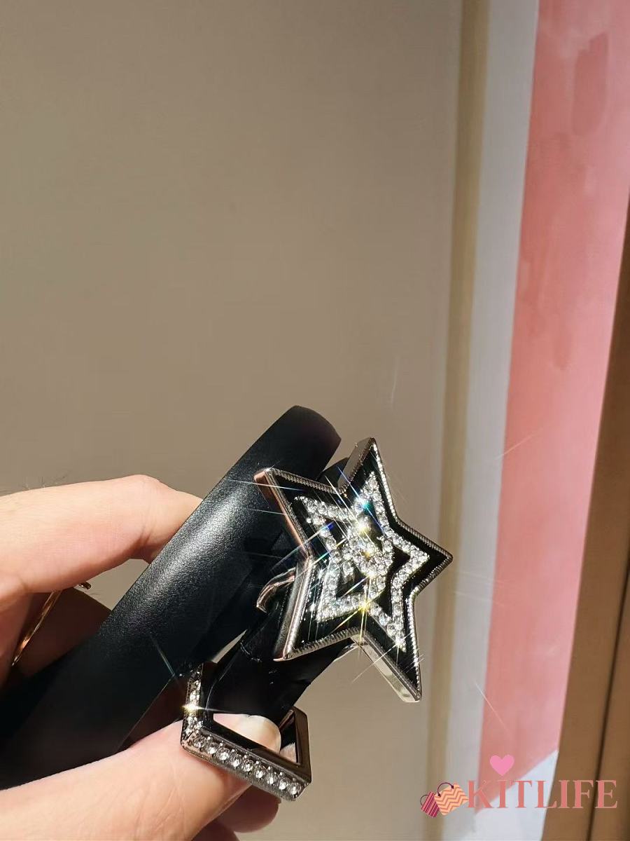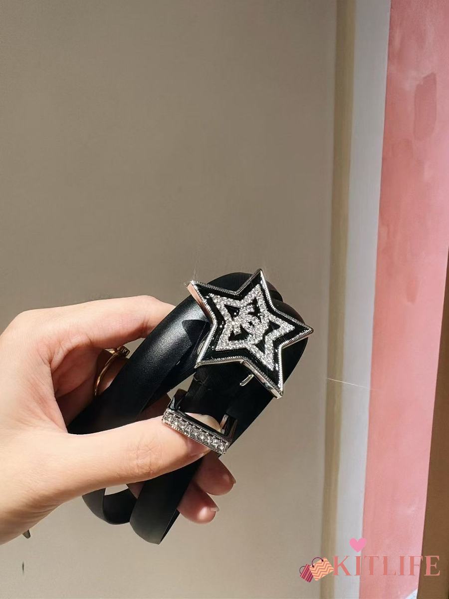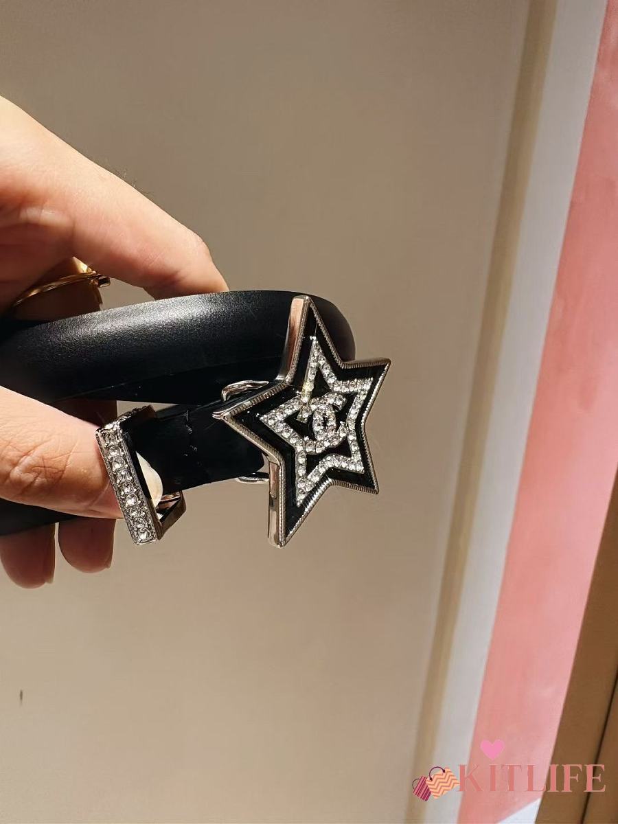 Kitlife Chanel Black Sheepskin Belt With Diamond Buckle 2cm
