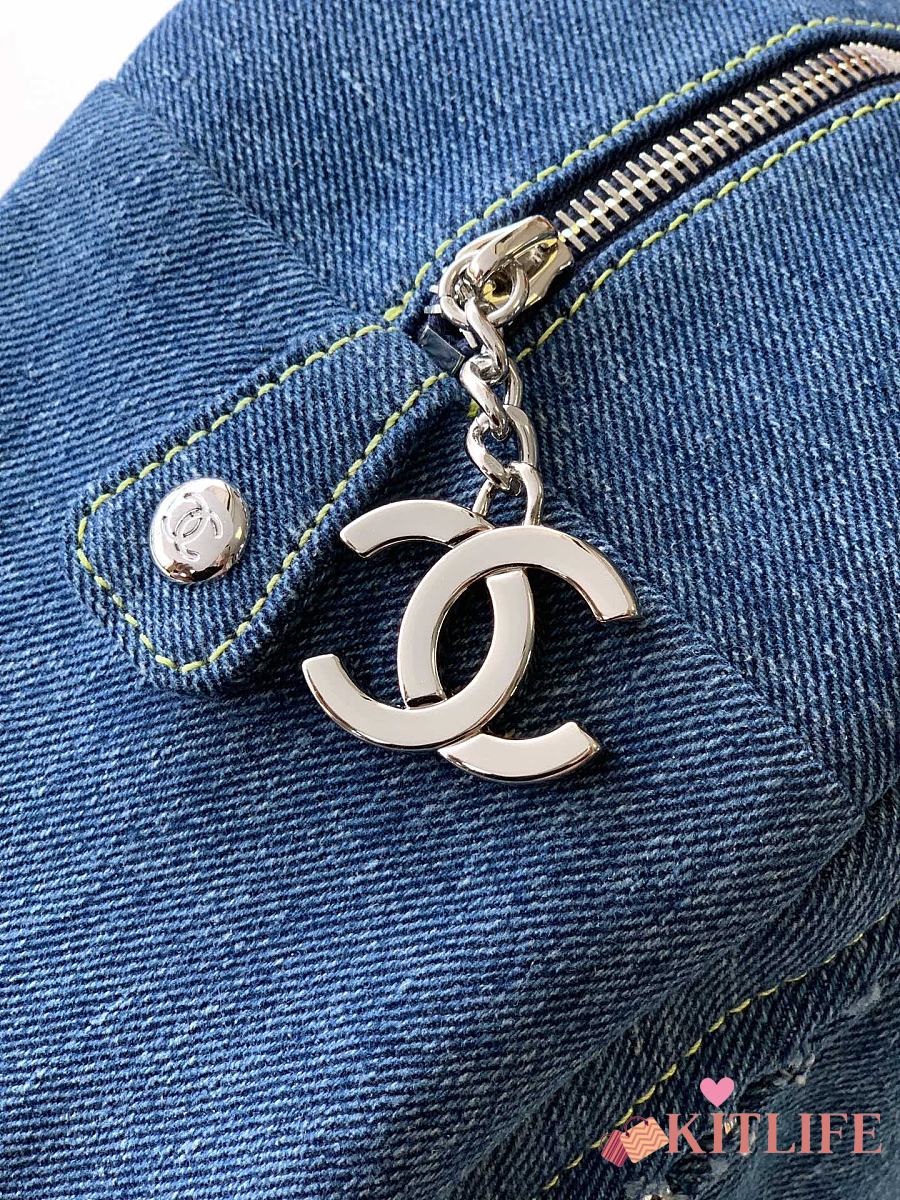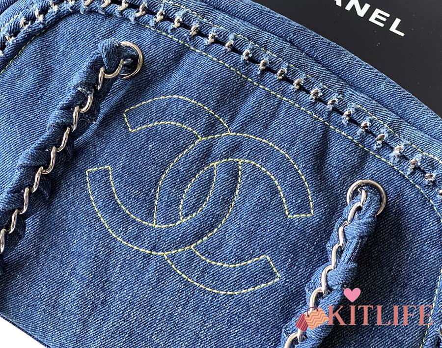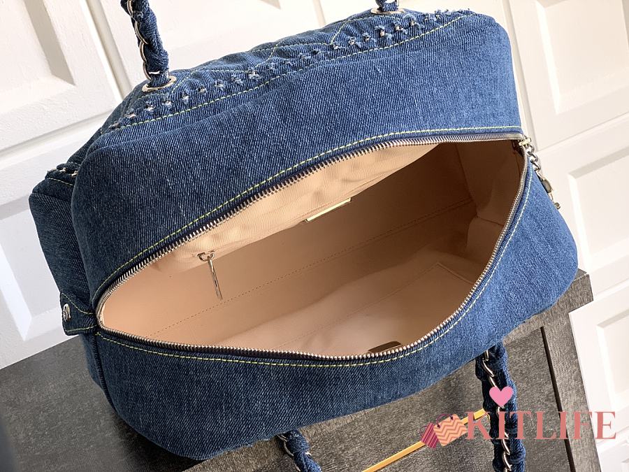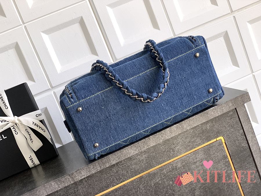 Kitlife Chanel Boston Bowling Bag Blue Denim 33x20.5x15cm