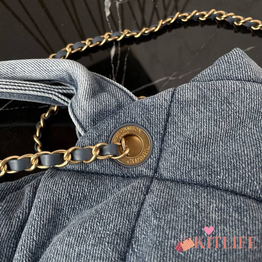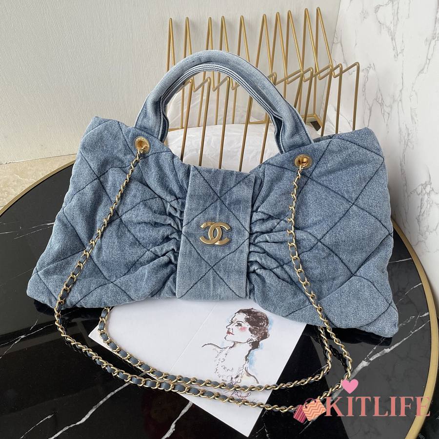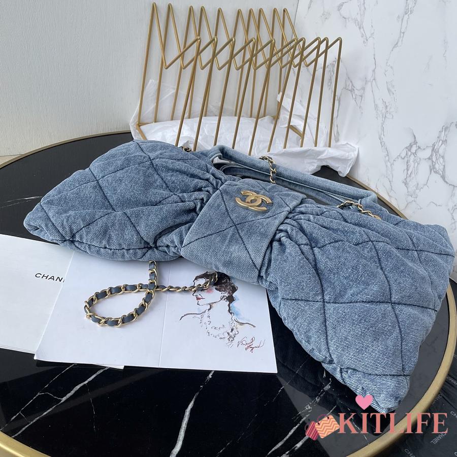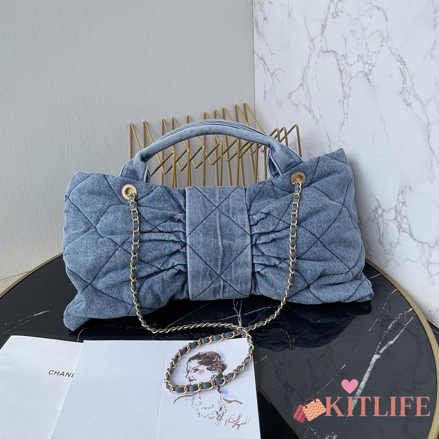 Kitlife Chanel Bow Bag Blue Denim & Gold Metallic AS5851 29x38x5cm