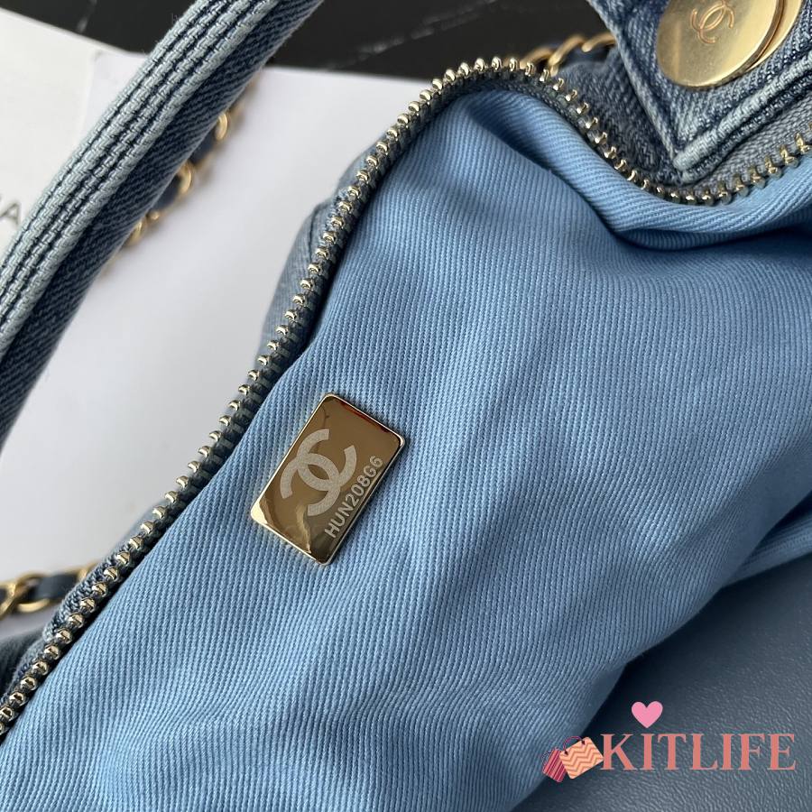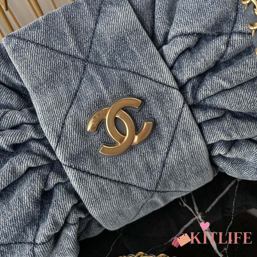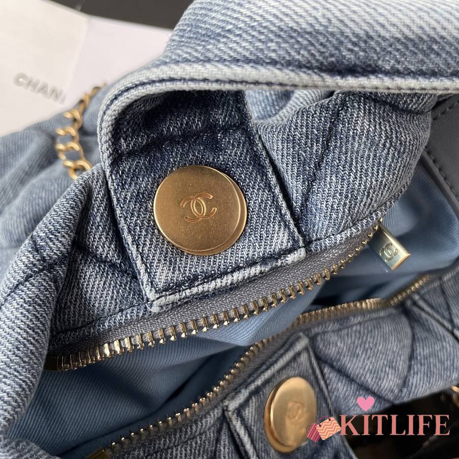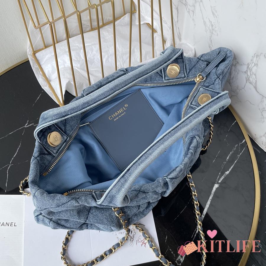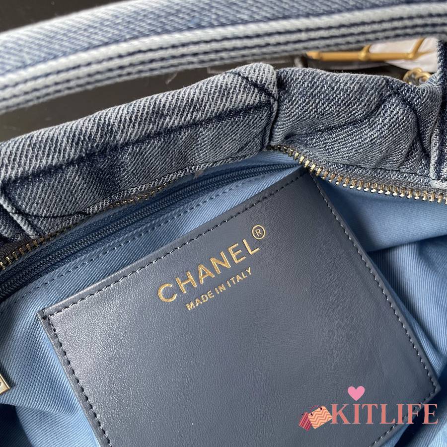 Kitlife Chanel Bow Bag Blue Denim & Gold Metallic AS5851 29x38x5cm