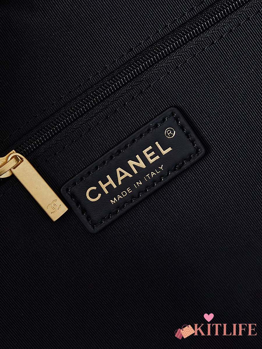 Kitlife Chanel Drawstring Handbag Black Leather & Gold Metallic AS5293 30x26x14cm