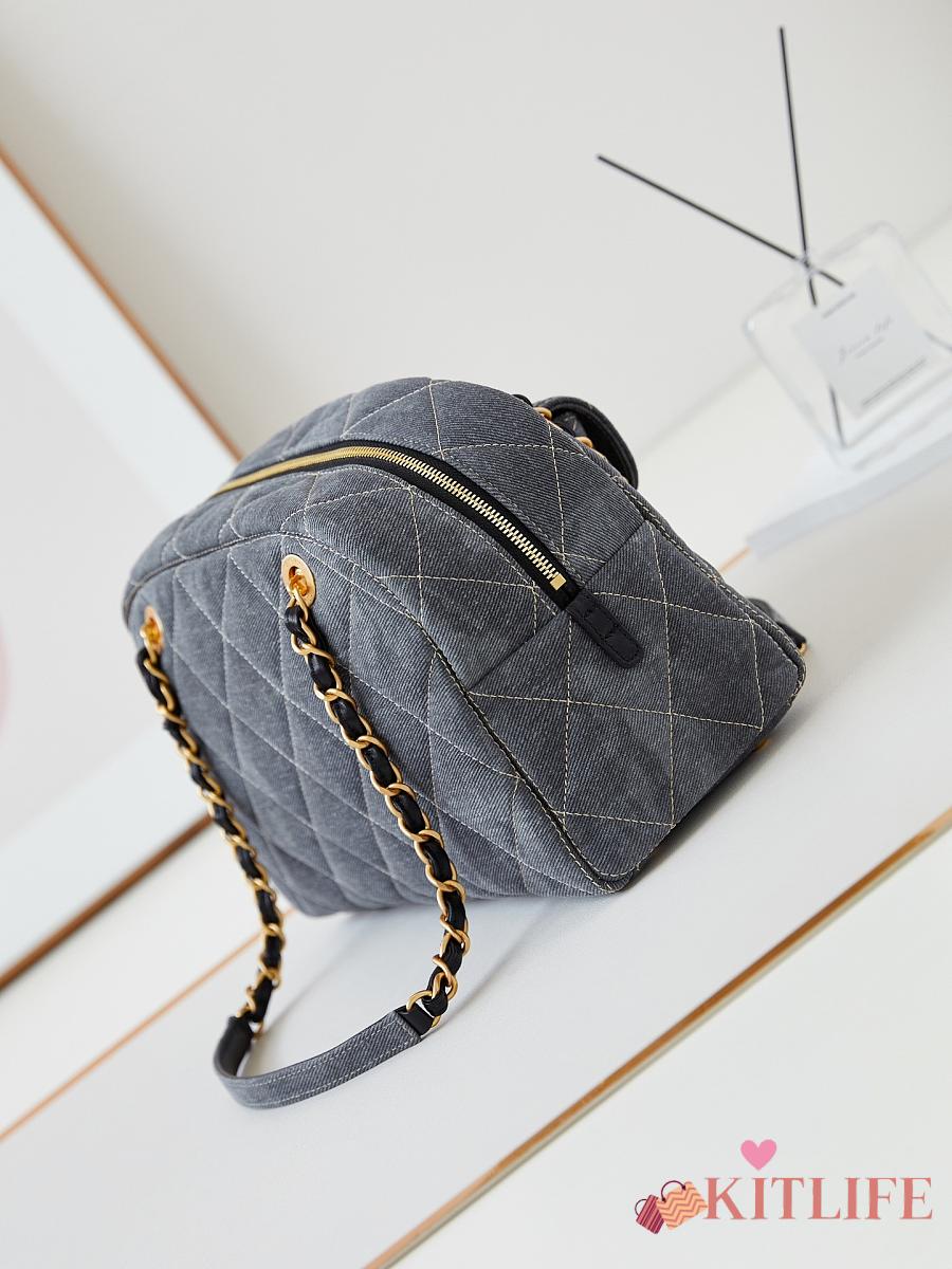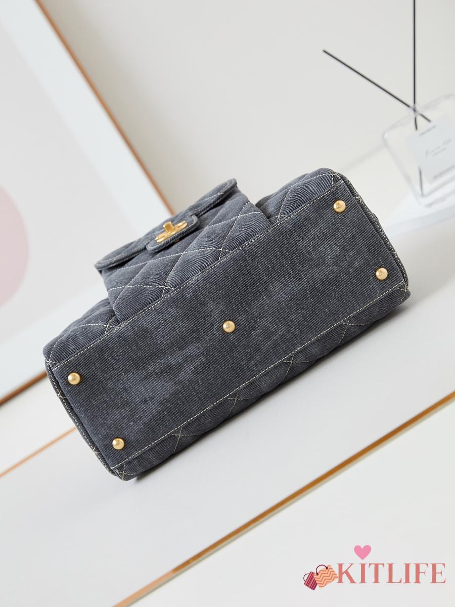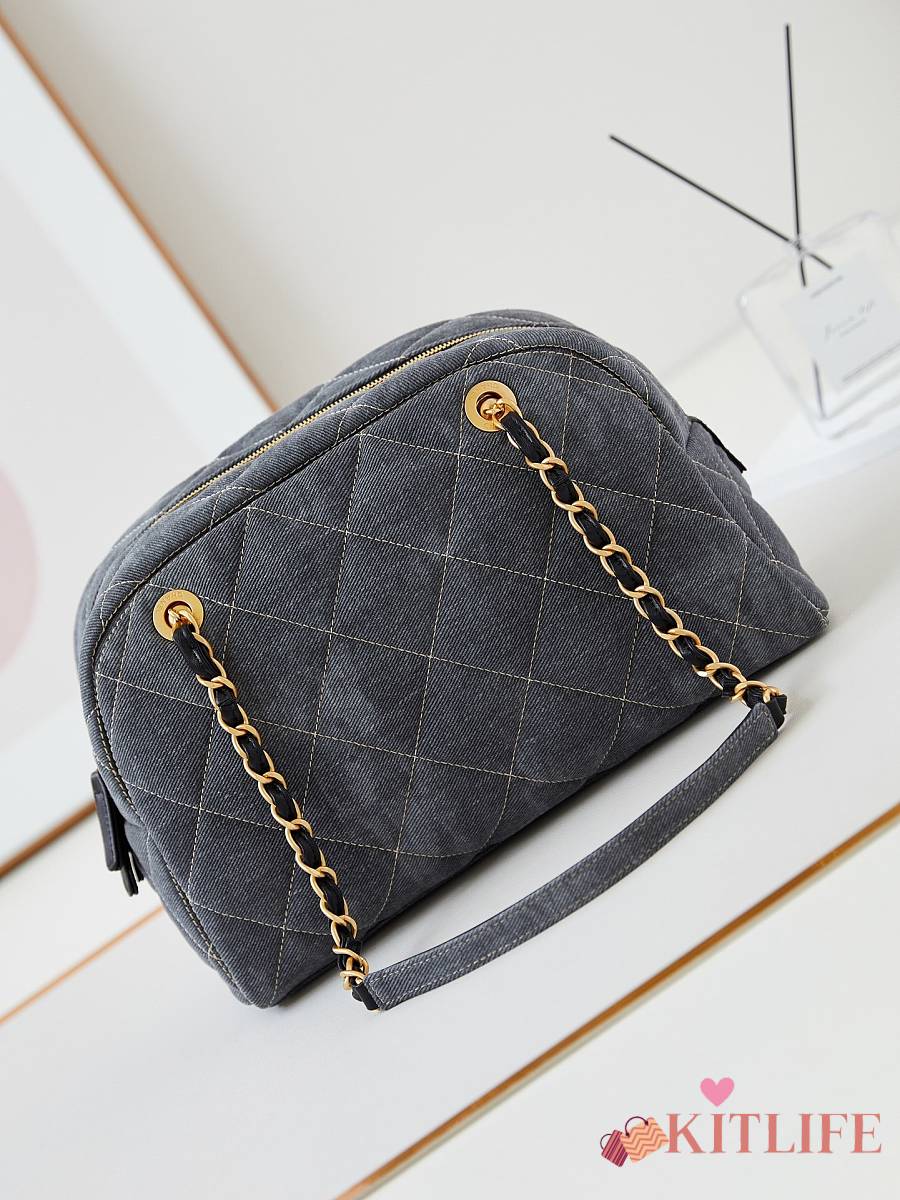 Kitlife Chanel Bowling Bag Chain Shoulder Bag Grey Denim AS4812 28x44x15.5cm