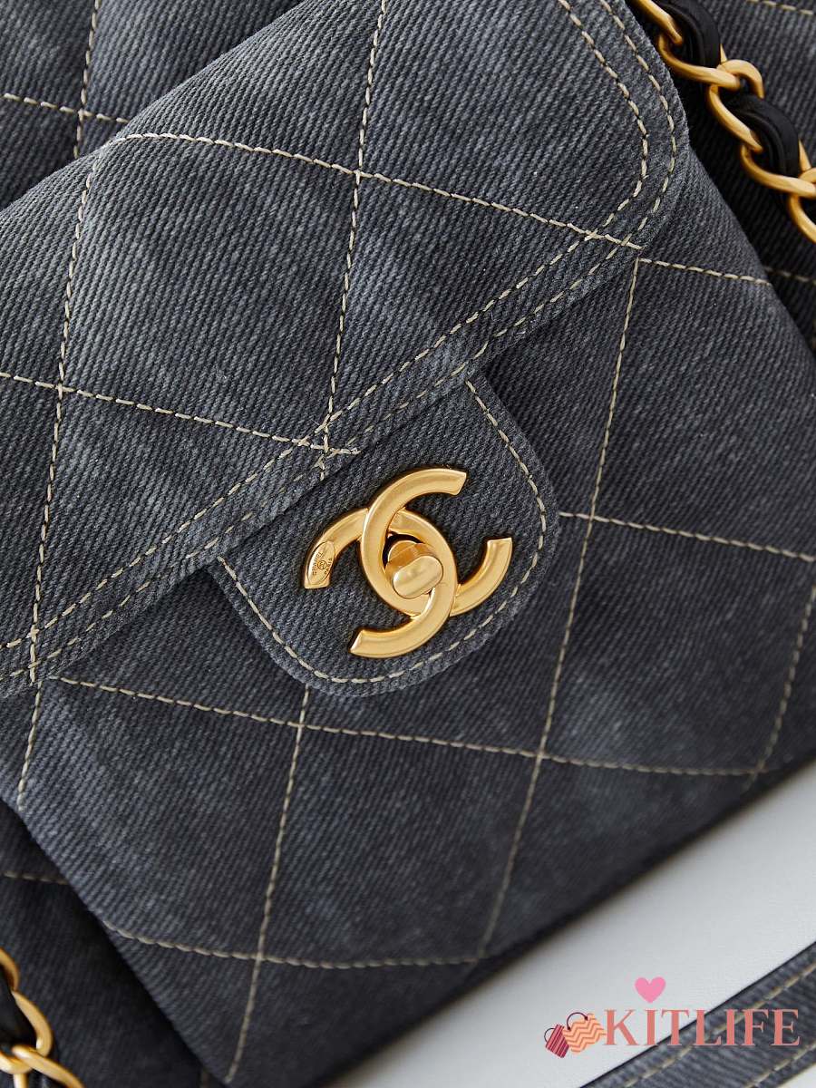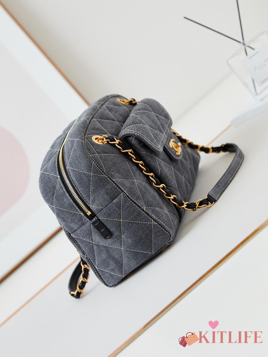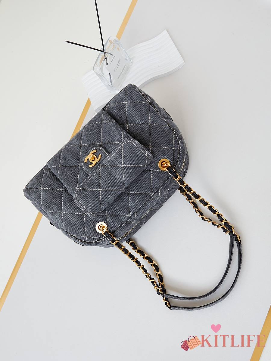Kitlife Chanel Bowling Bag Chain Shoulder Bag Grey Denim AS4812 28x44x15.5cm