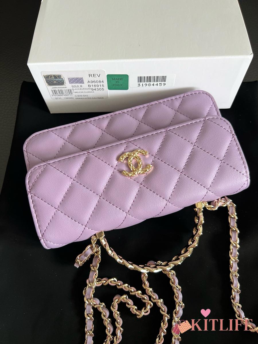 Kitlife Chanel Camellia Adjusting Chain Bag Purple 17cm
