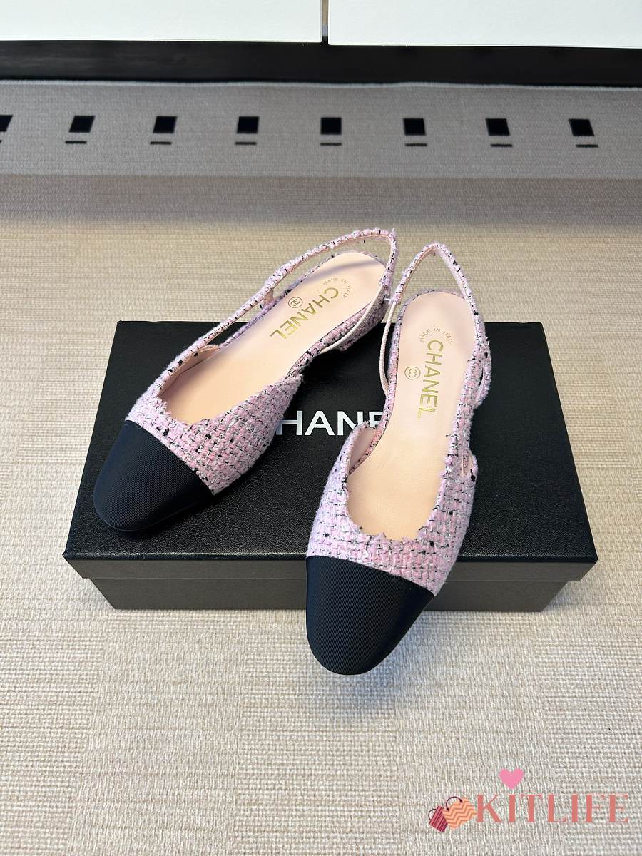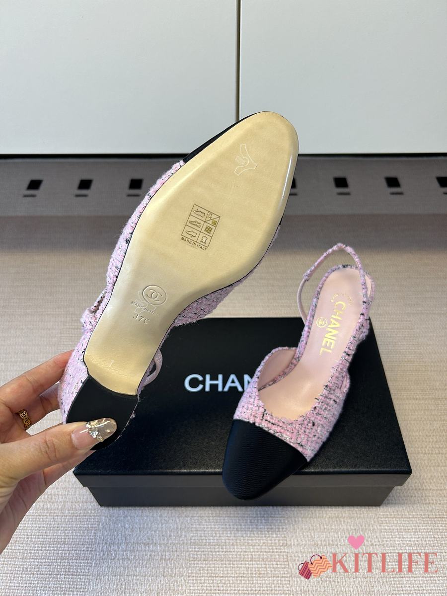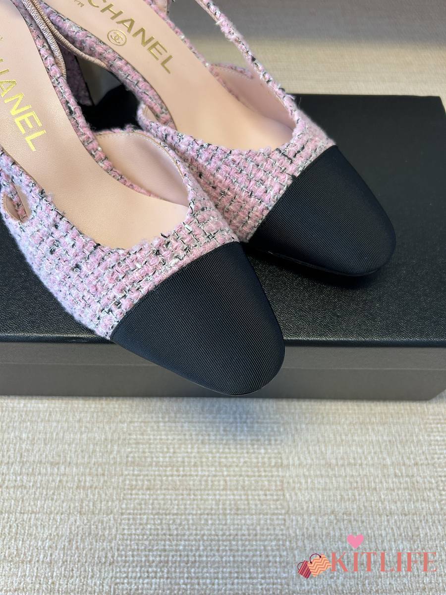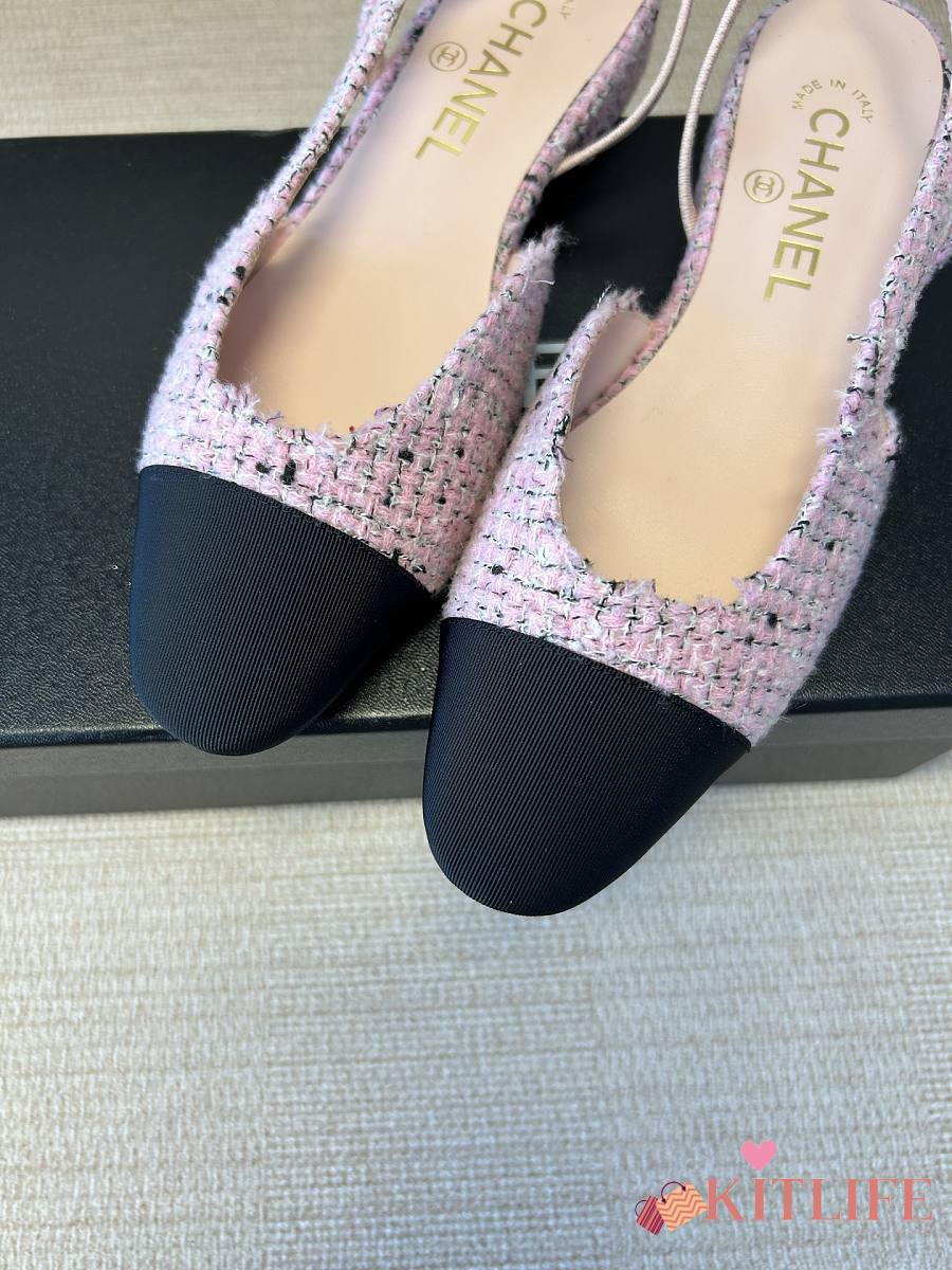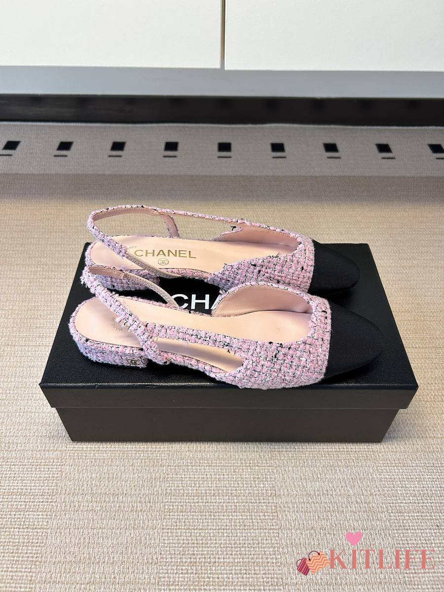 Kitlife Chanel Cap Toe CC Slingback Sandals Pink Tweed
