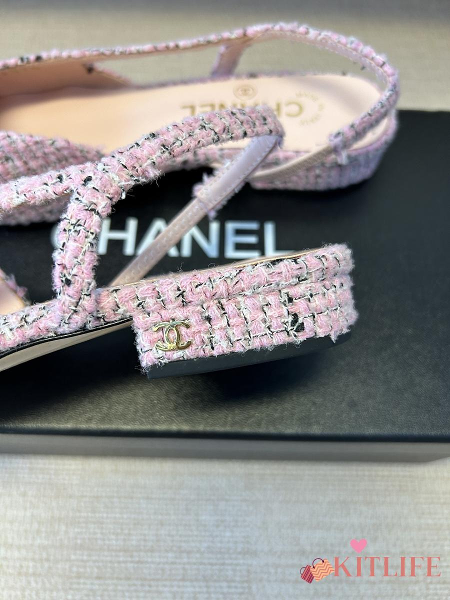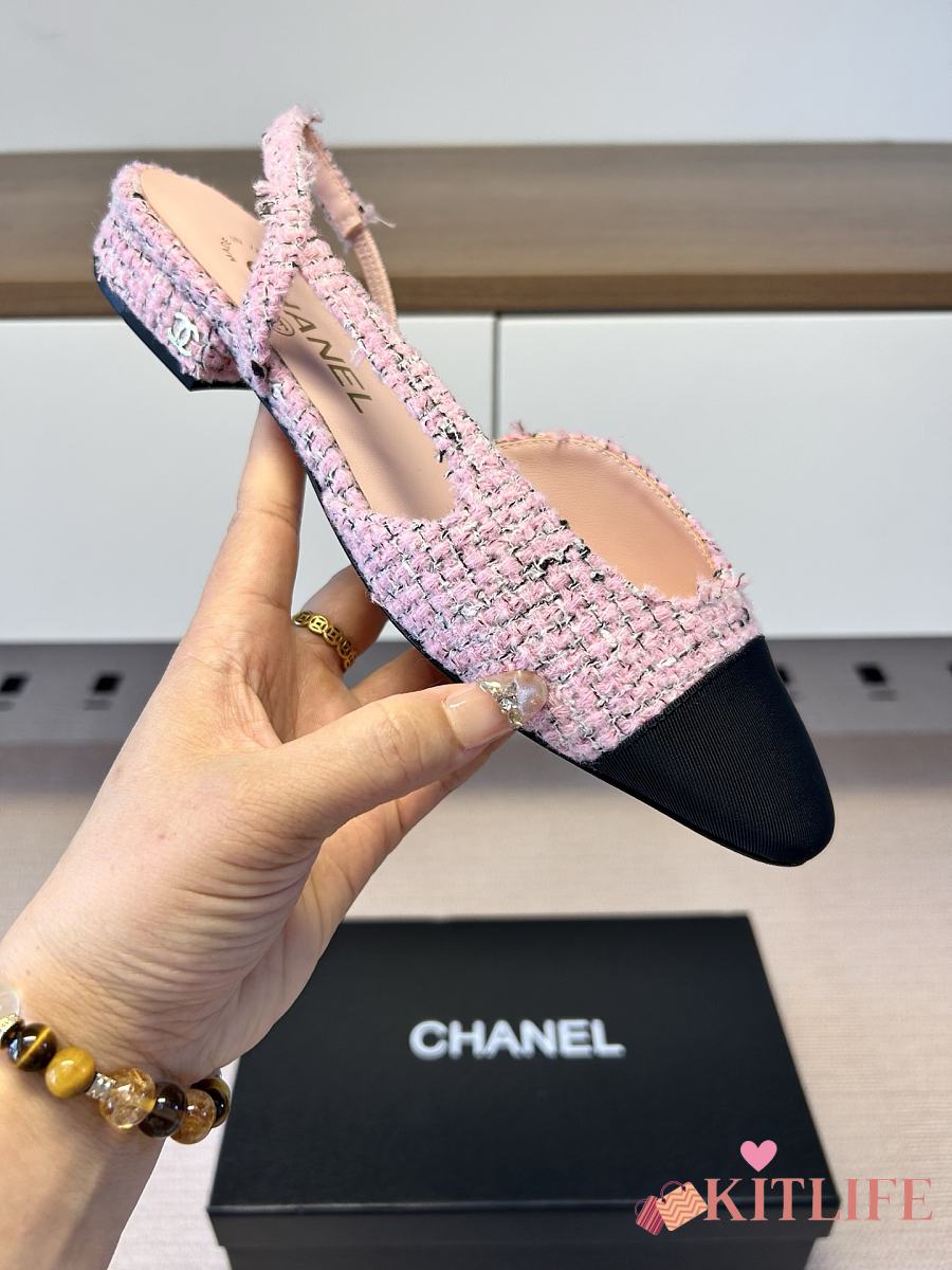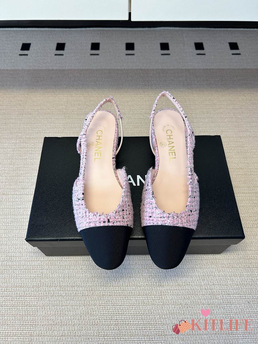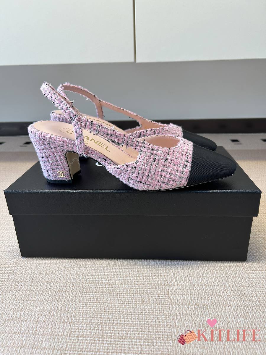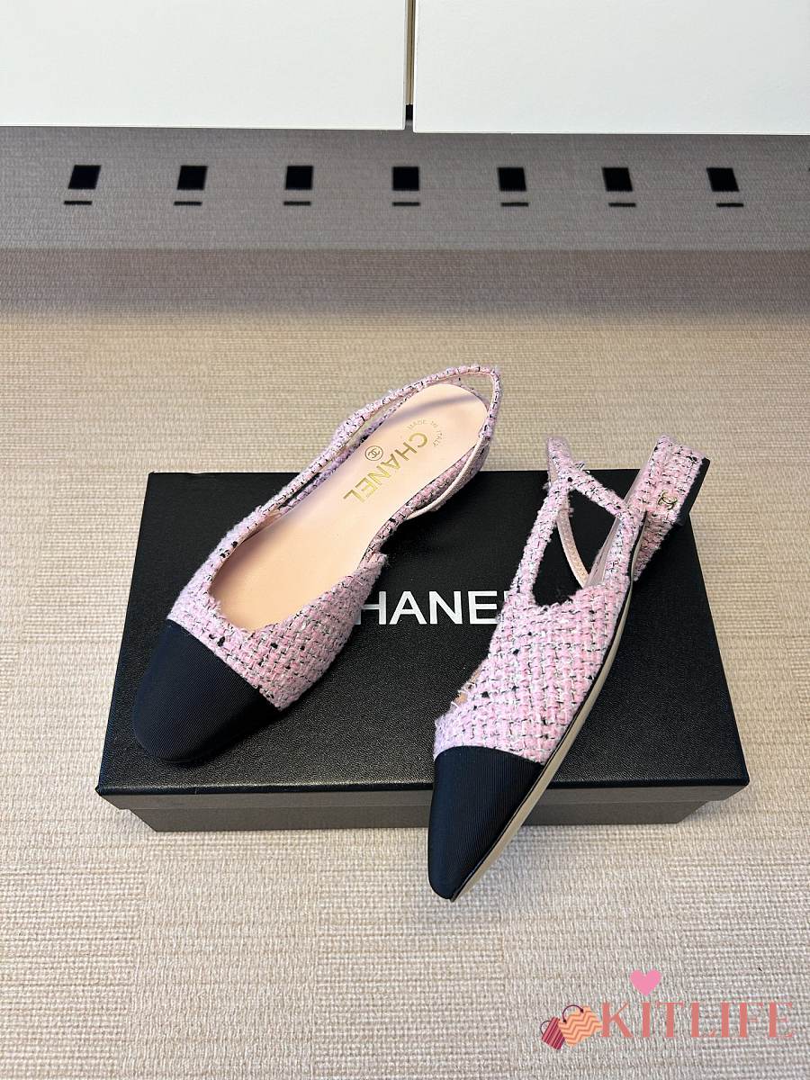 Kitlife Chanel Cap Toe CC Slingback Sandals Pink Tweed