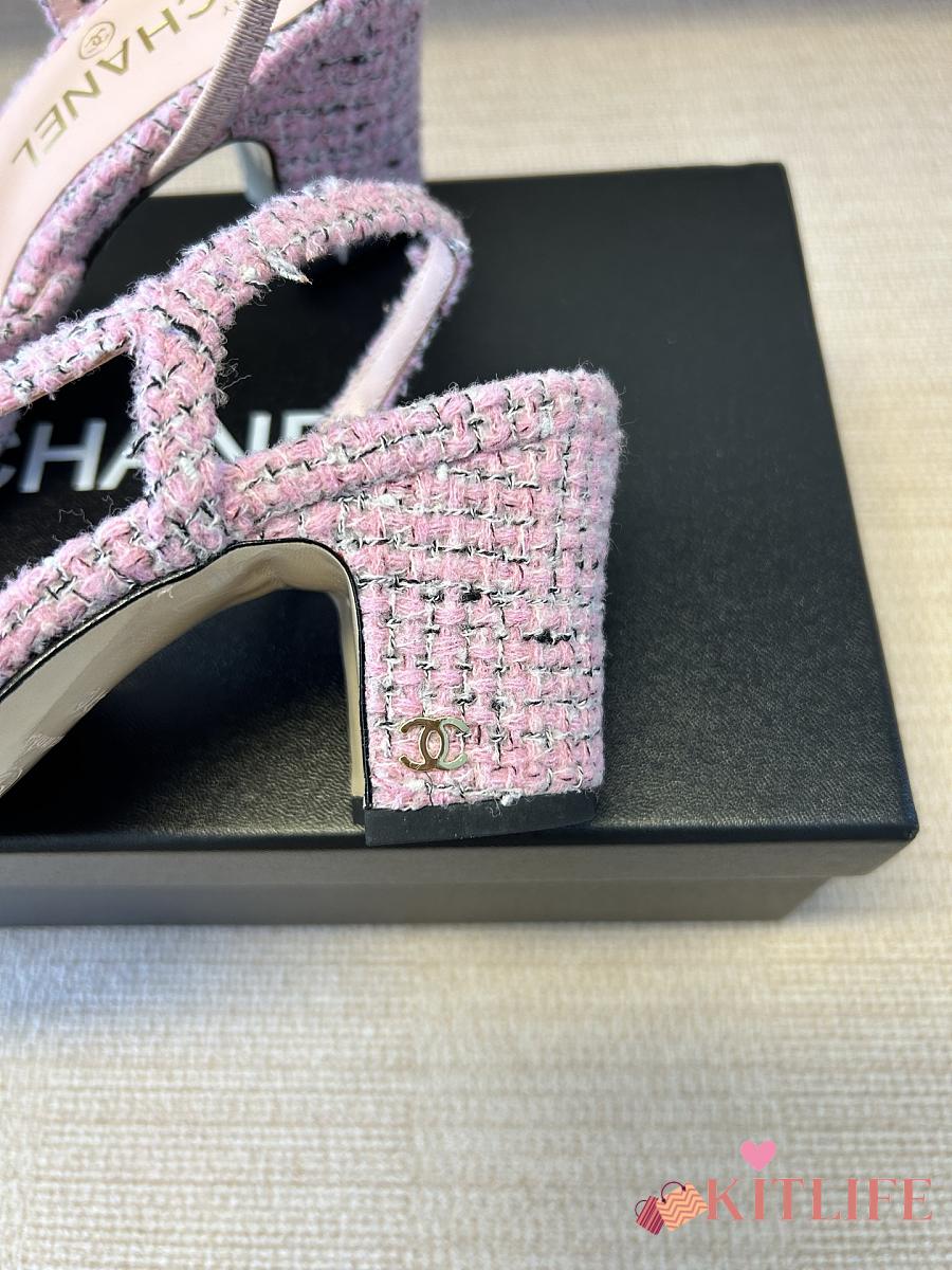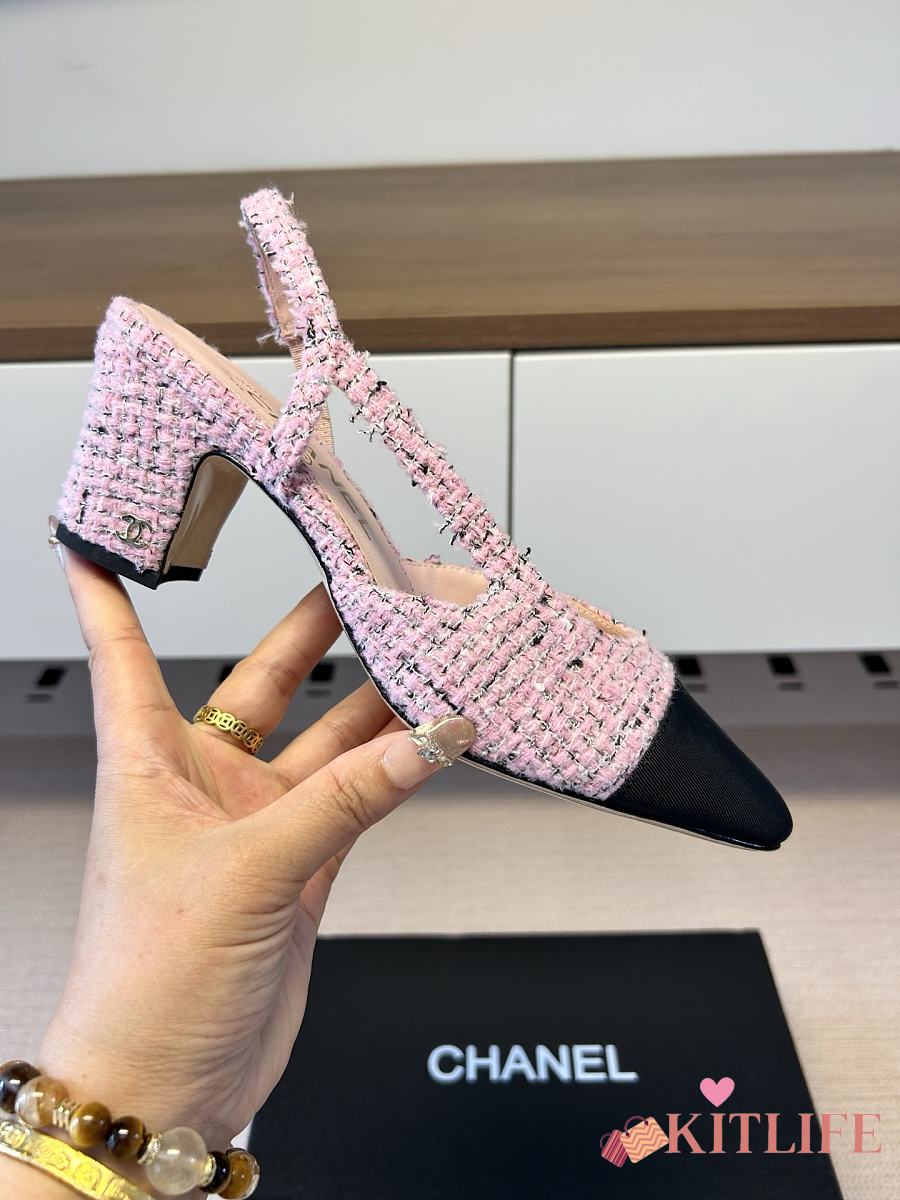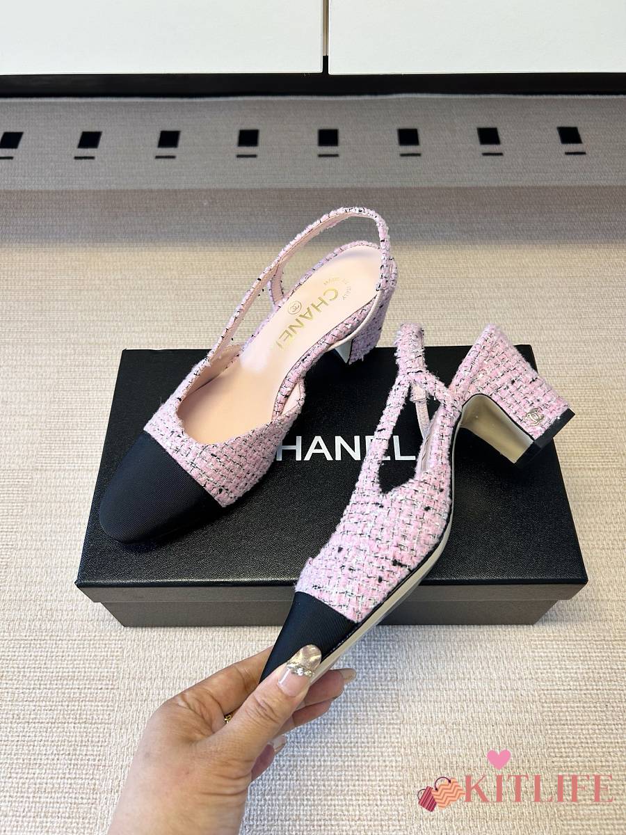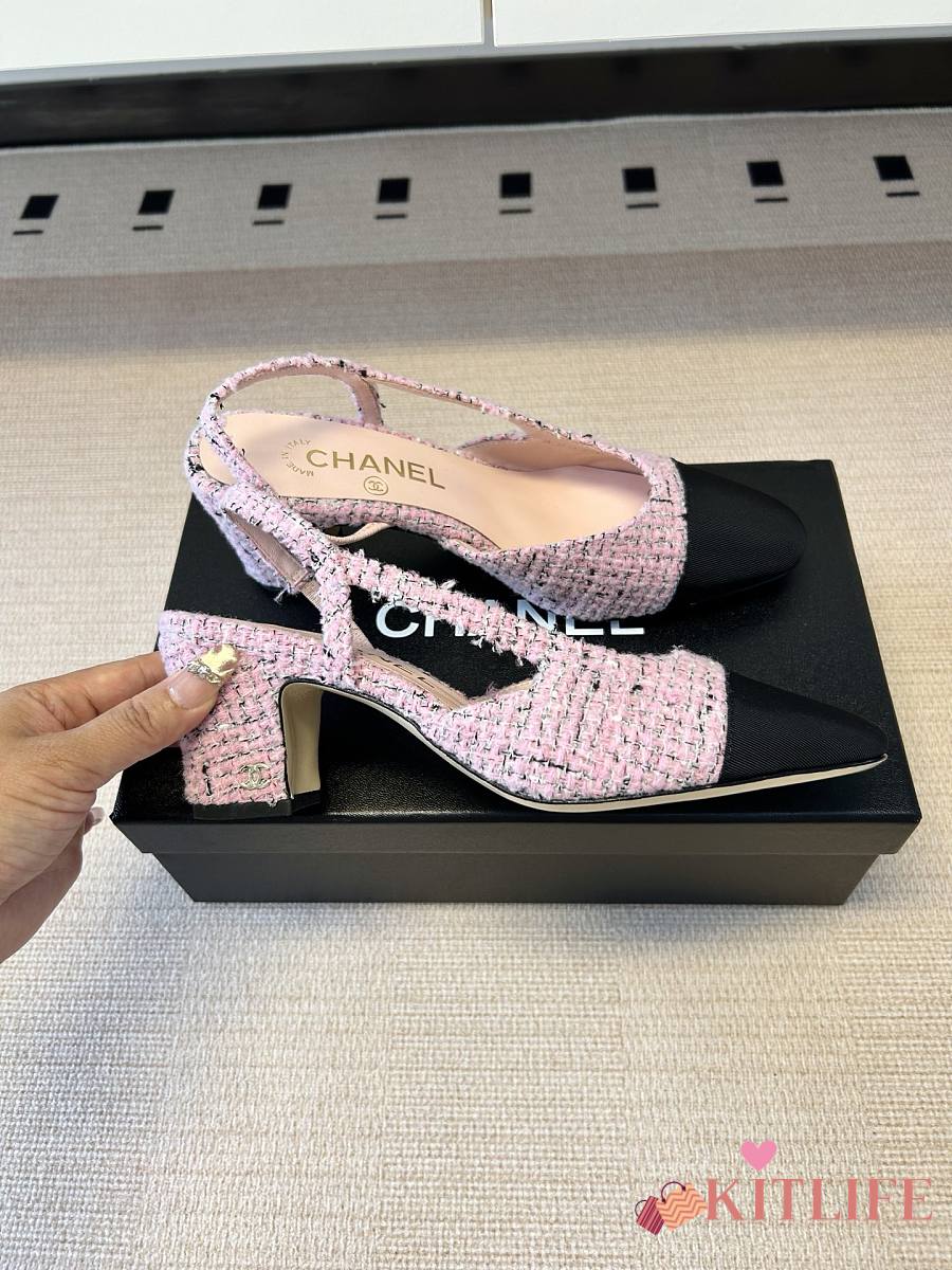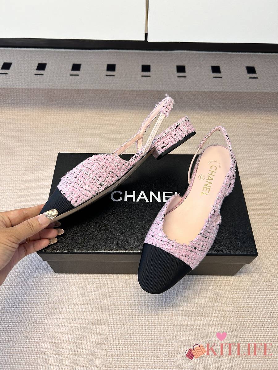 Kitlife Chanel Cap Toe CC Slingback Sandals Pink Tweed