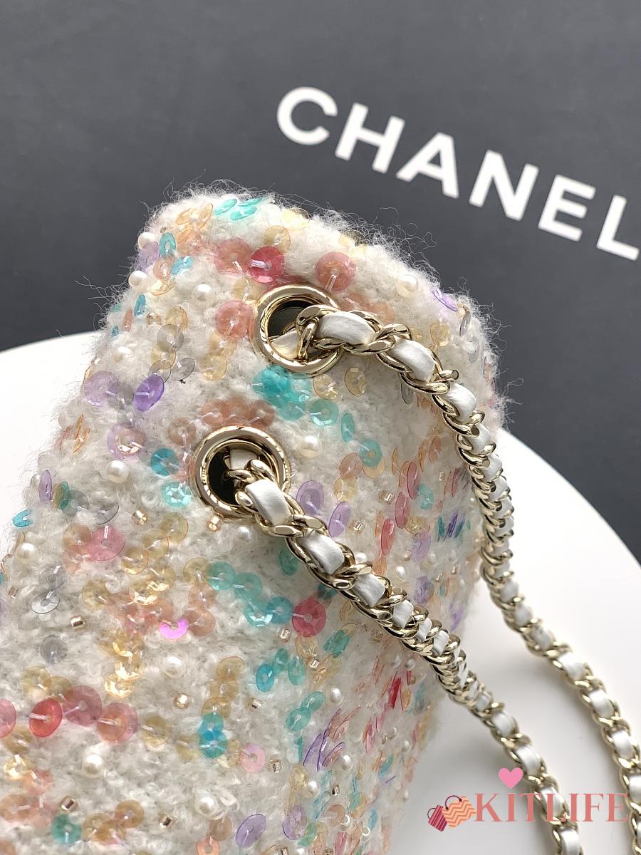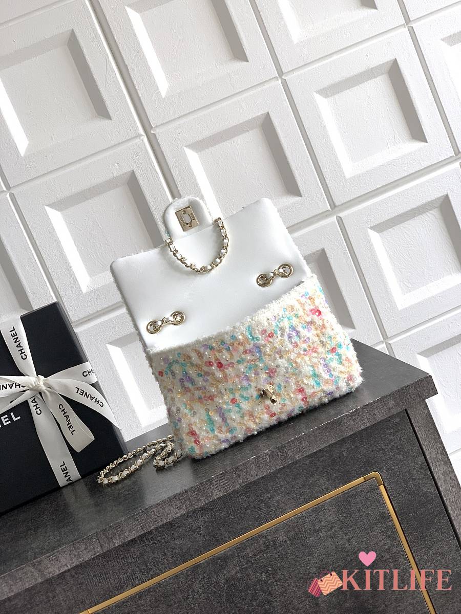Kitlife Chanel CF Pearl Sequin Embroidery Bag White 20cm