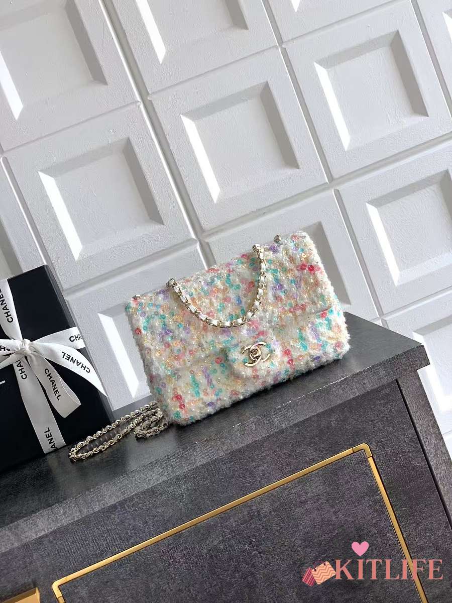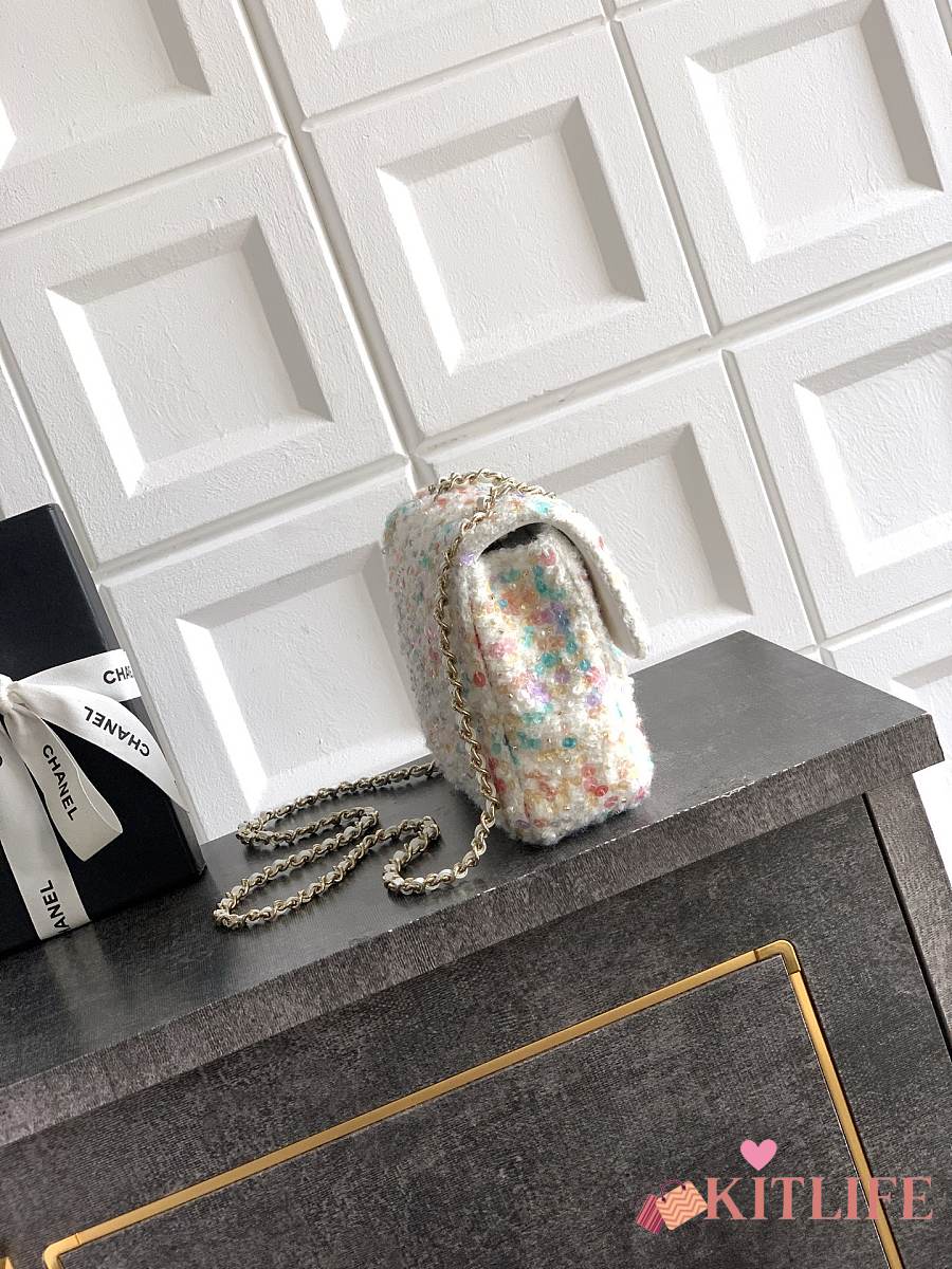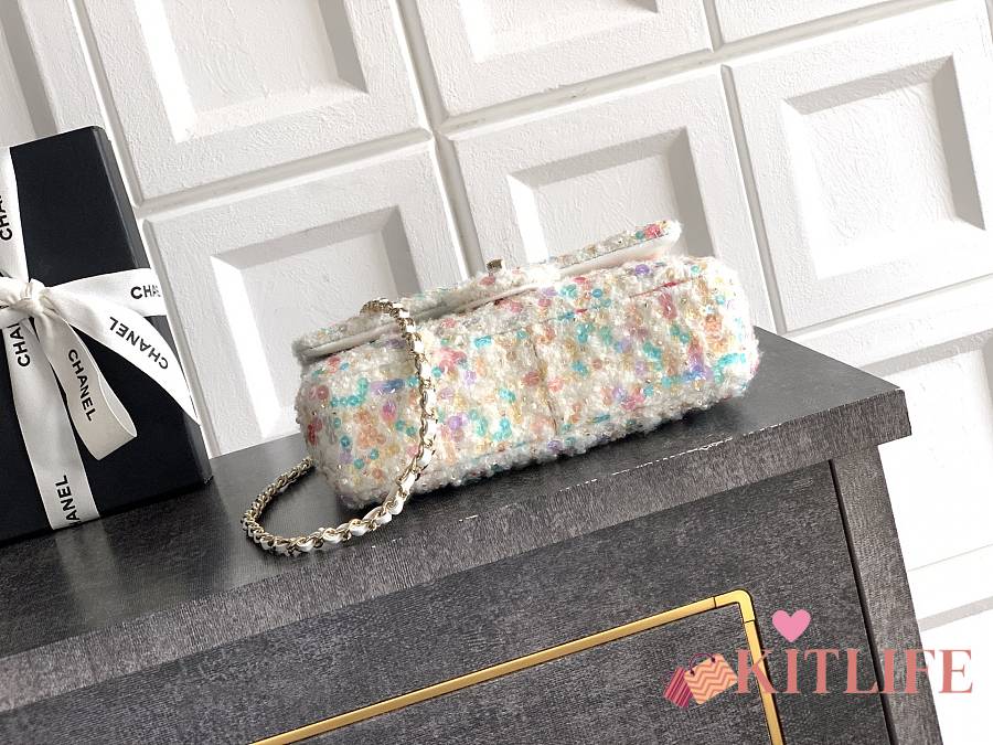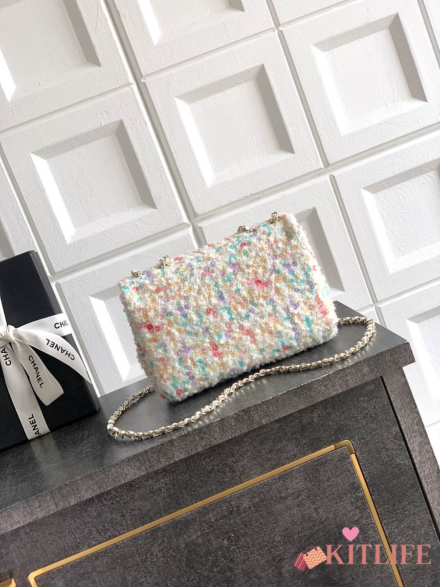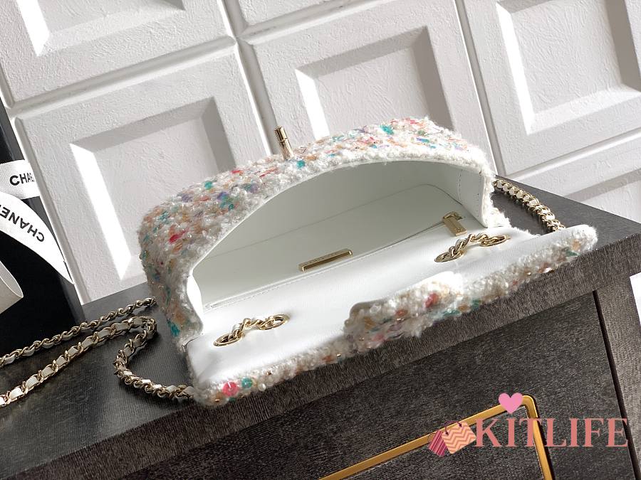 Kitlife Chanel Tweed Handbag White - 22cm