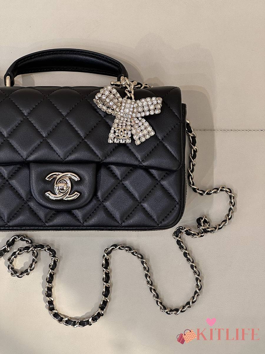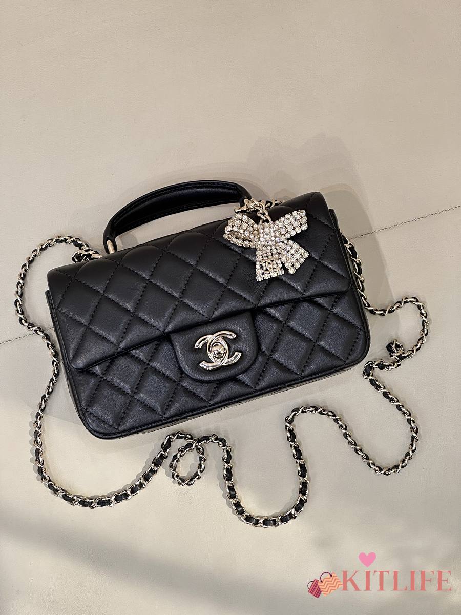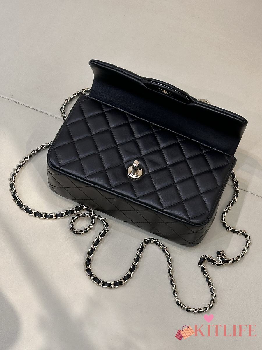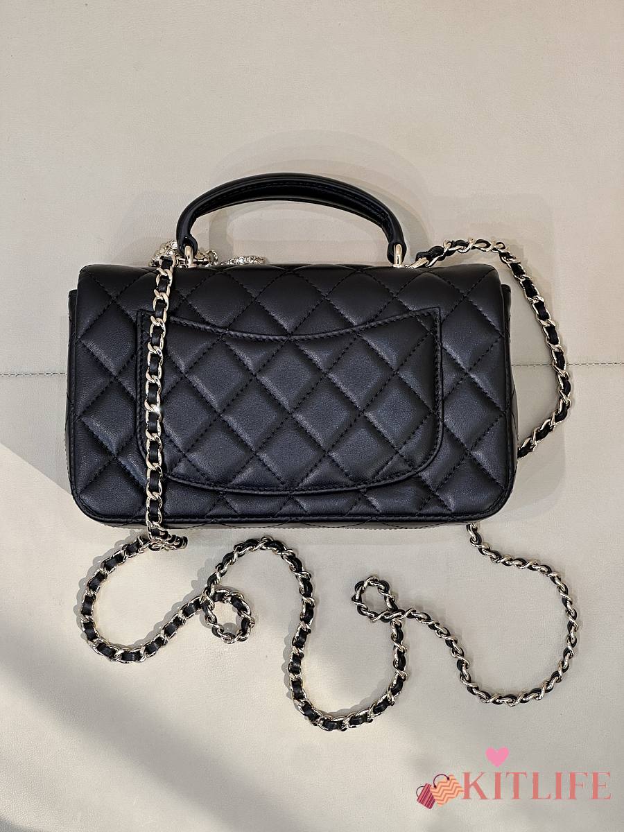 Kitlife Chanel Classic CF Mini Metal Handle Bag Black 20x12x6cm