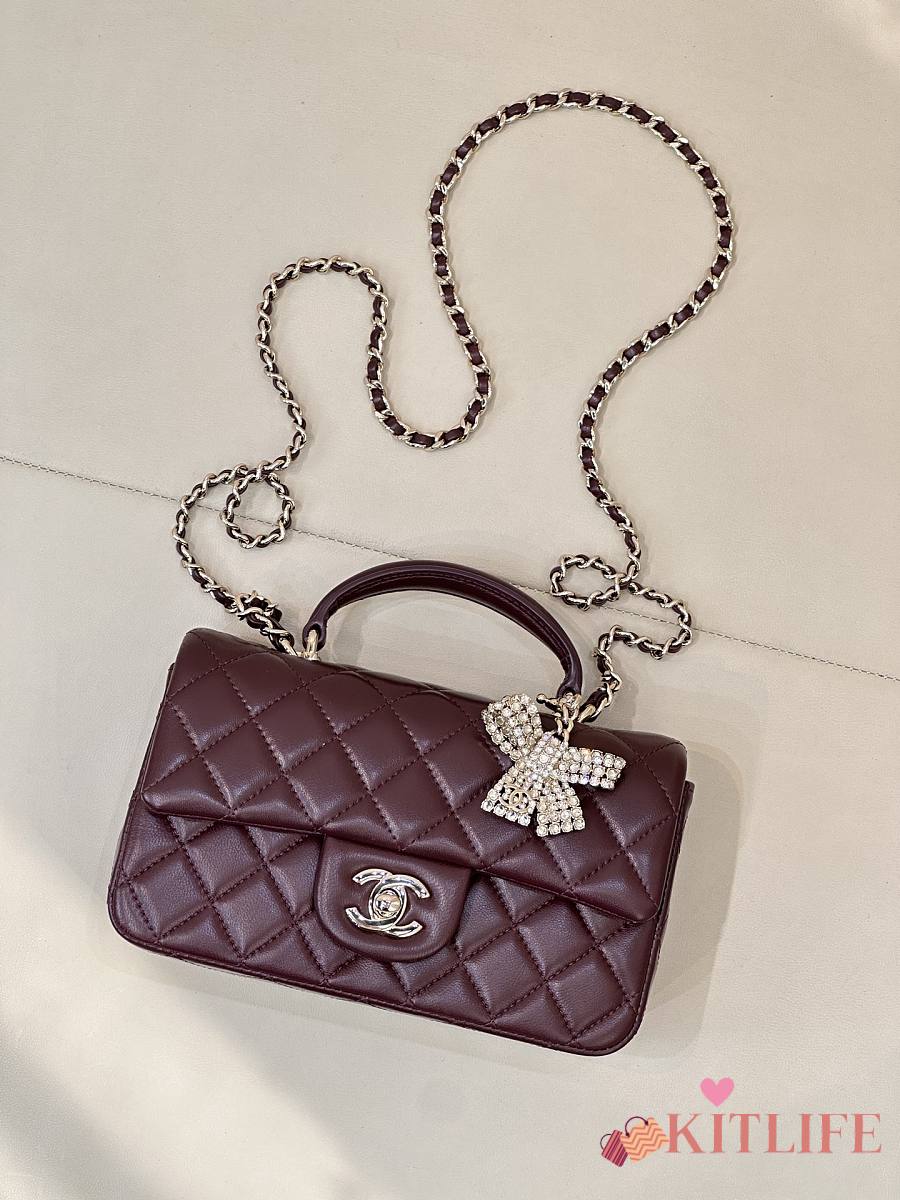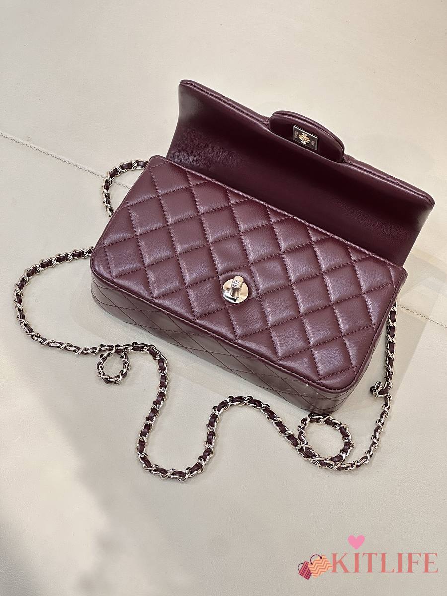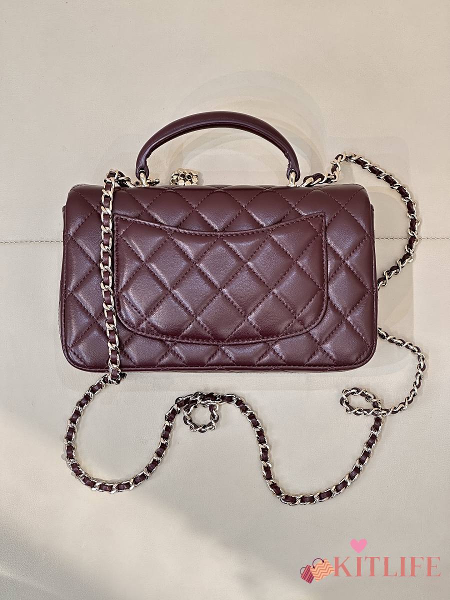 Kitlife Chanel Classic CF Mini Metal Handle Bag Burgundy 20x12x6cm