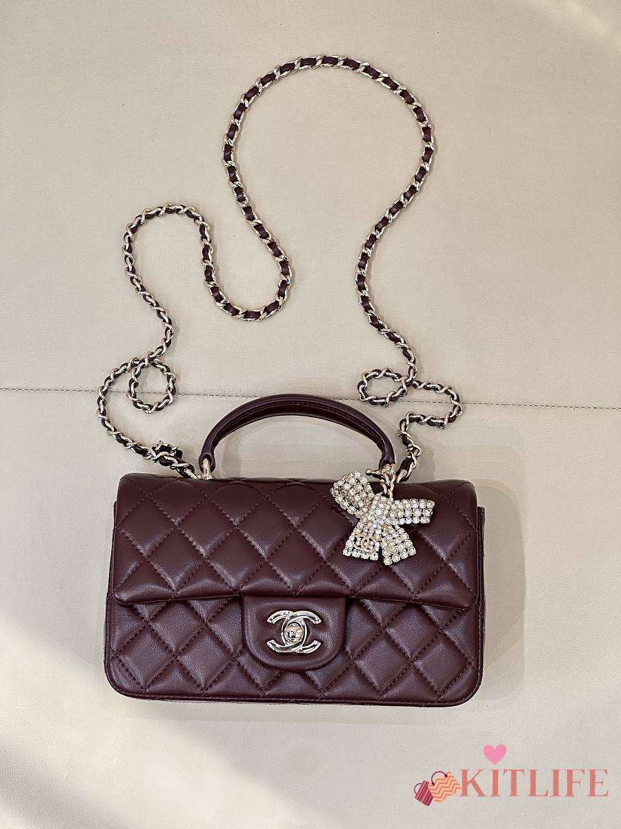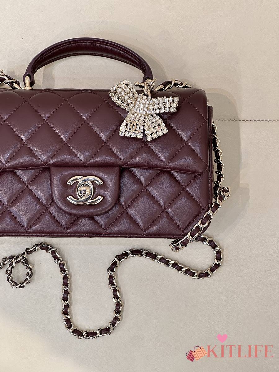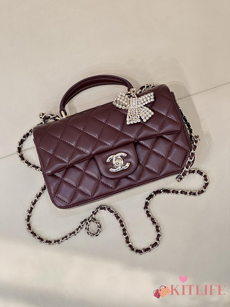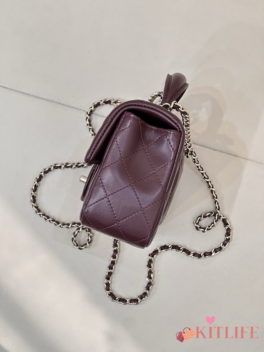 Kitlife Chanel Classic CF Mini Metal Handle Bag Burgundy 20x12x6cm