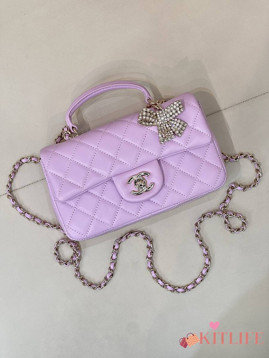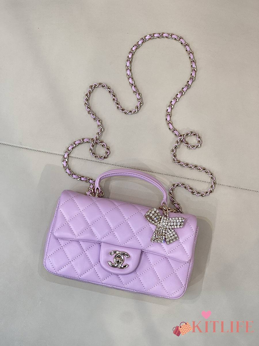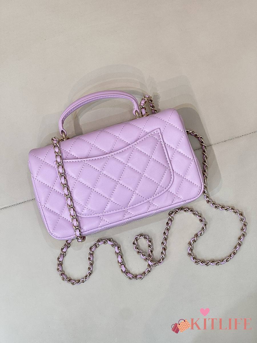 Kitlife Chanel Classic CF Mini Metal Handle Bag Purple 20x12x6cm