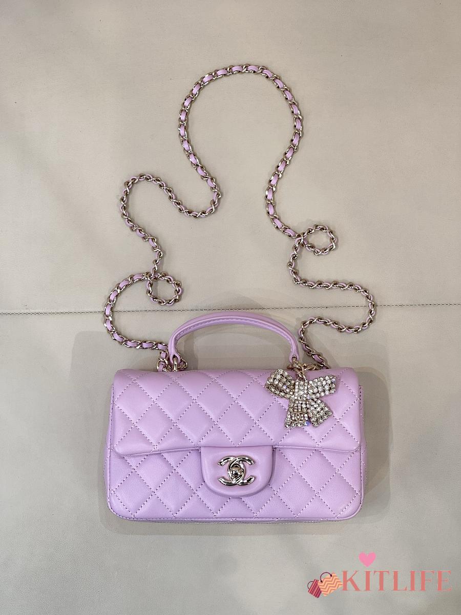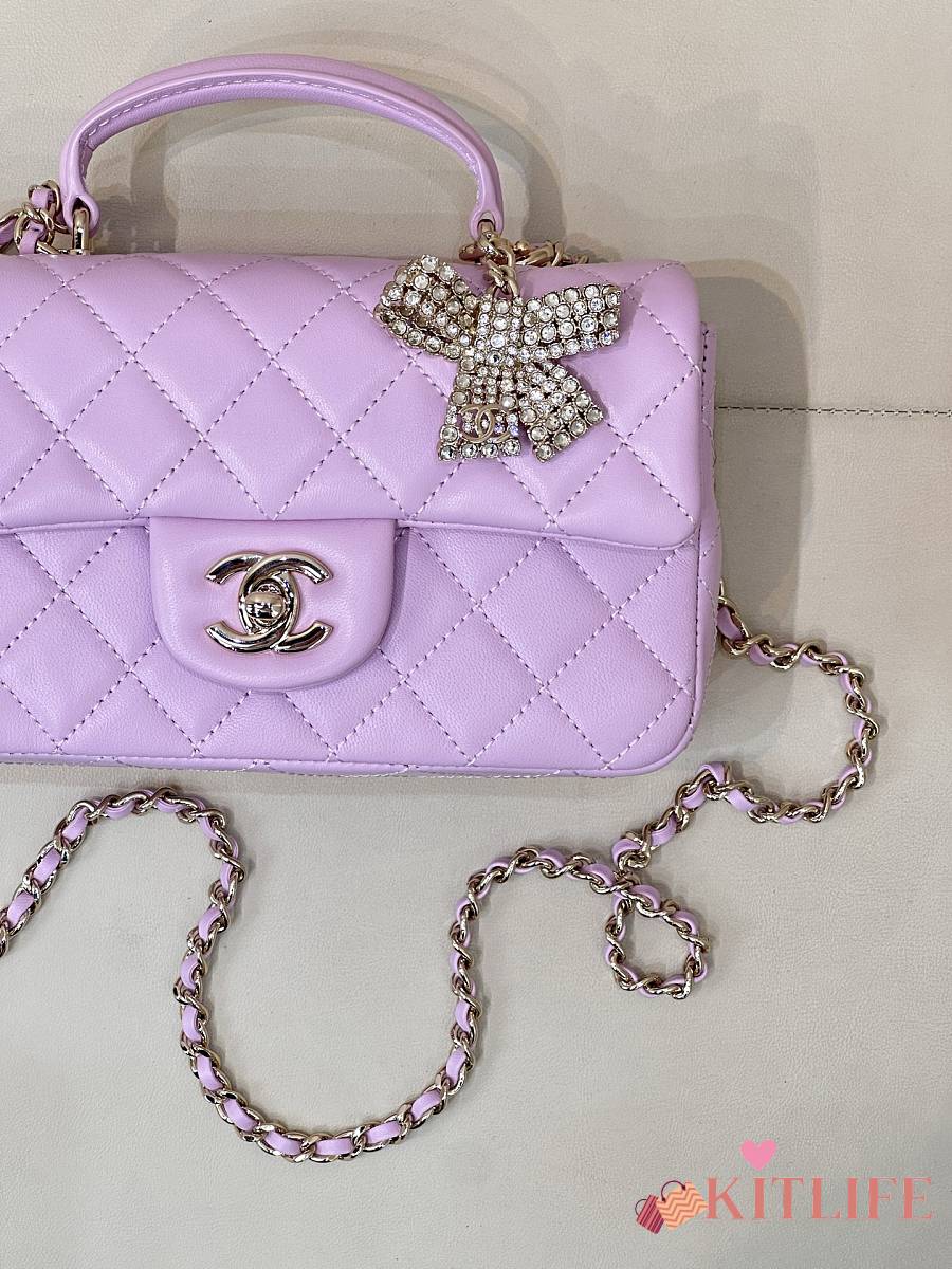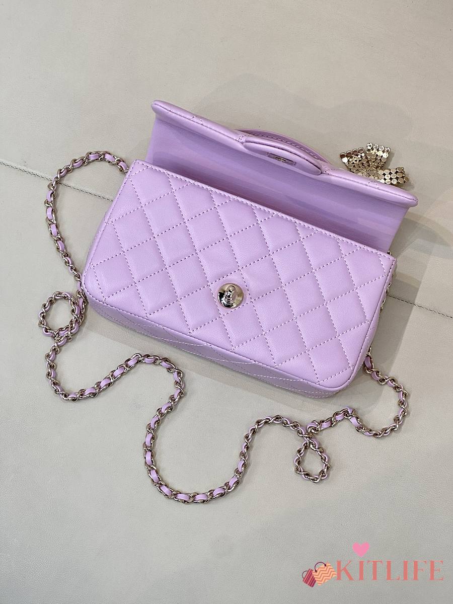 Kitlife Chanel Classic CF Mini Metal Handle Bag Purple 20x12x6cm