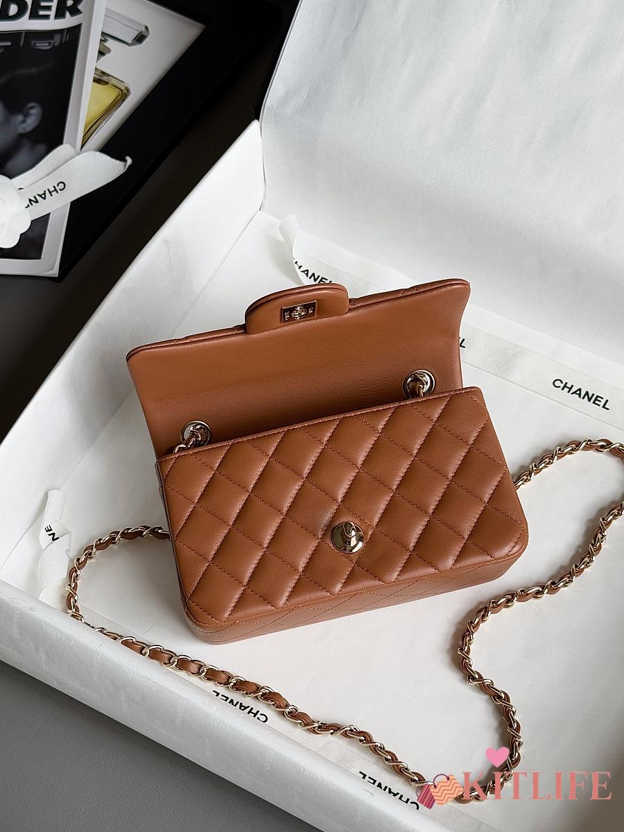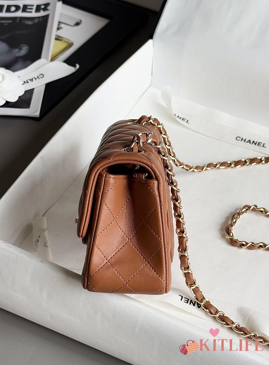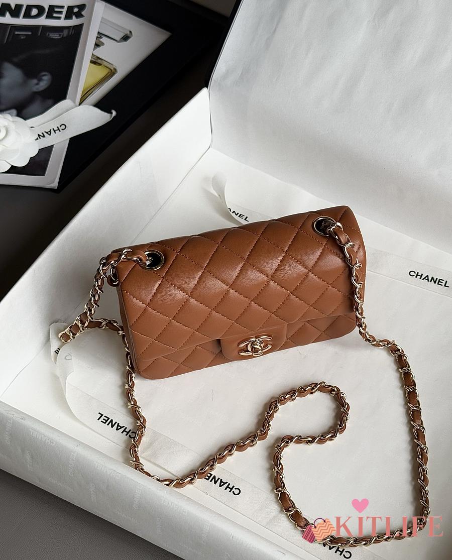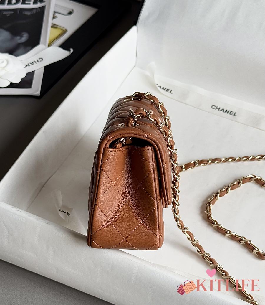 Kitlife Chanel Classic Flap Bag Lambskin Brown In Silver Hardware 20x14x7cm