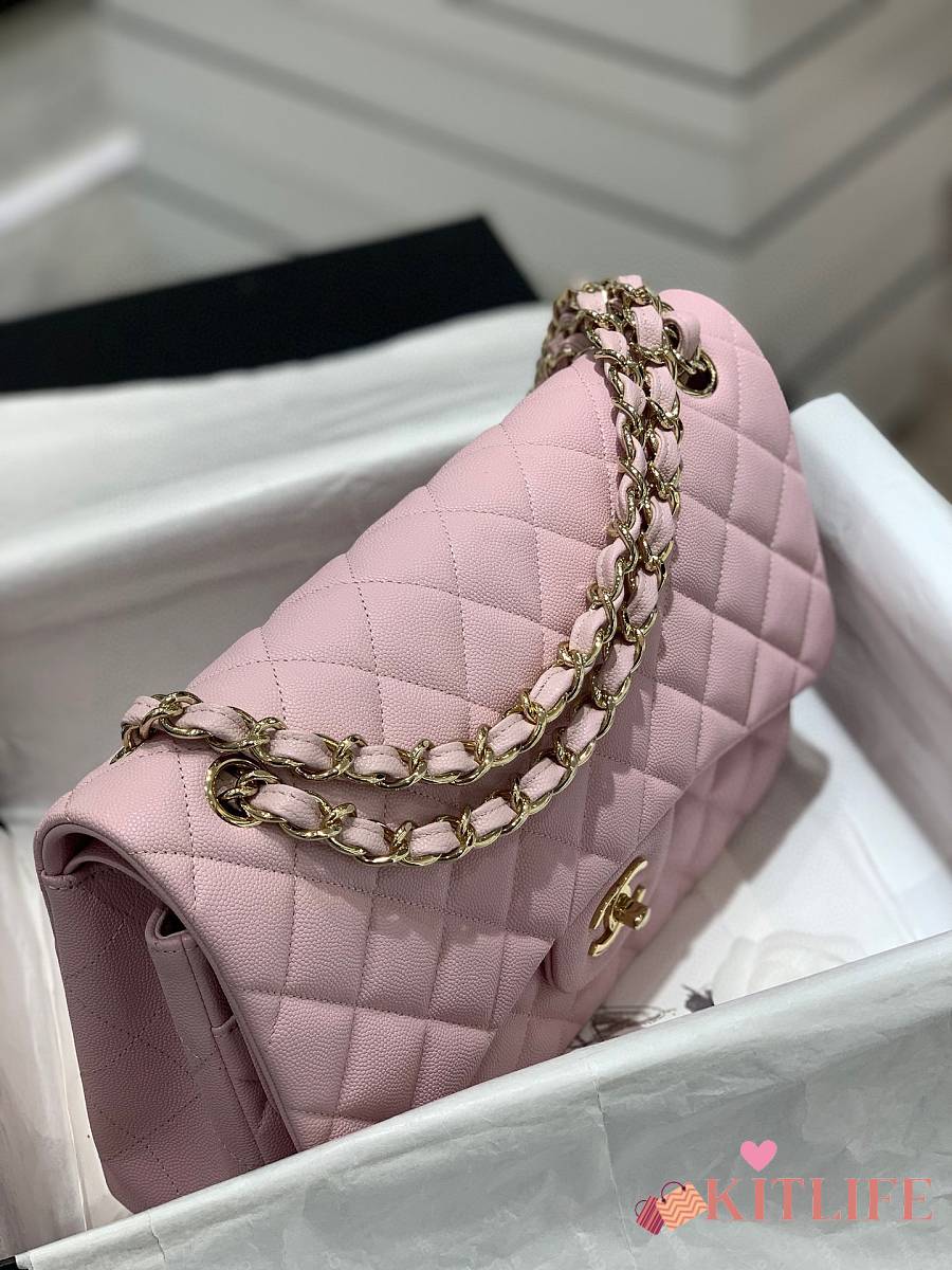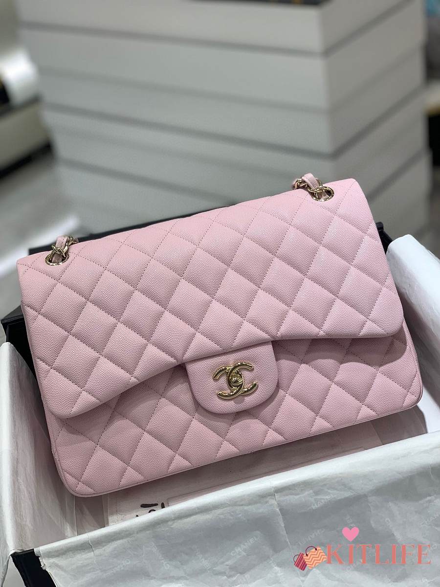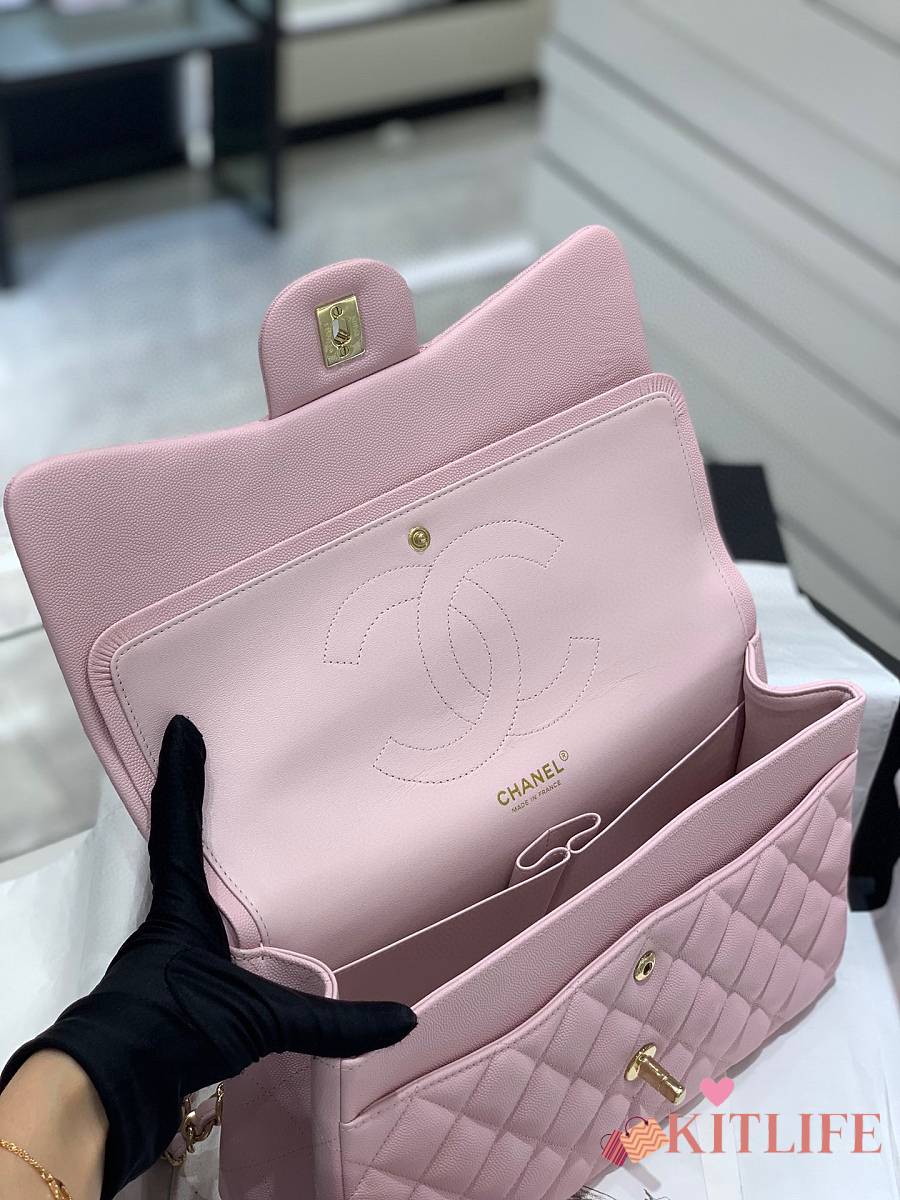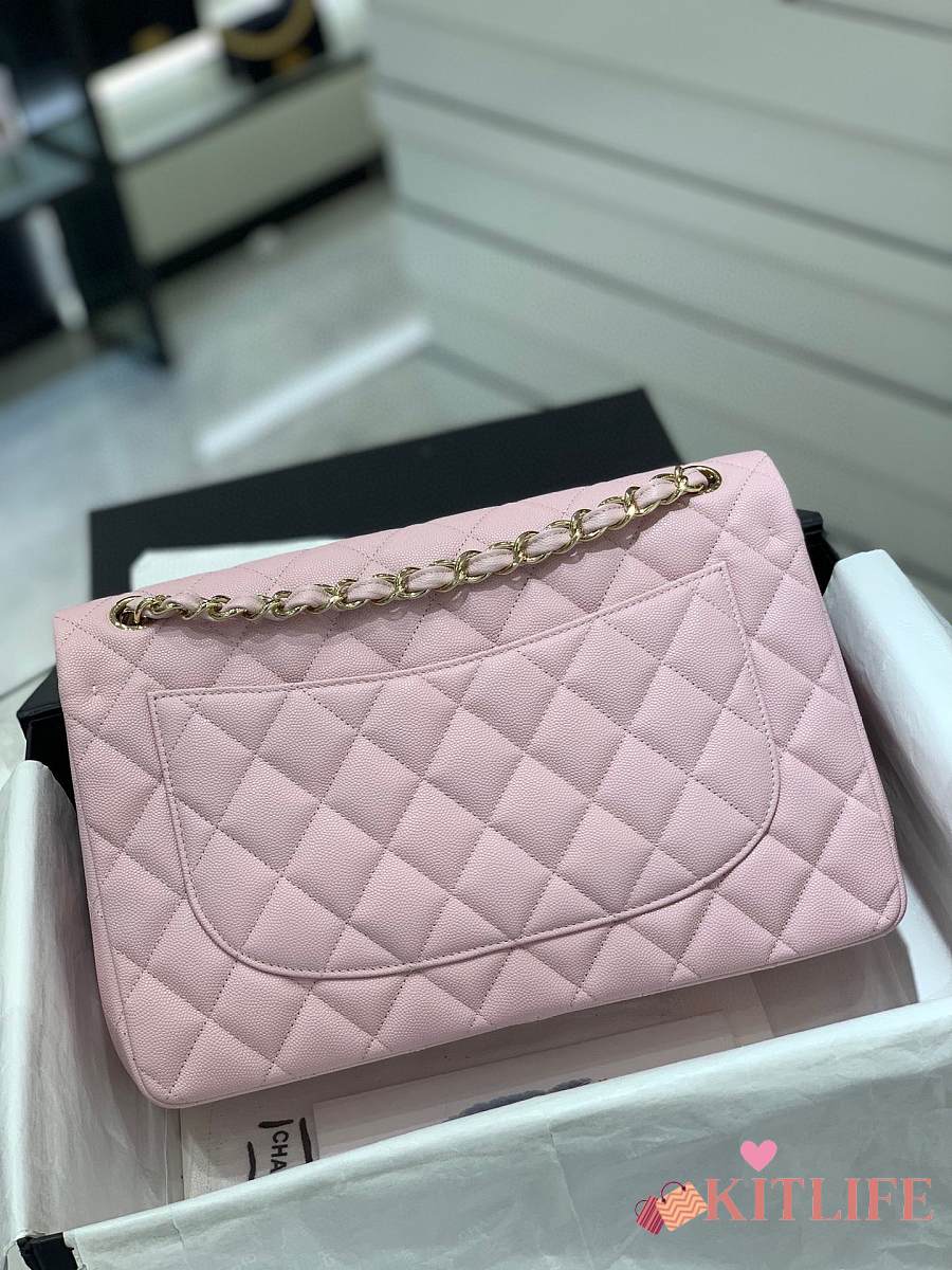 Kitlife Chanel Classic Flap Jumbo Pink Caviar Leather Bag Gold Hardware - 30cm
