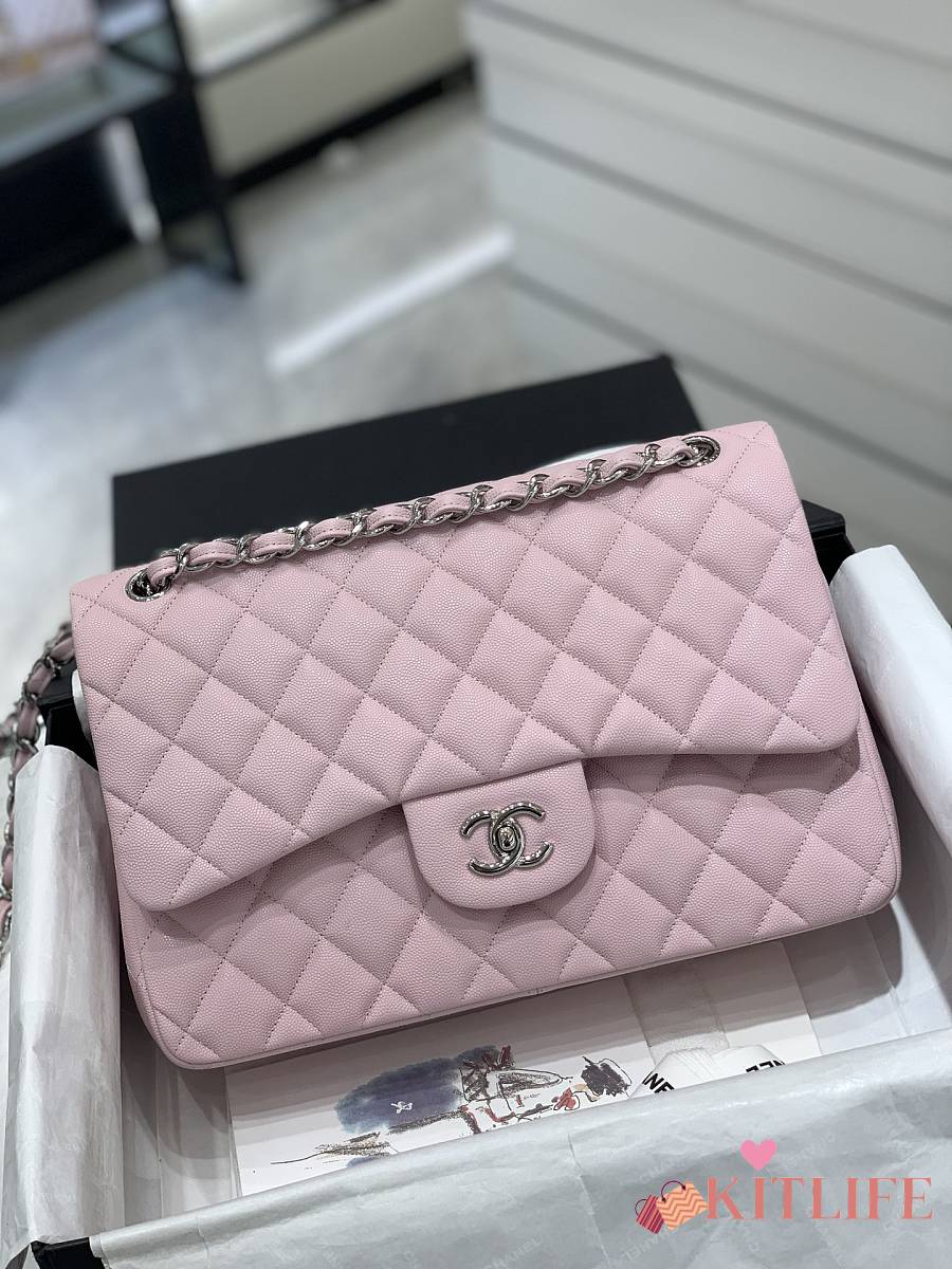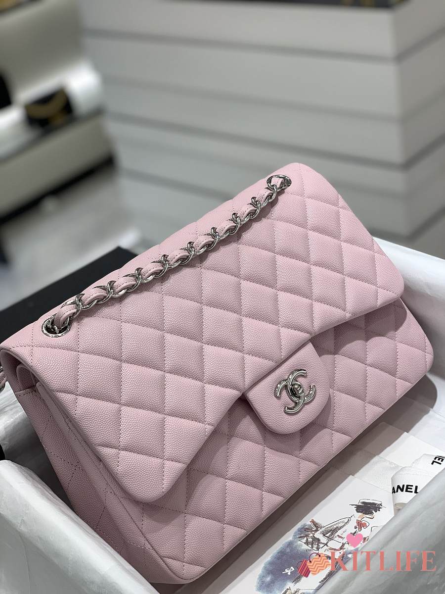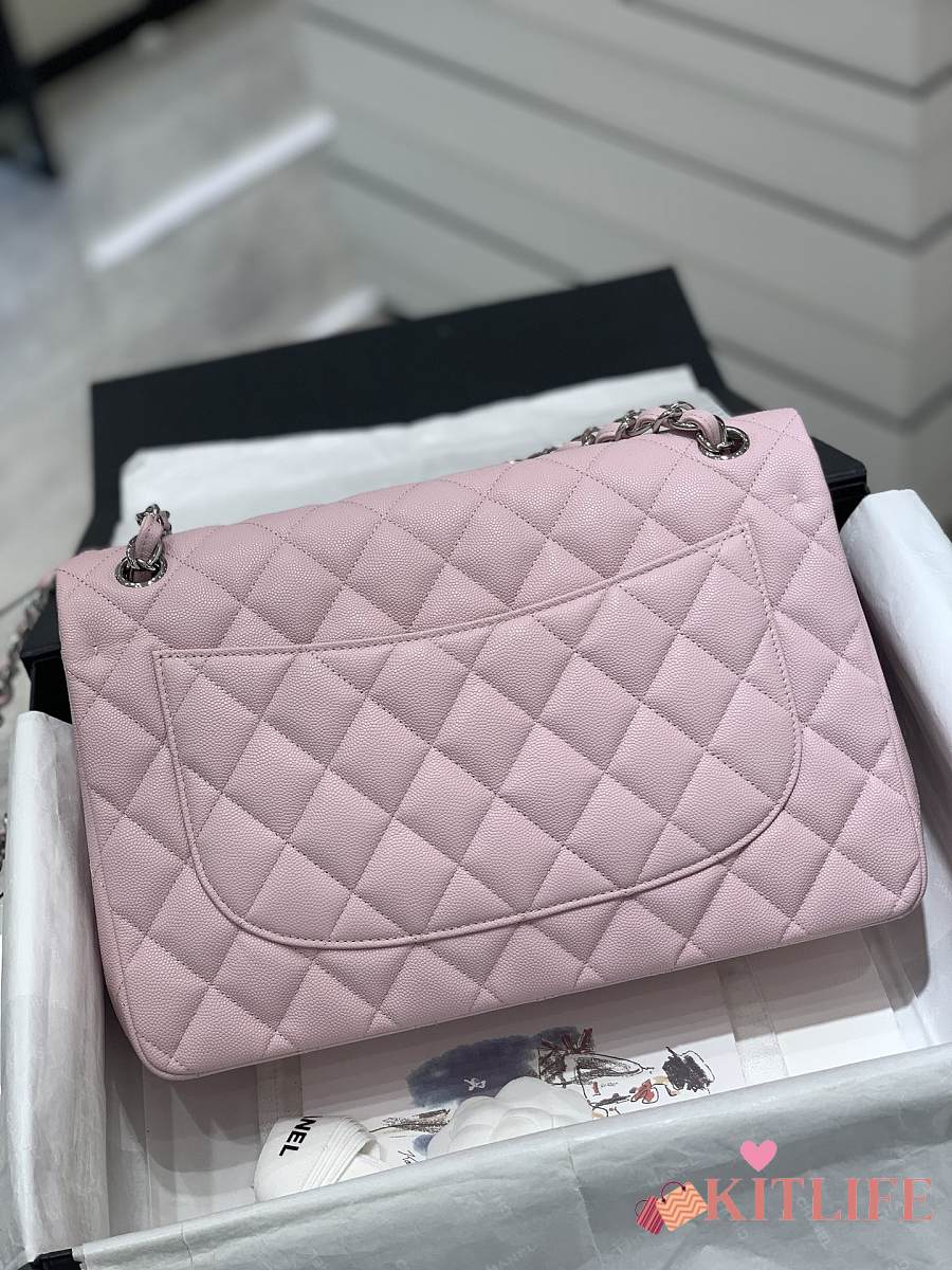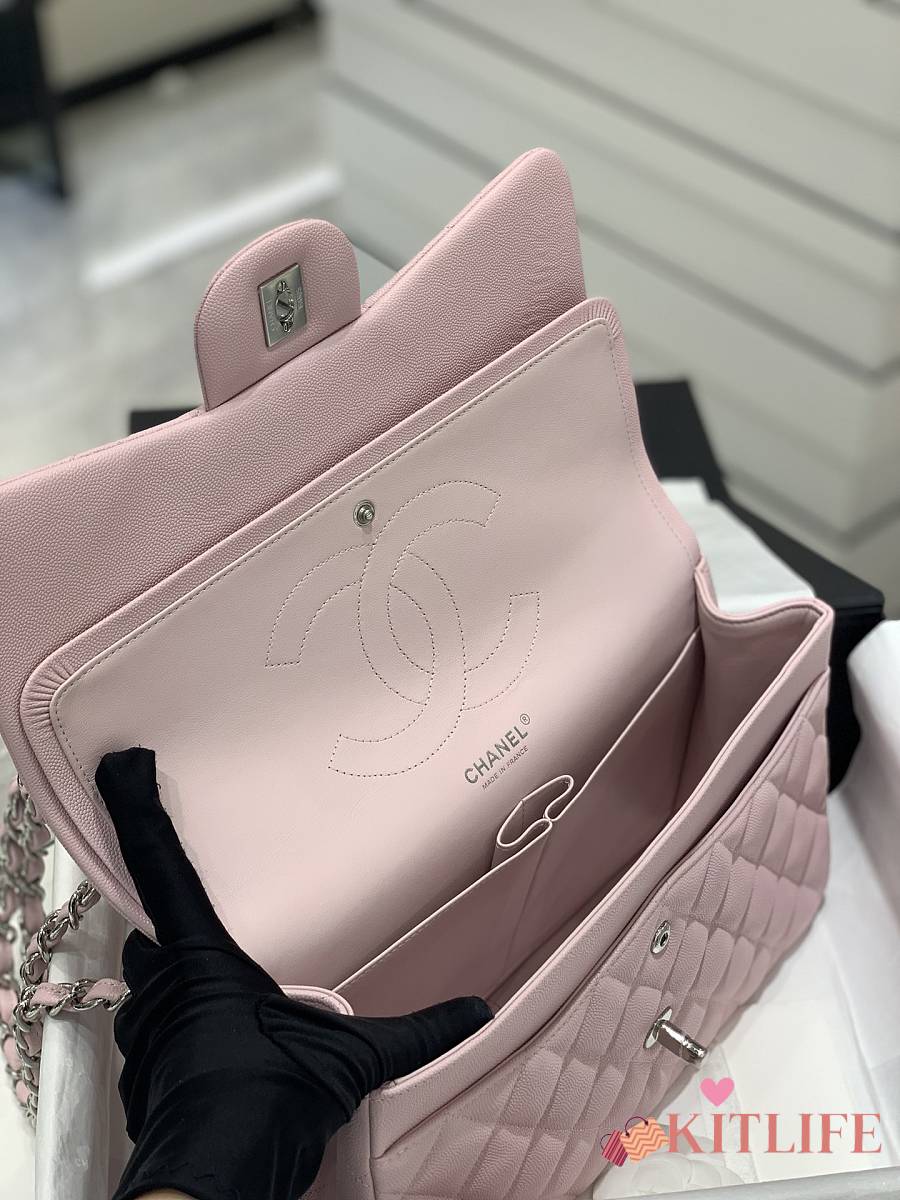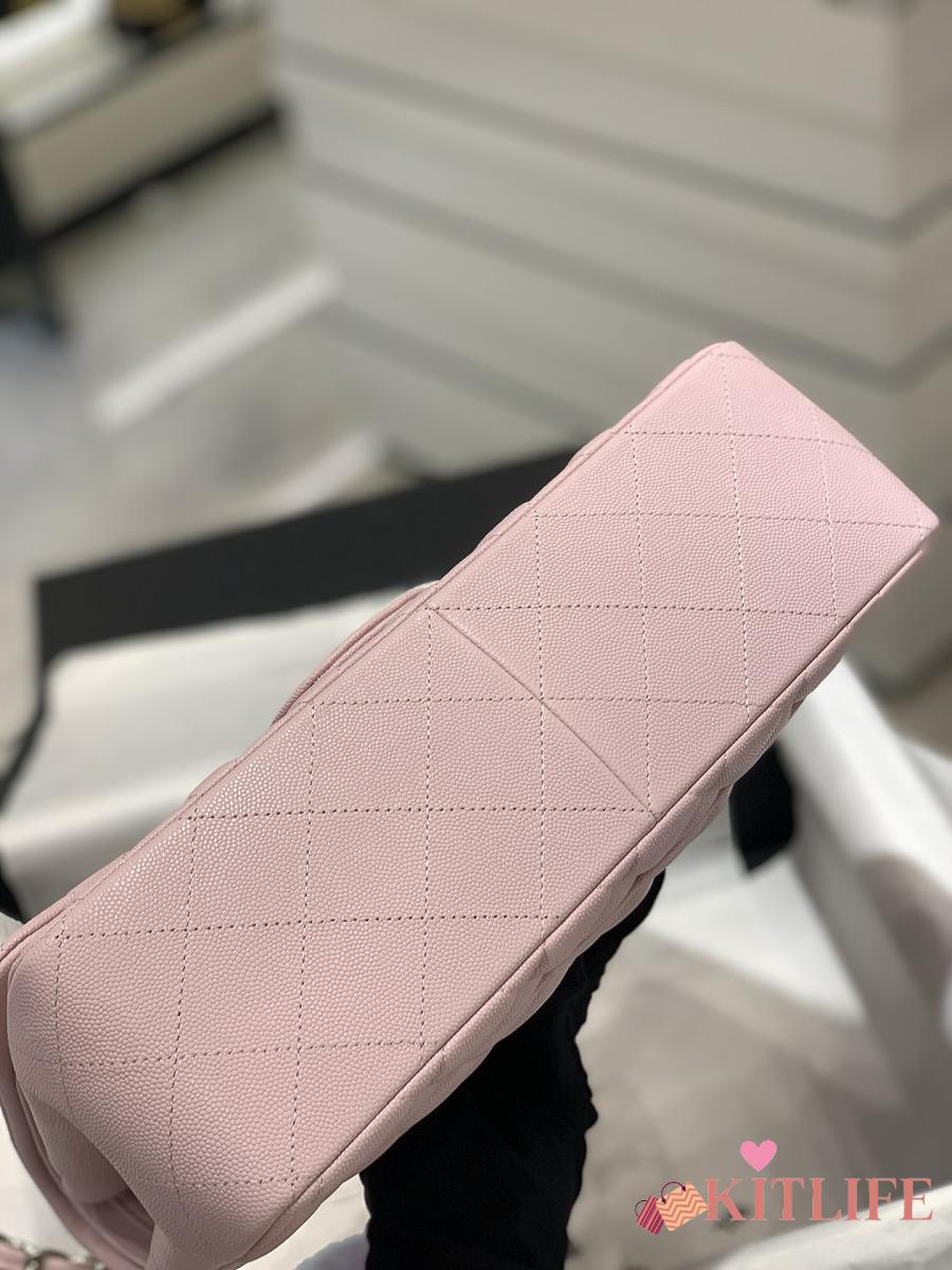 Kitlife Chanel Classic Flap Jumbo Pink Caviar Leather Bag Silver Hardware - 30cm
