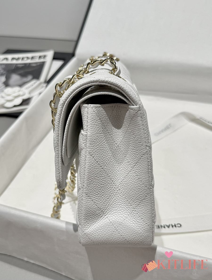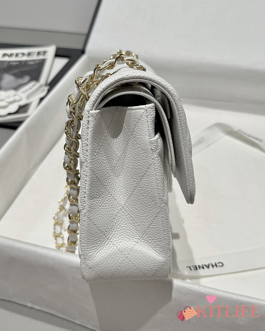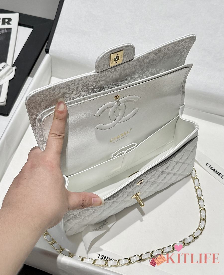 Kitlife Chanel Classic Flap Jumbo White Caviar Leather Bag Gold Hardware - 30cm