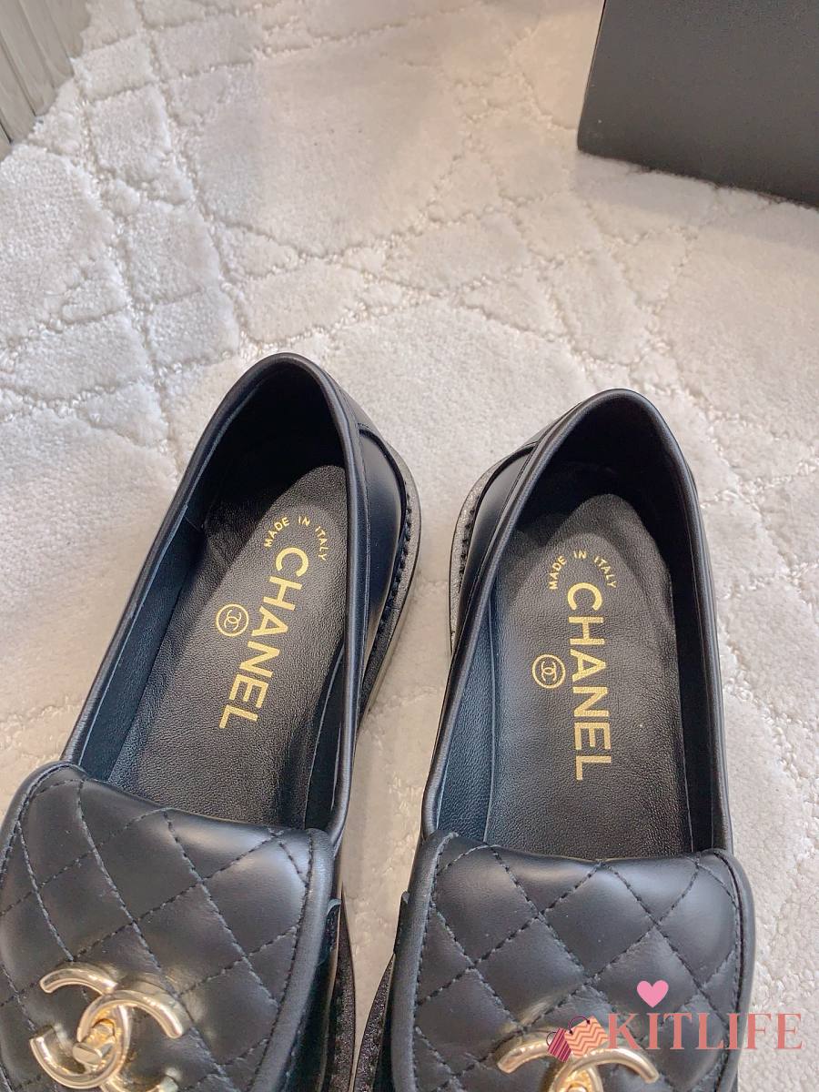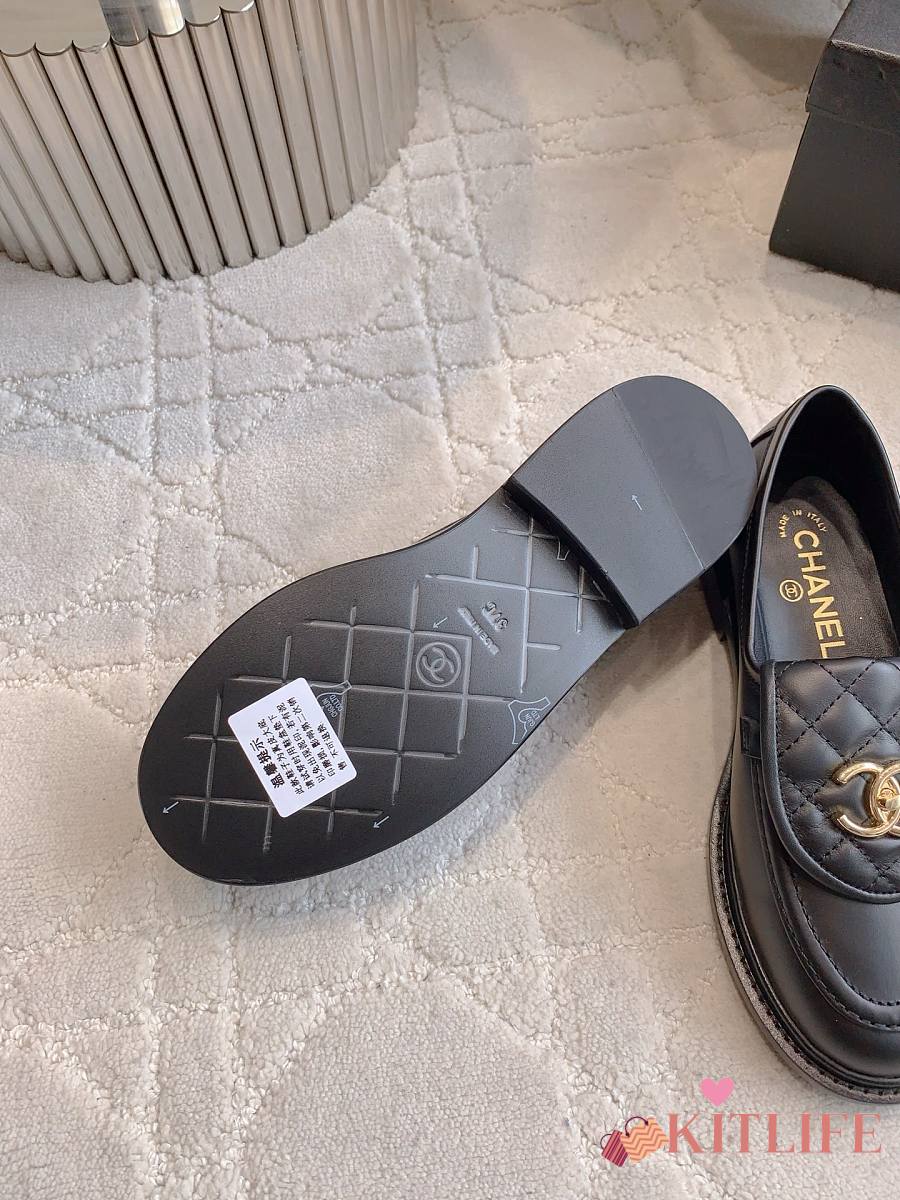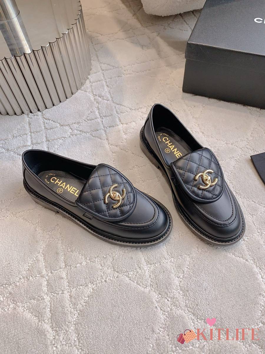 Kitlife Chanel Classic Flap Quilted Loafers Black Smooth Leather