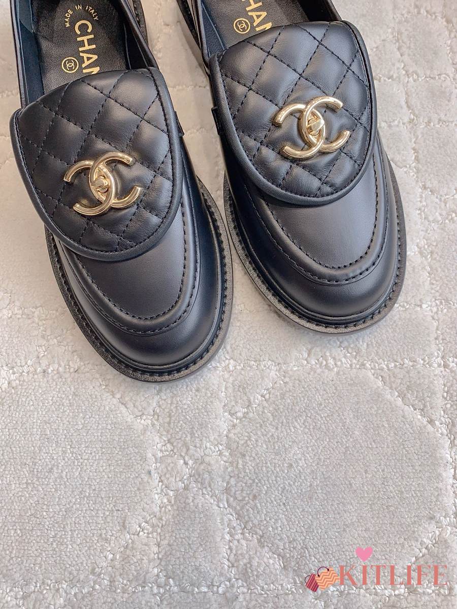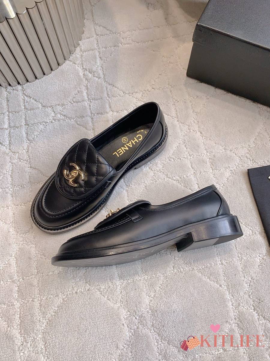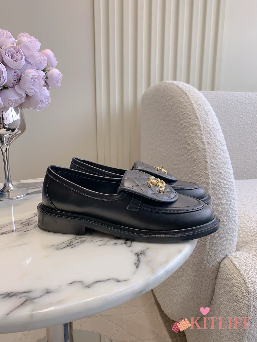 Kitlife Chanel Classic Flap Quilted Loafers Black Smooth Leather