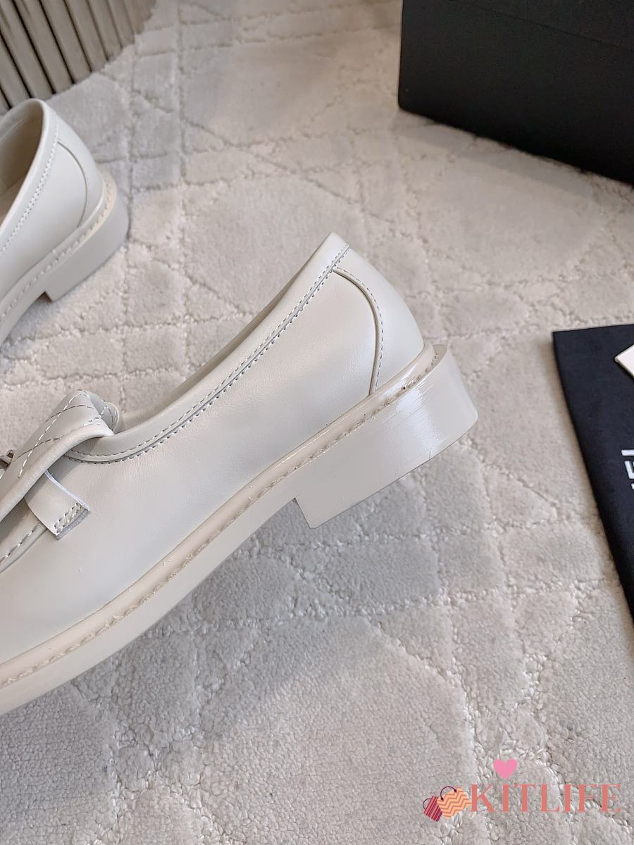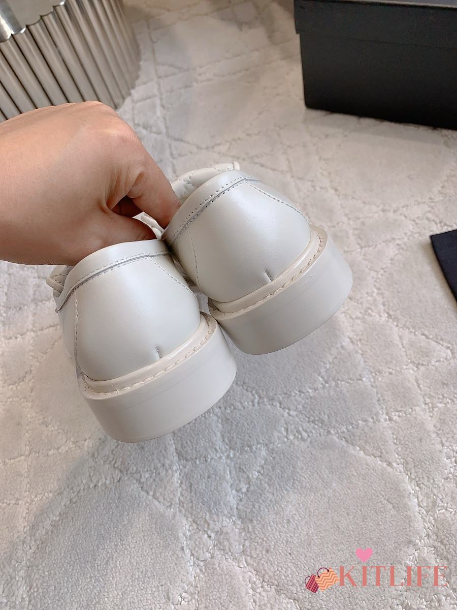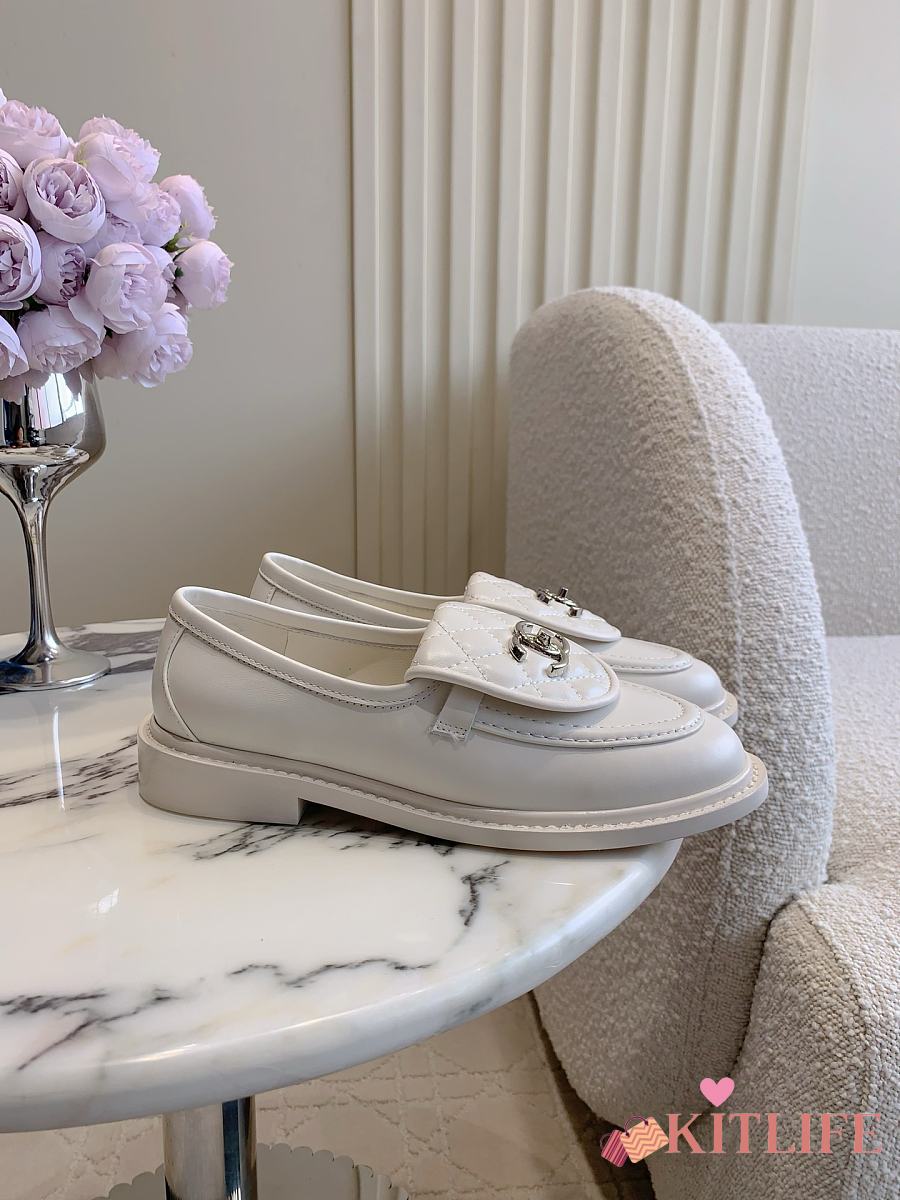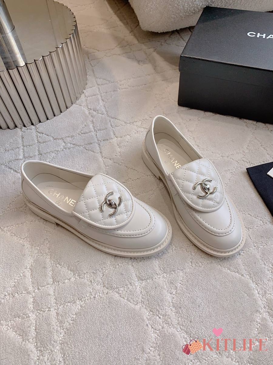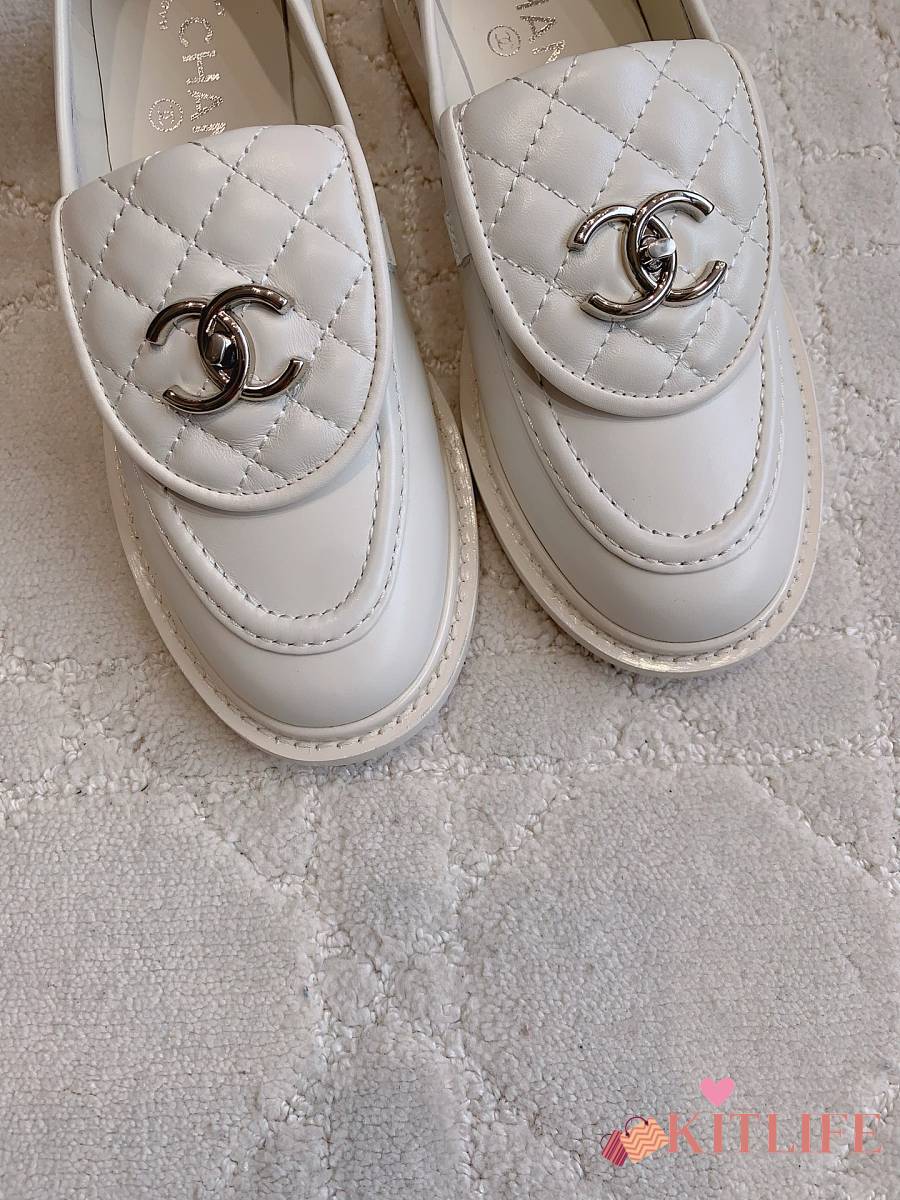 Kitlife Chanel Classic Flap Quilted Loafers White Smooth Leather