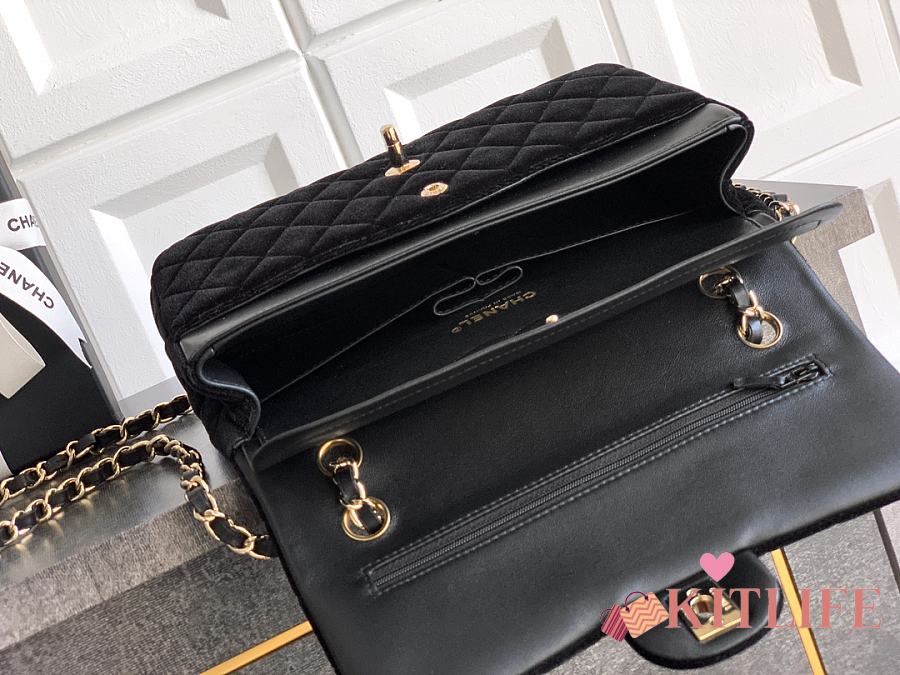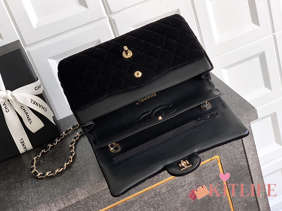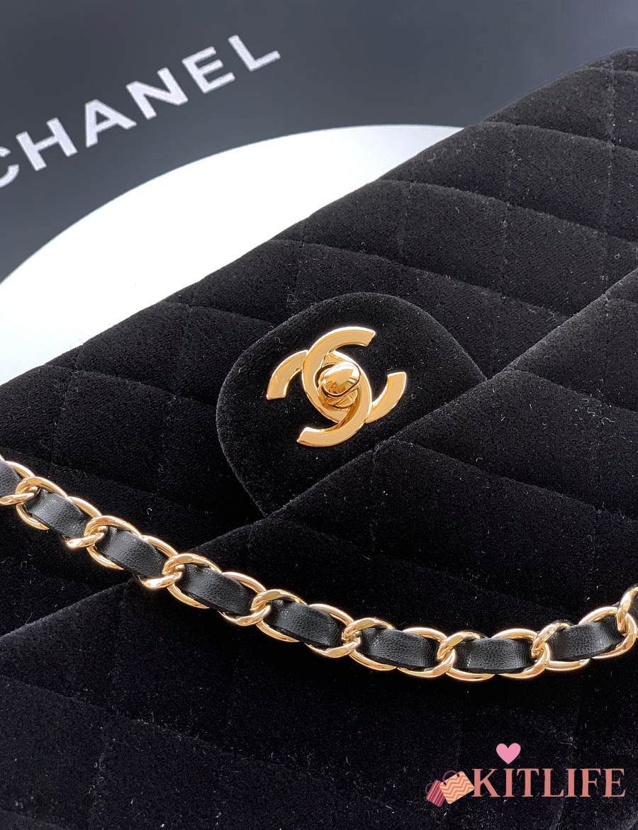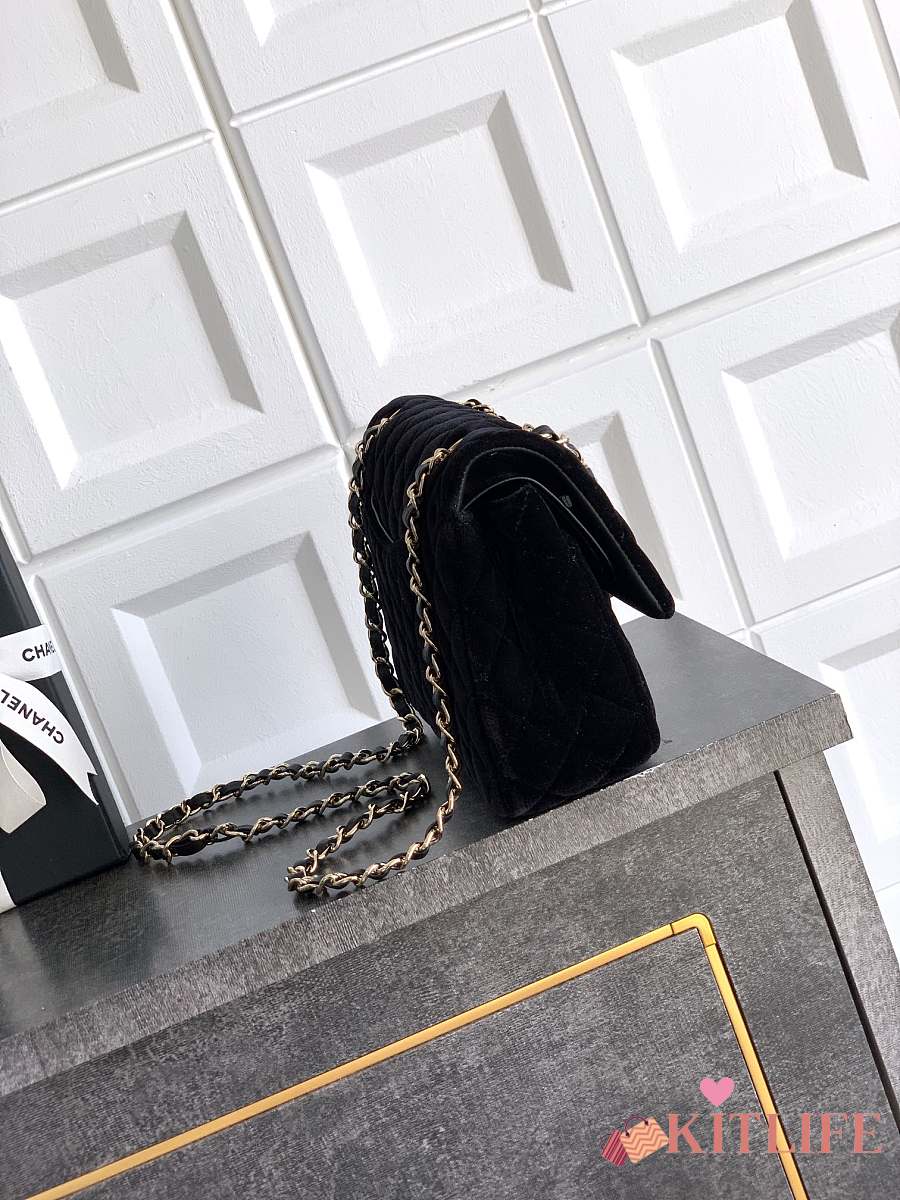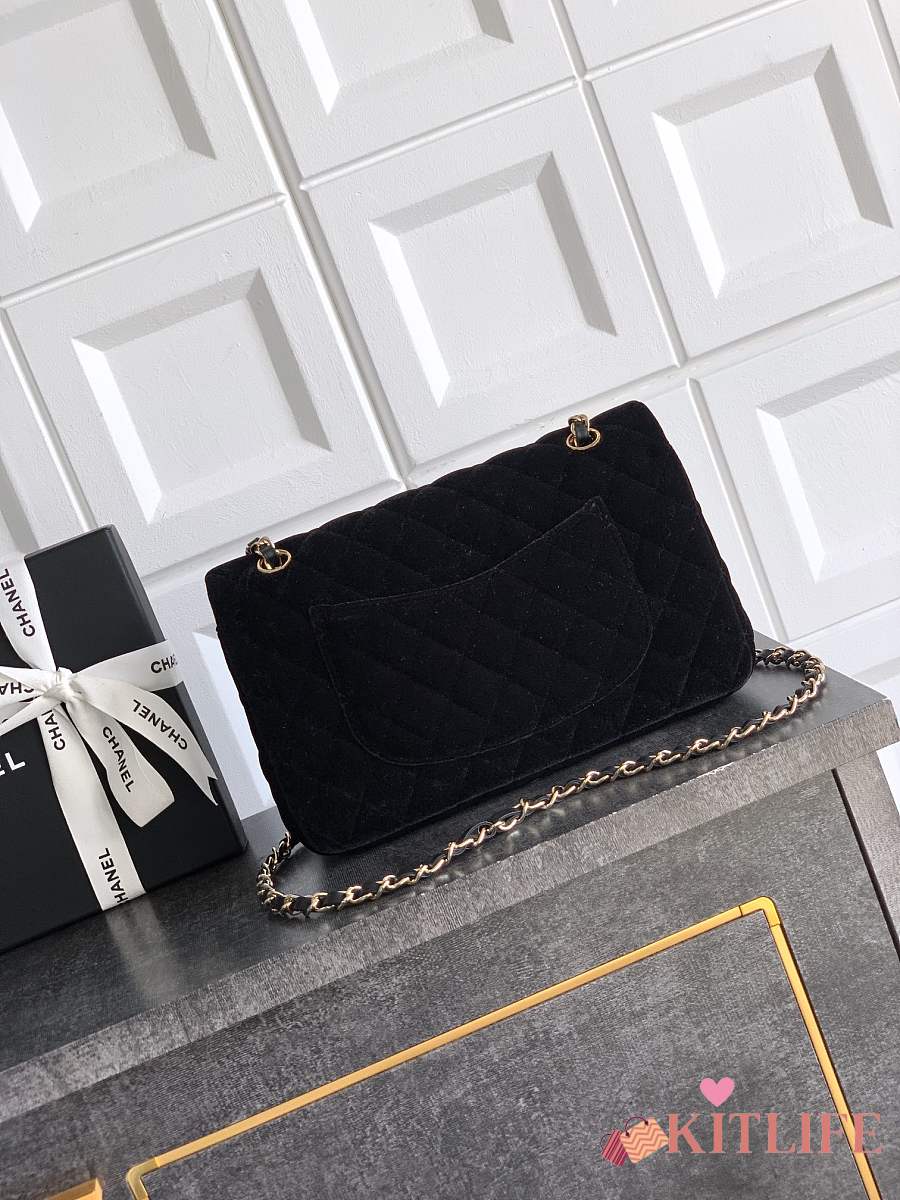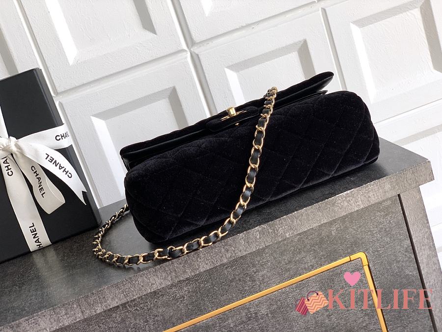 Kitlife Chanel Classic Velvet Bag in Black 25.5cm