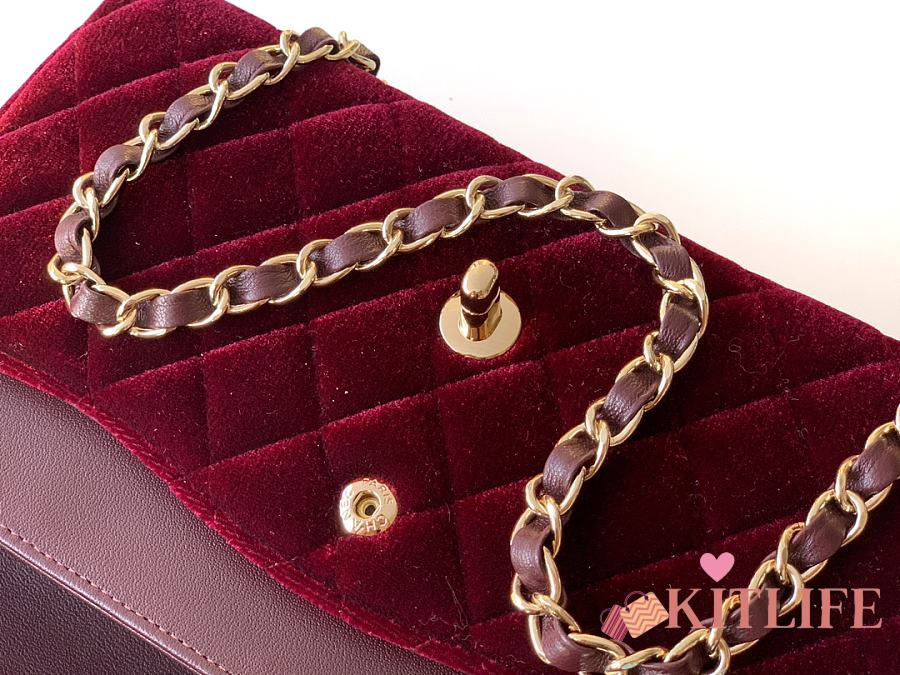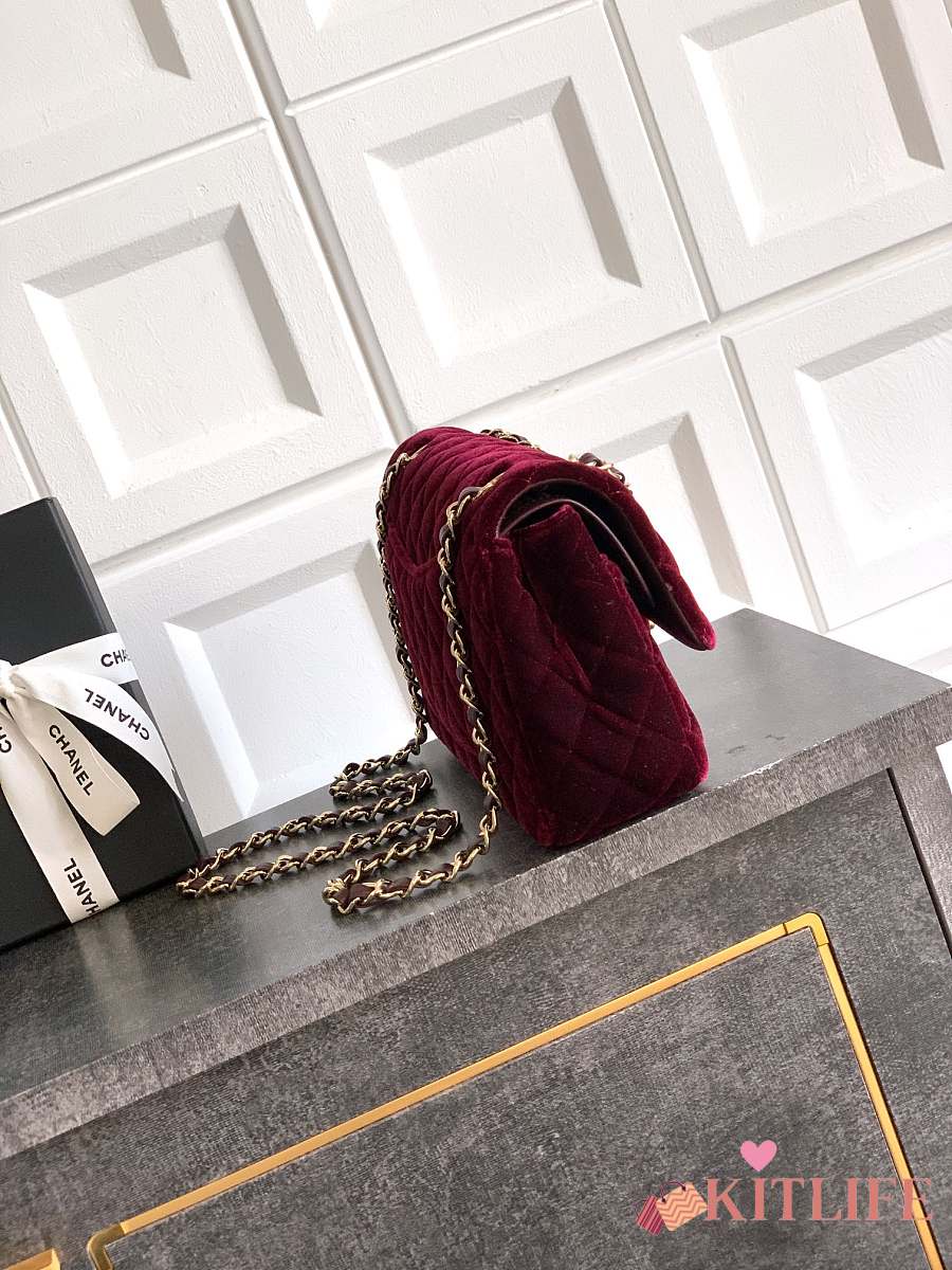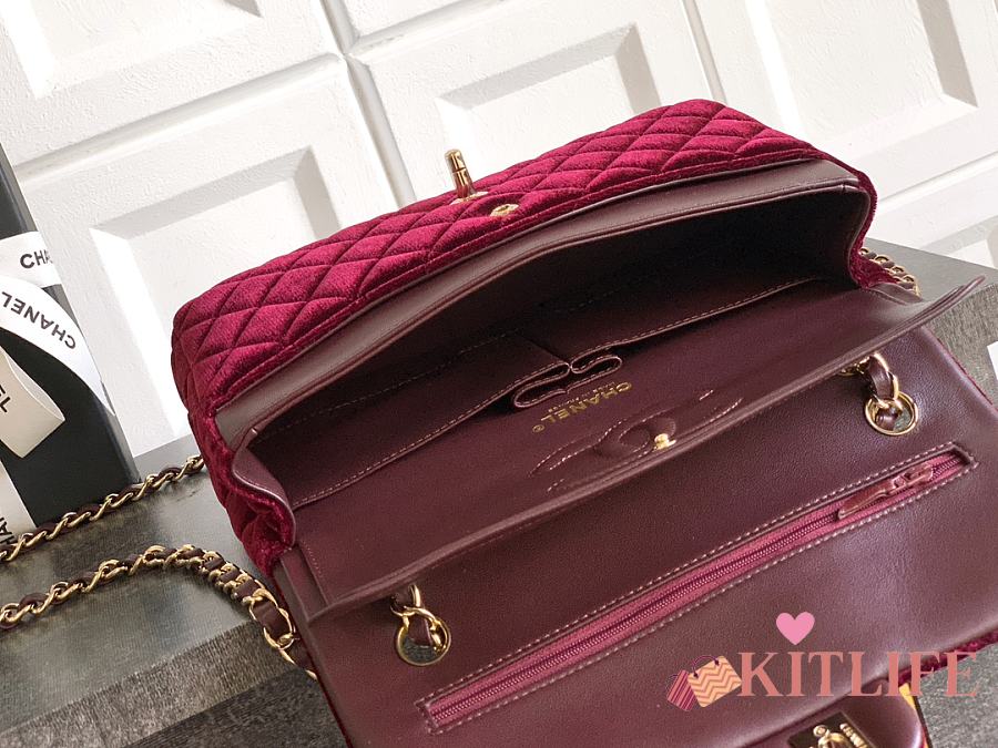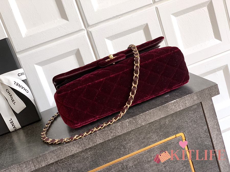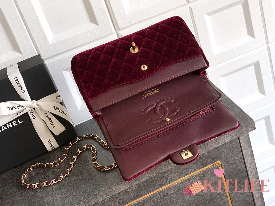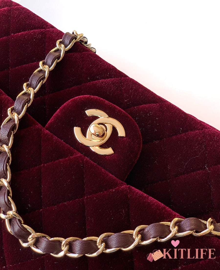 Kitlife Chanel Classic Velvet Bag in Burgundy 25.5cm