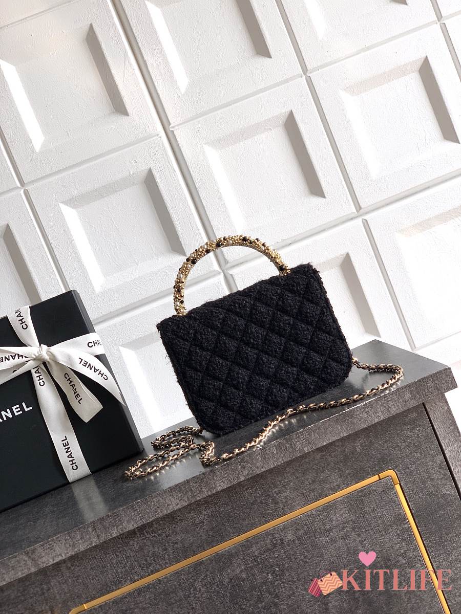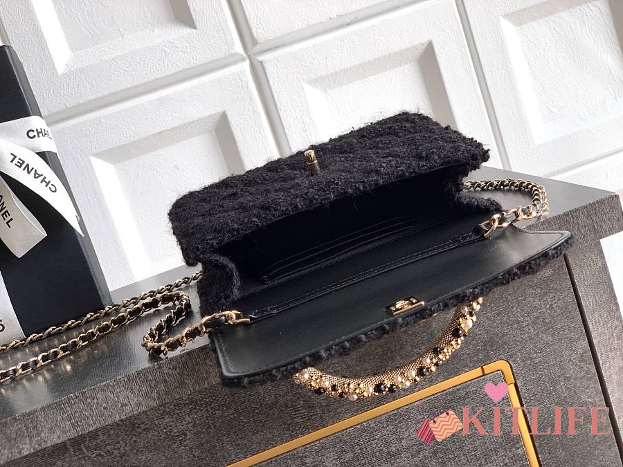 Kitlife Chanel Clutch With Chain Black Tweed, Imitation Pearls & Gold-Tone Metal AP4975 10.5x15x5.5cm