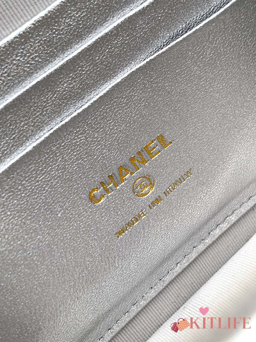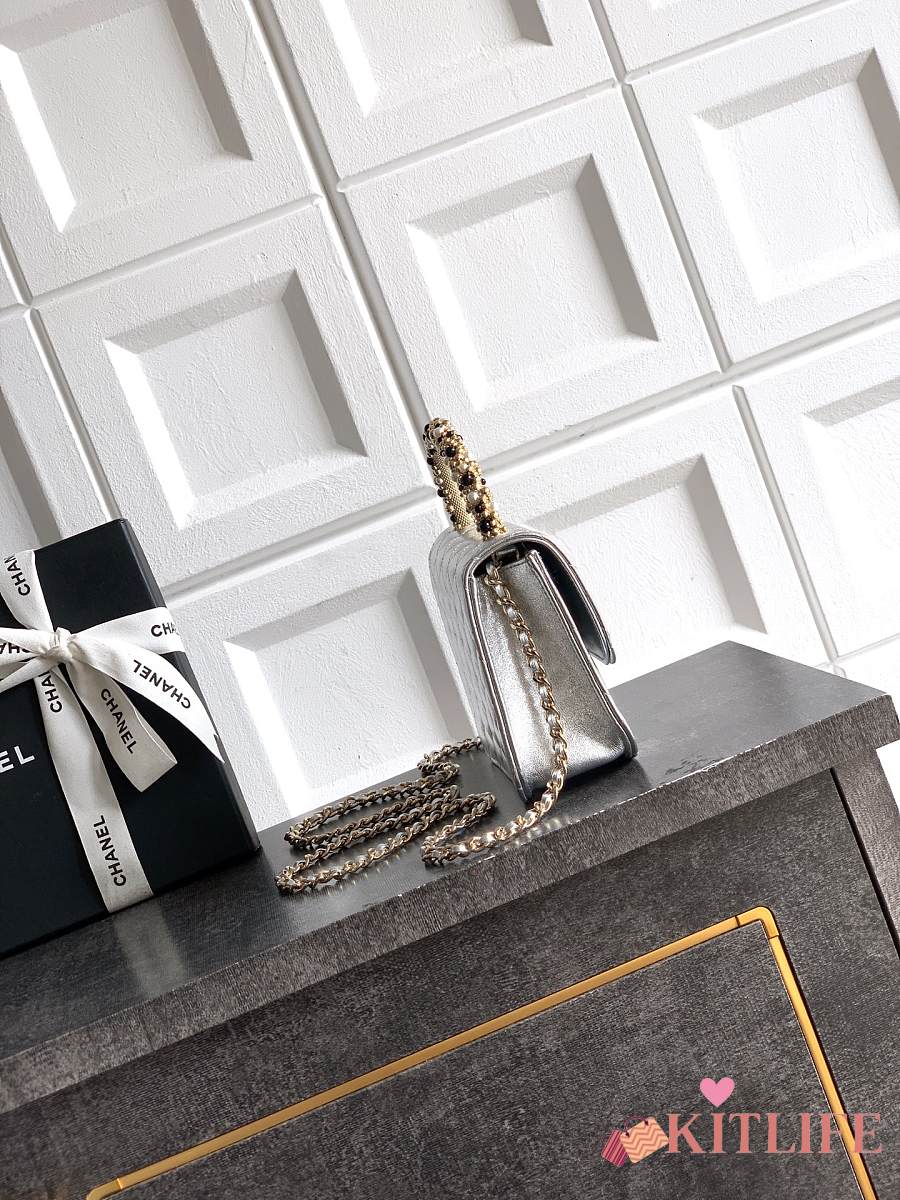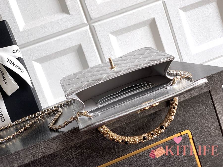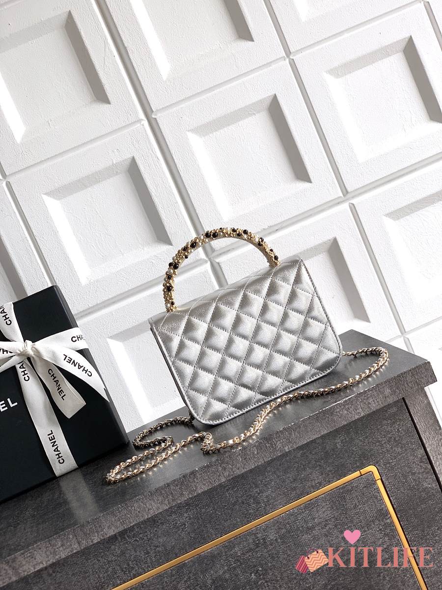 Kitlife Chanel Clutch With Chain Silver Calfskin, Imitation Pearls & Gold-Tone Metal AP4975 10.5x15x5.5cm