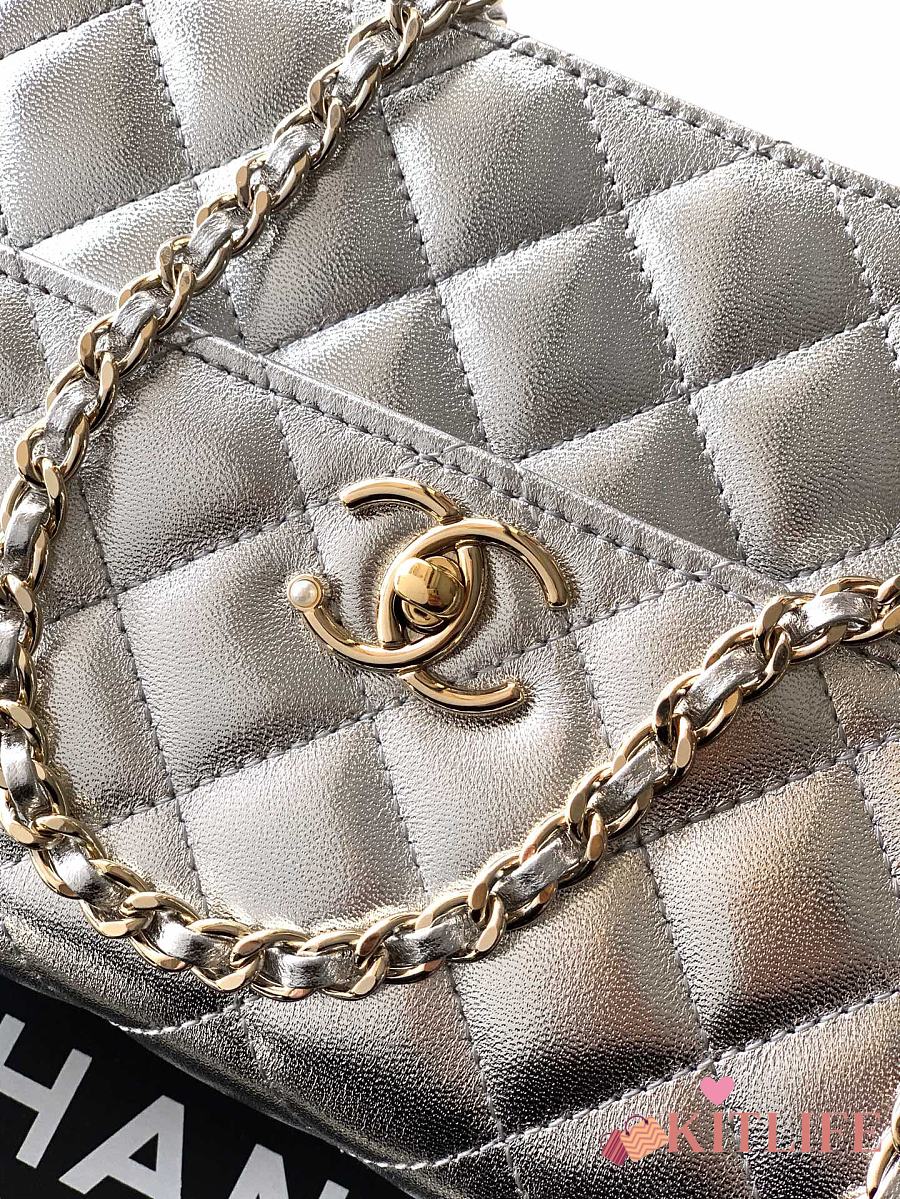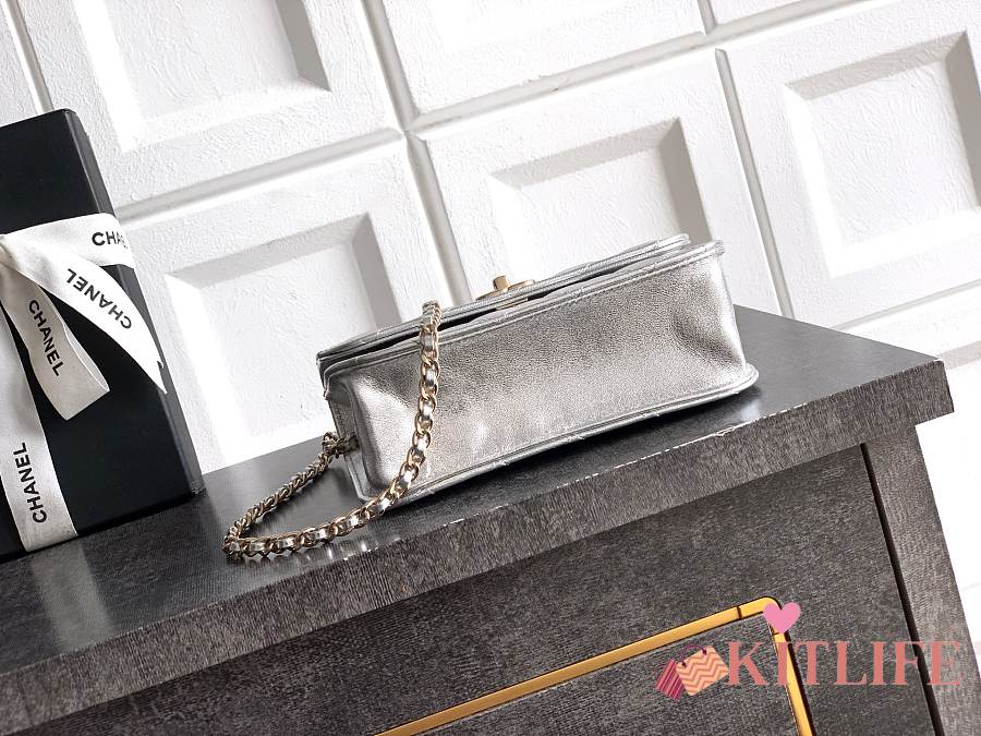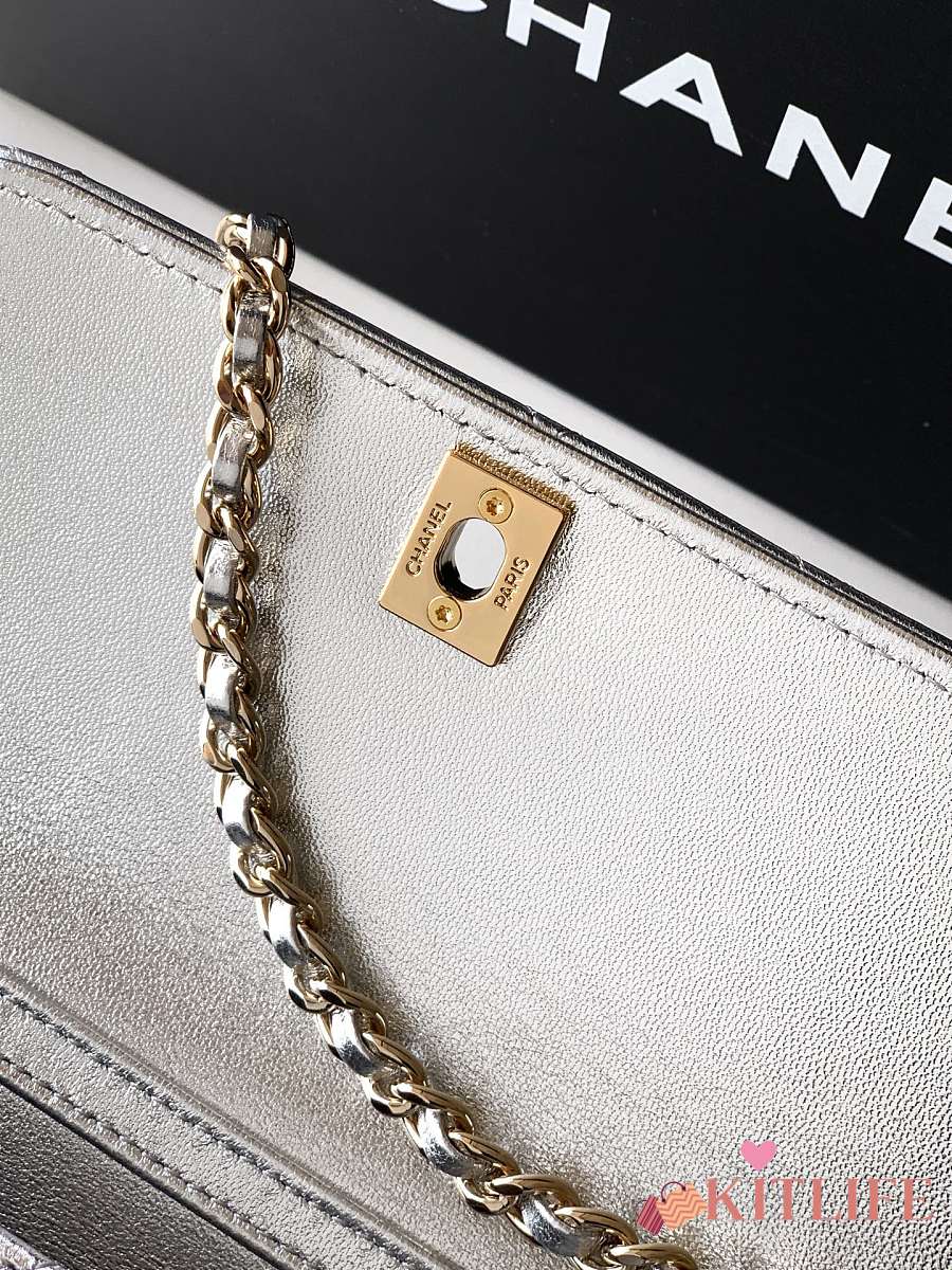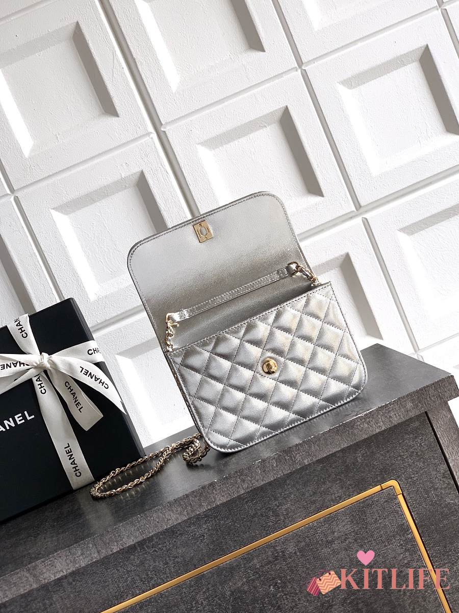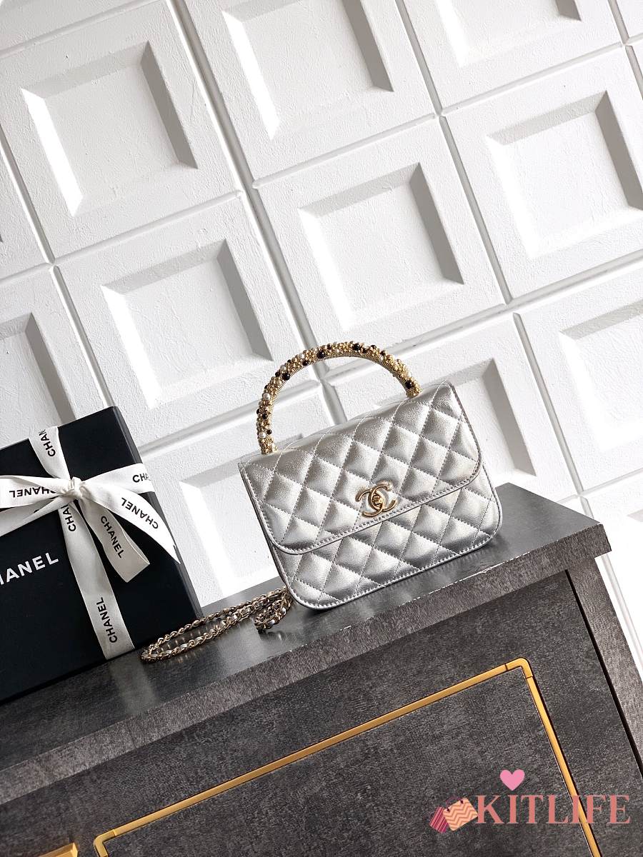 Kitlife Chanel Clutch With Chain Silver Calfskin, Imitation Pearls & Gold-Tone Metal AP4975 10.5x15x5.5cm