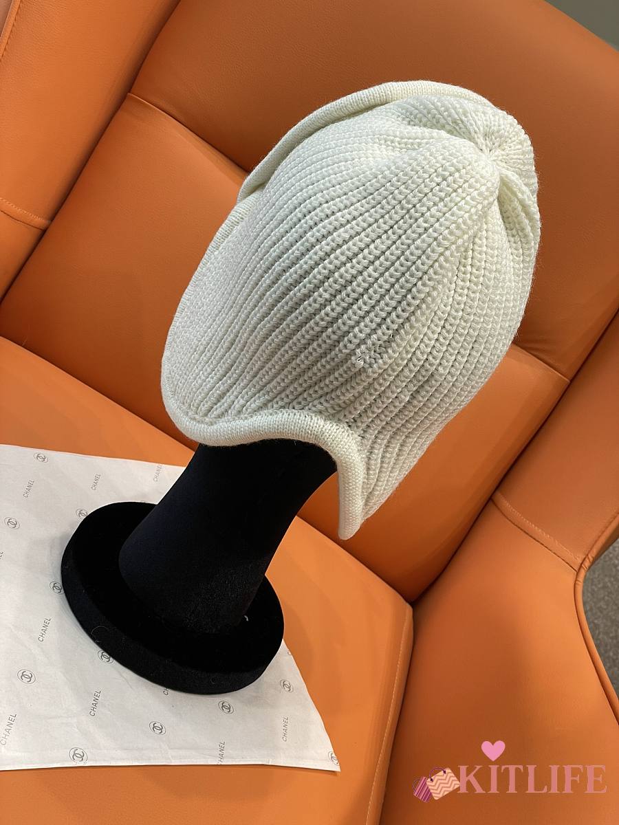 Kitlife Chanel Ear-flap Knit Hat White