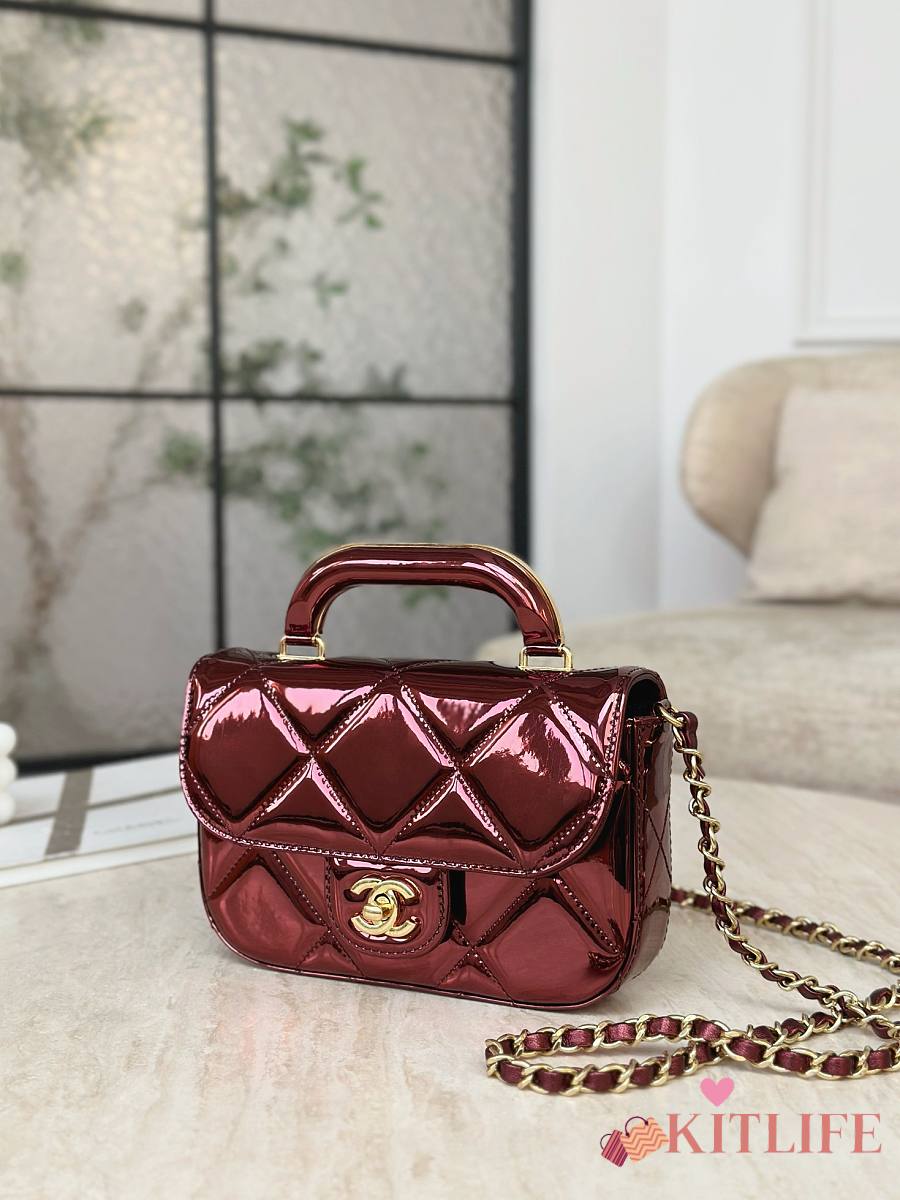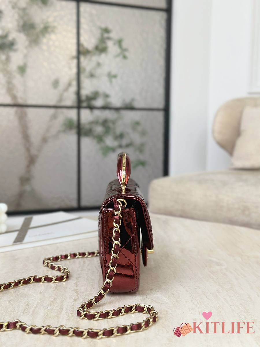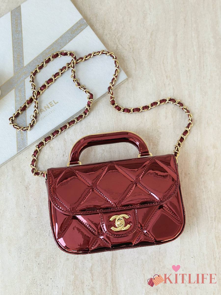 Kitlife Chanel Flap Bag With Handle Red AS4892 18.5x13x4.5cm