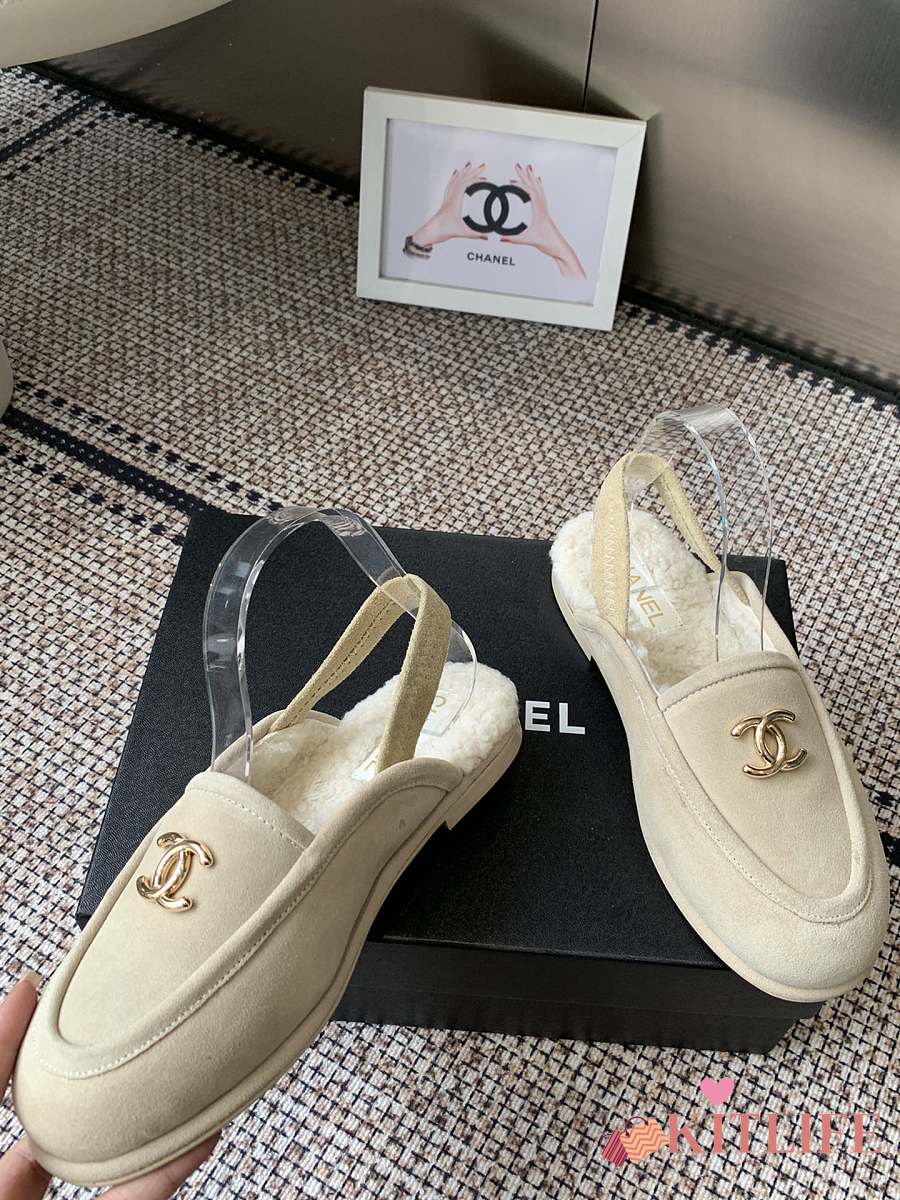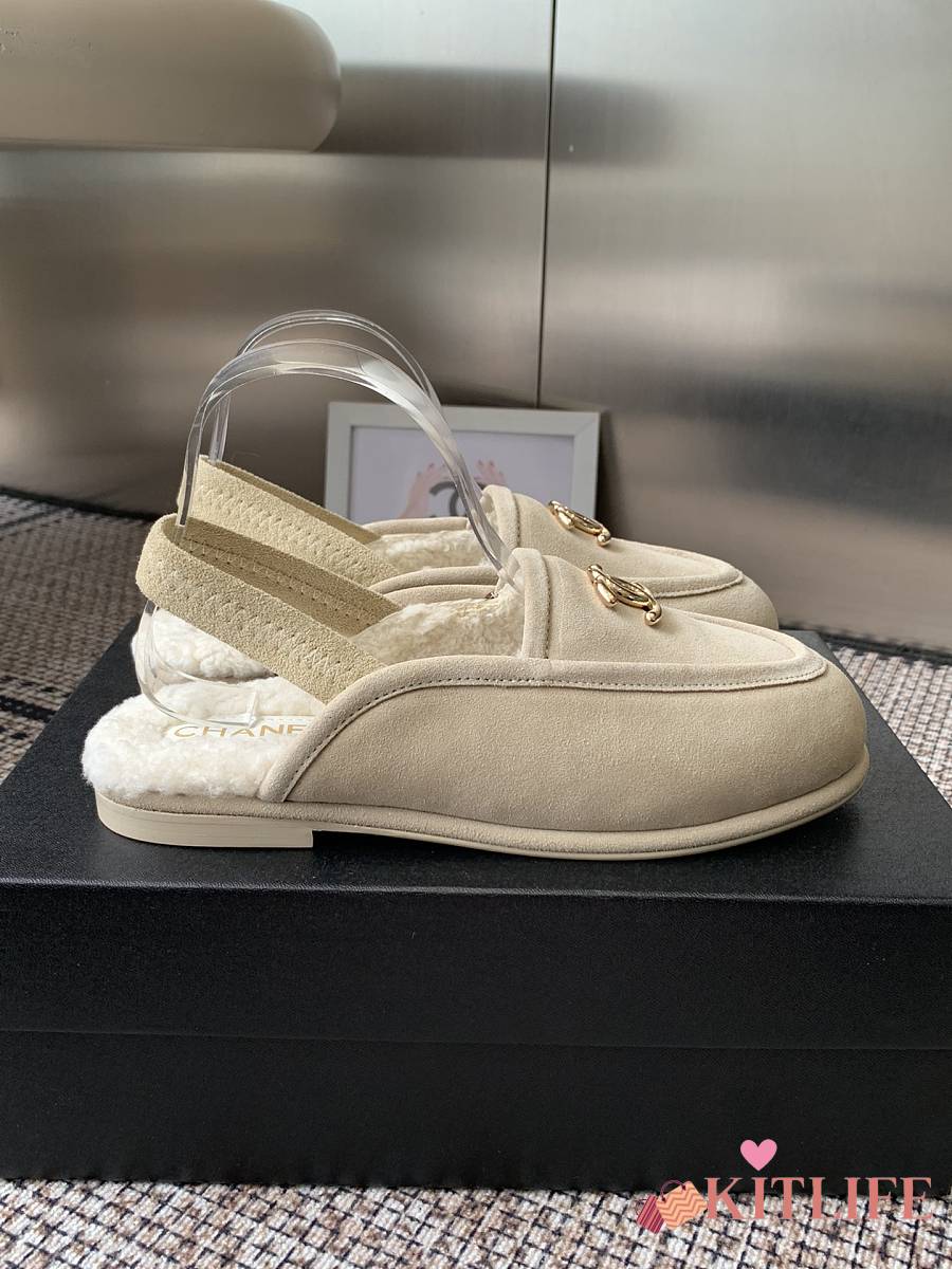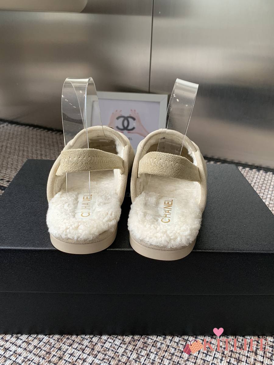 Kitlife Chanel Fur Sandals Cream Suede